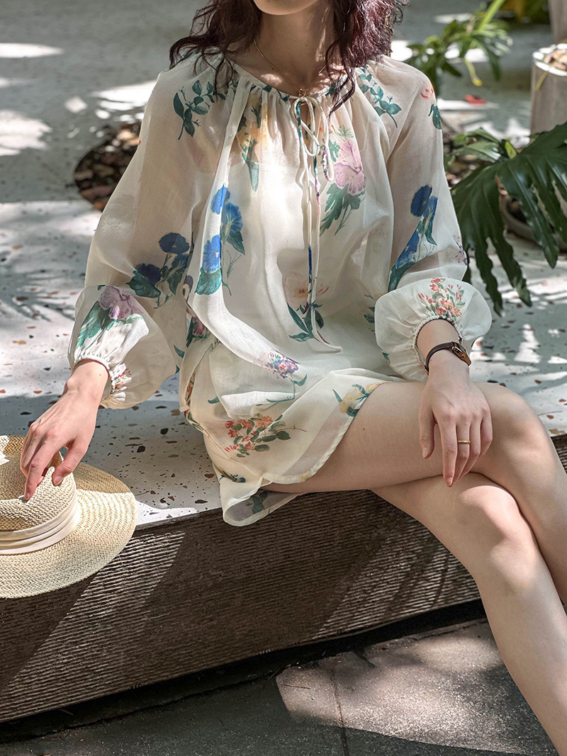 【商品名】2点セット!【ボトムス】韓国風 ゆったりプリントUVカットシャツ+ハイウエストショートパンツ 上下セットアップ【SHシリーズ】【JZシリーズ】