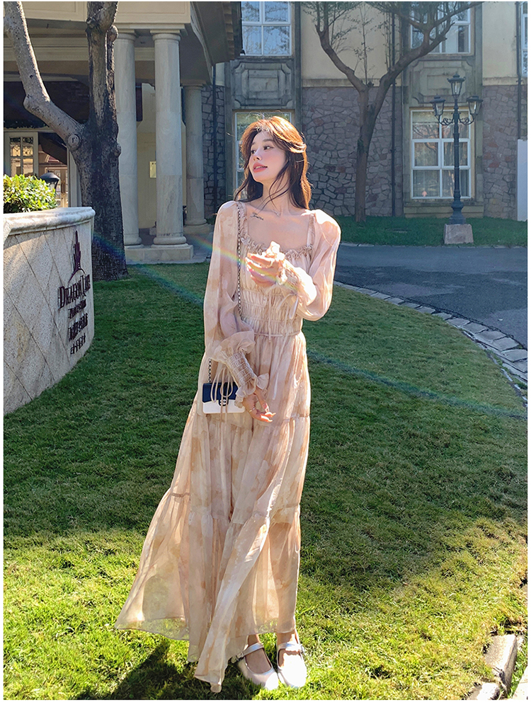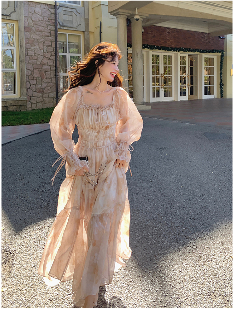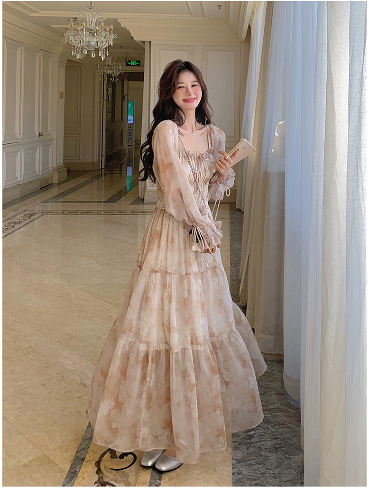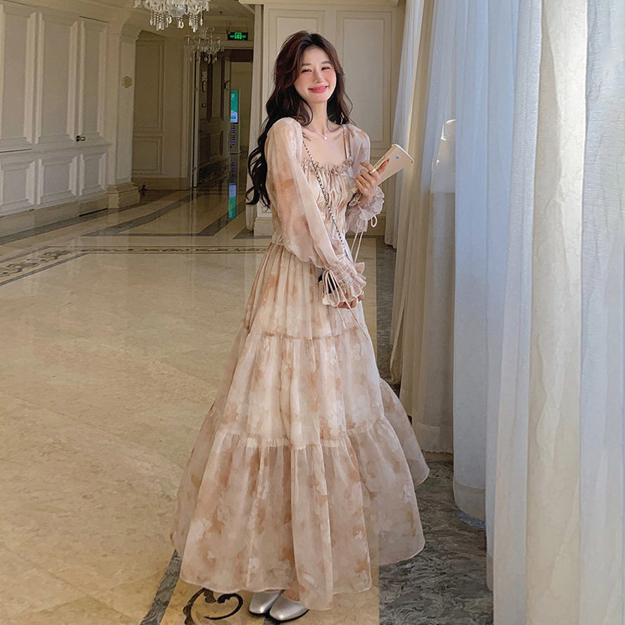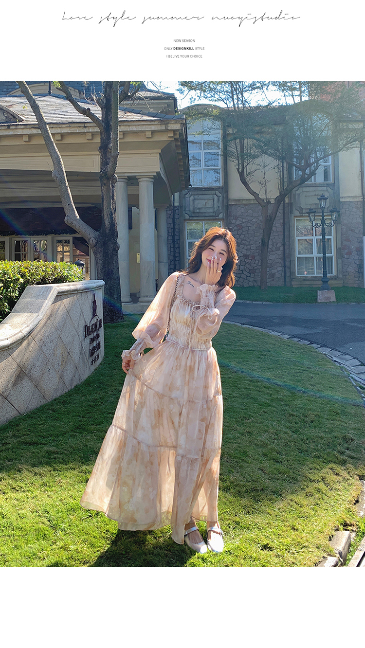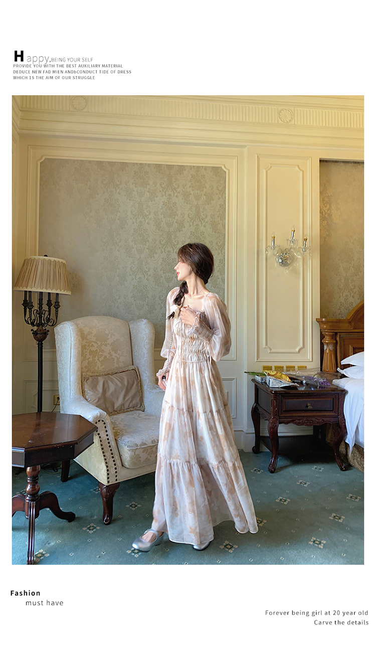 【商品名】【ワンピース】ティータイム フレンチ ロマンチック 小花柄 ワンピース 春夏 柔らかい雰囲気 絶美 長袖 ドレス【SHシリーズ】