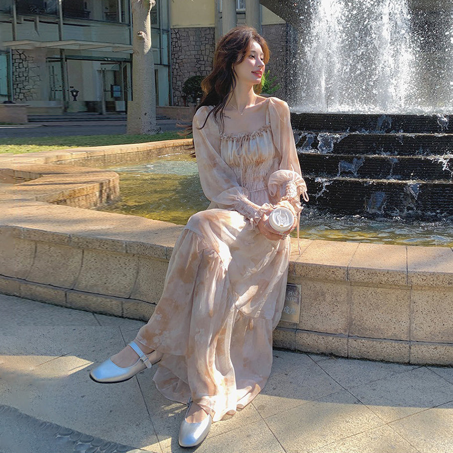 【ワンピース】ティータイム フレンチ ロマンチック 小花柄 ワンピース 春夏 柔らかい雰囲気 絶美 長袖 ドレス【SHシリーズ】