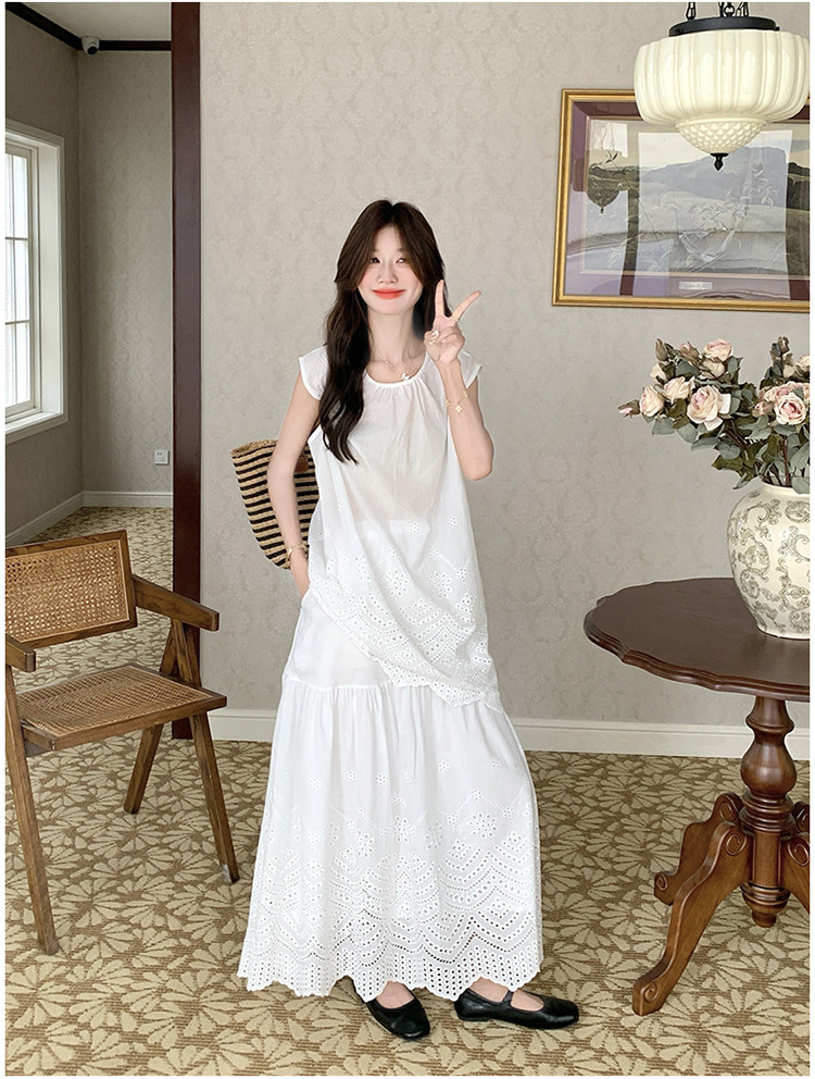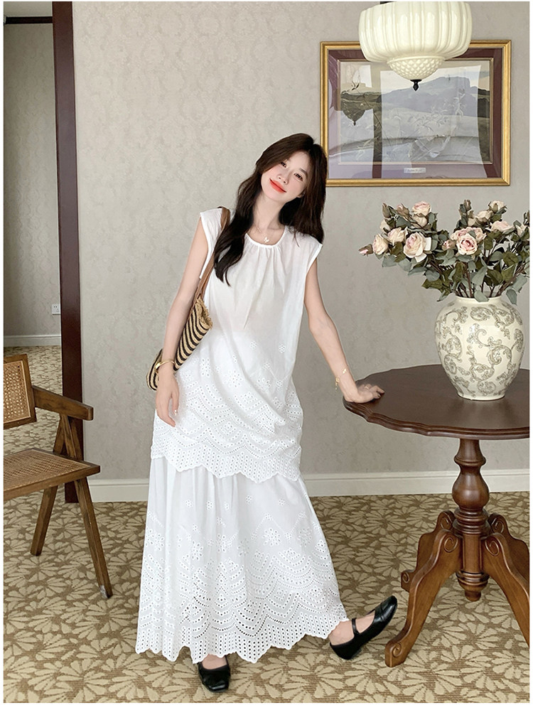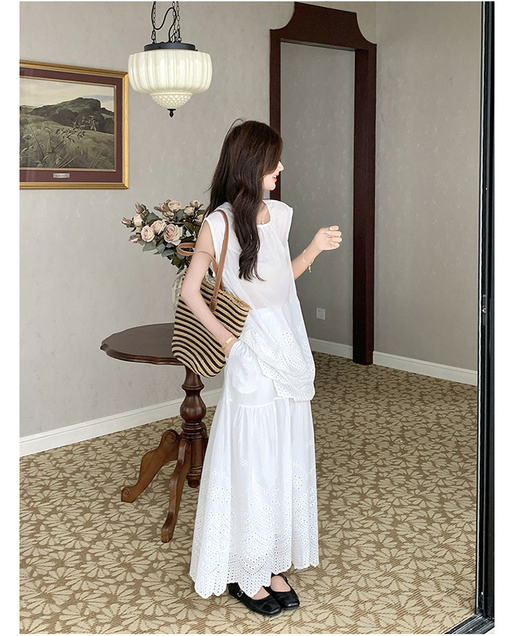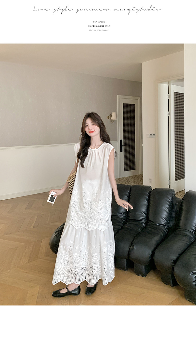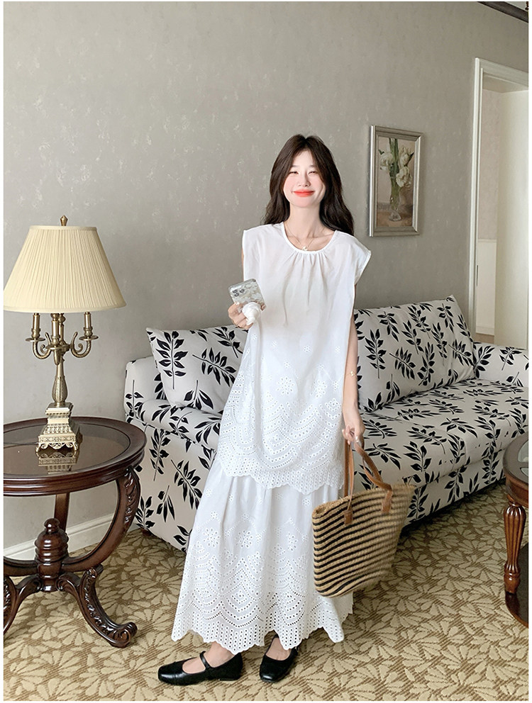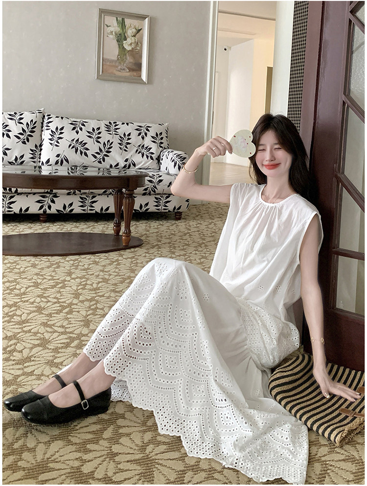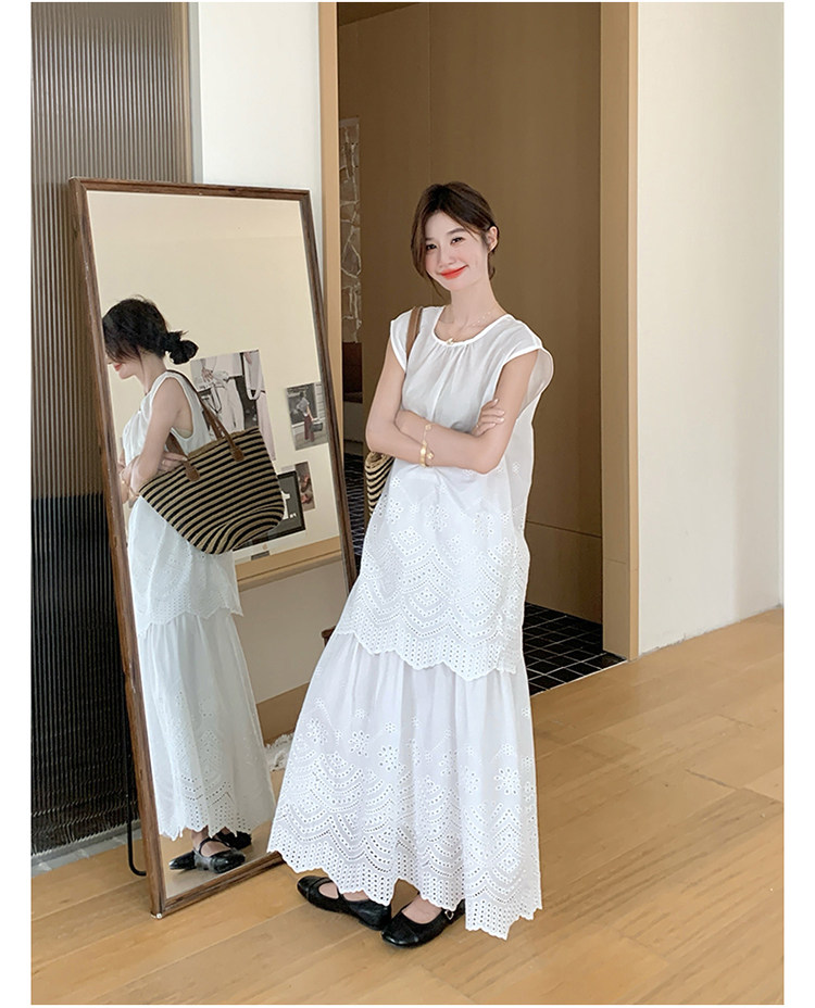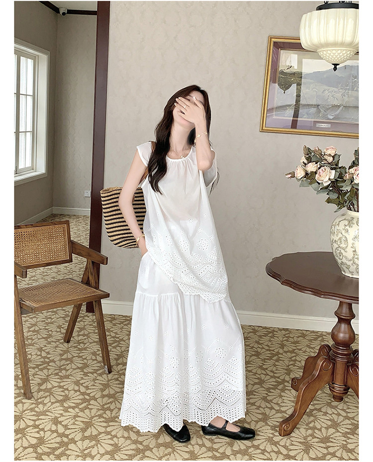 🛍️ 予約殺到!【ワンピース】 【7~15日内発送】透かし彫り カジュアル フィッシュテイルスカート 半袖 ワンピース【JZシリーズ】