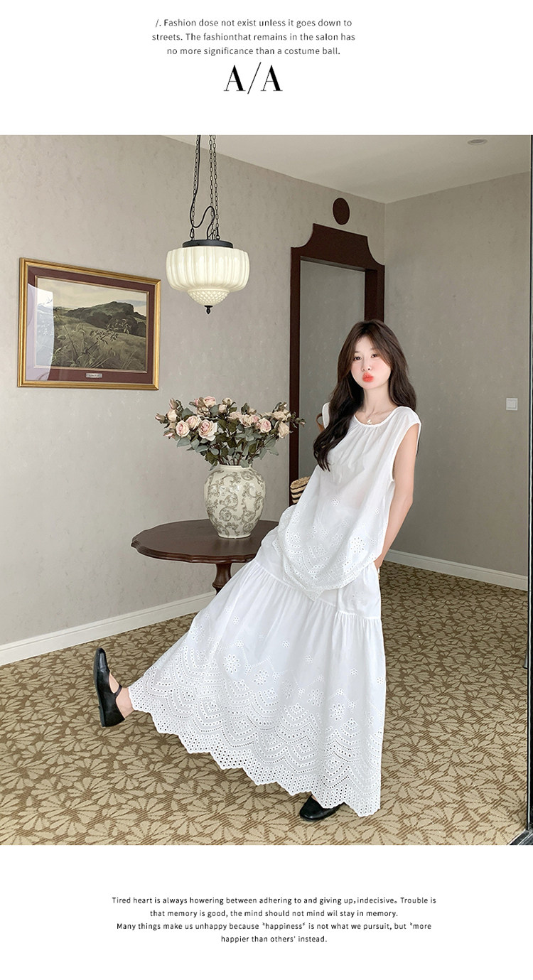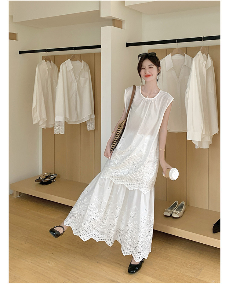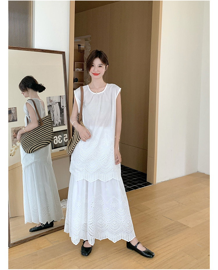 【商品名】2点セット!【ボトムス】バックオープン レース風デザイン 夏 ノースリーブ トップス + スカート 上下セット【JZシリーズ】