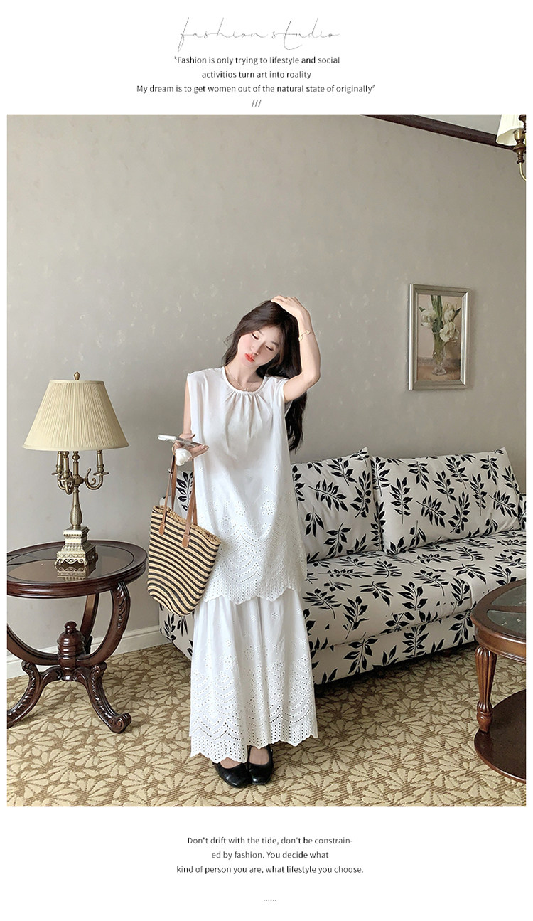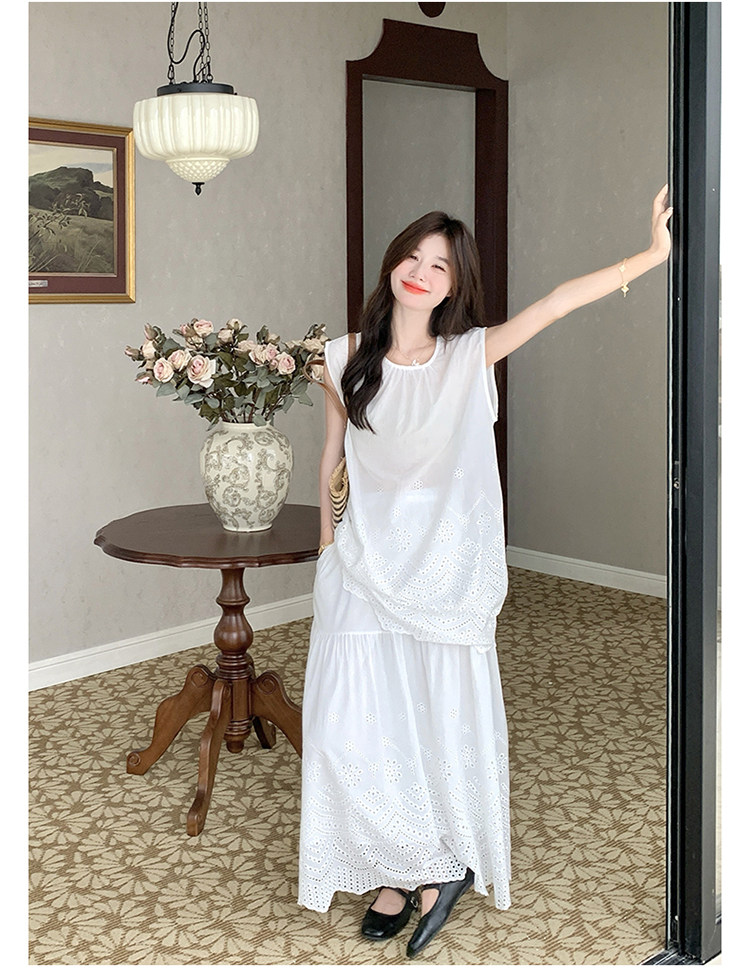 2点セット!【セットアップ】バックオープン レース風デザイン 夏 ノースリーブ トップス + スカート 上下セット【JZシリーズ】
