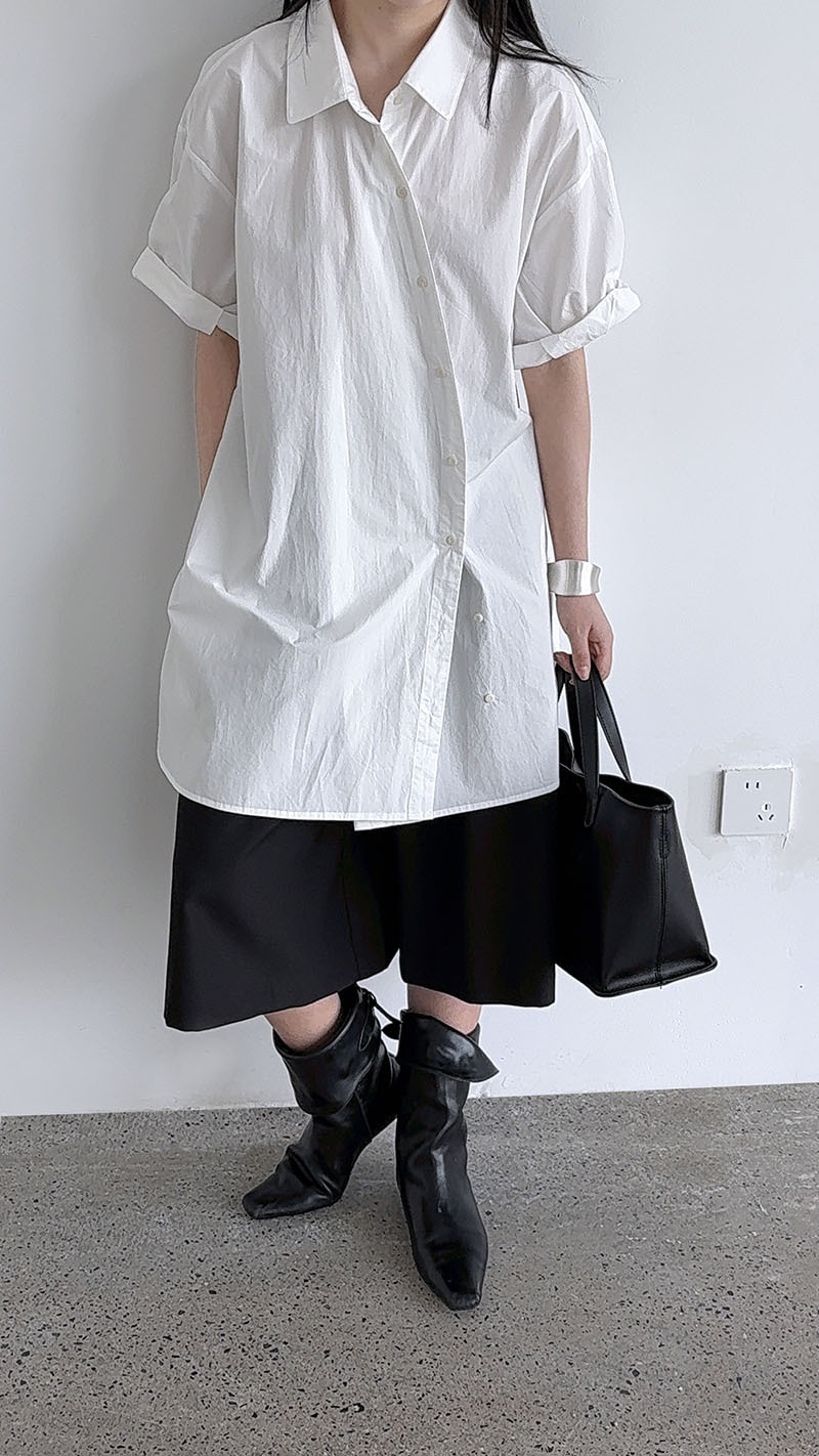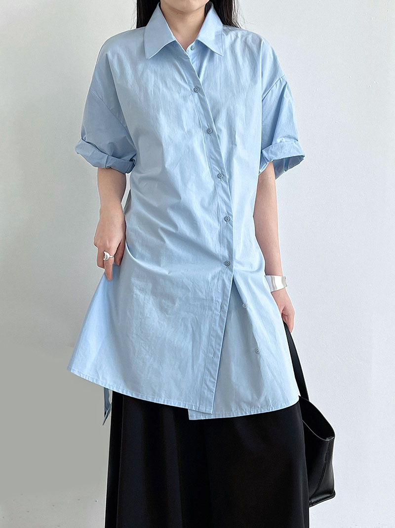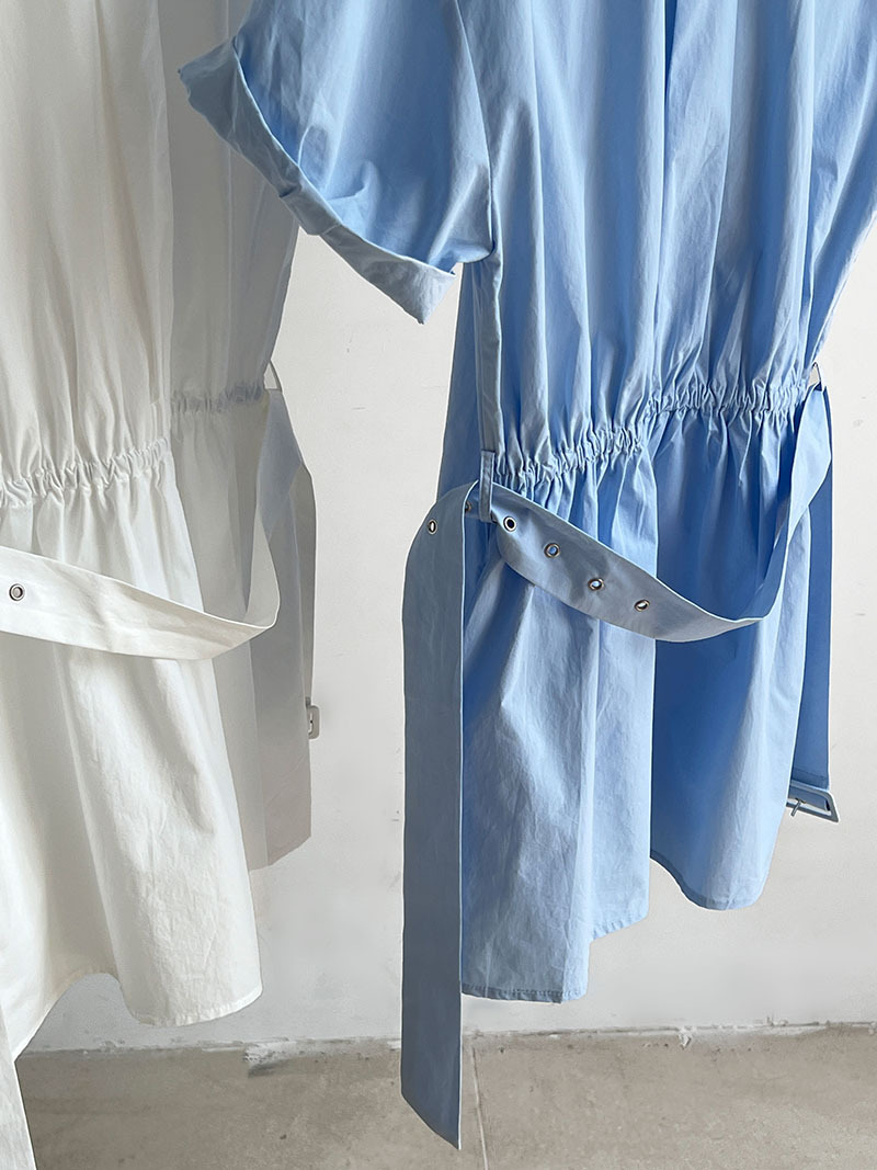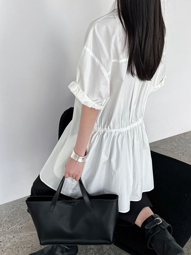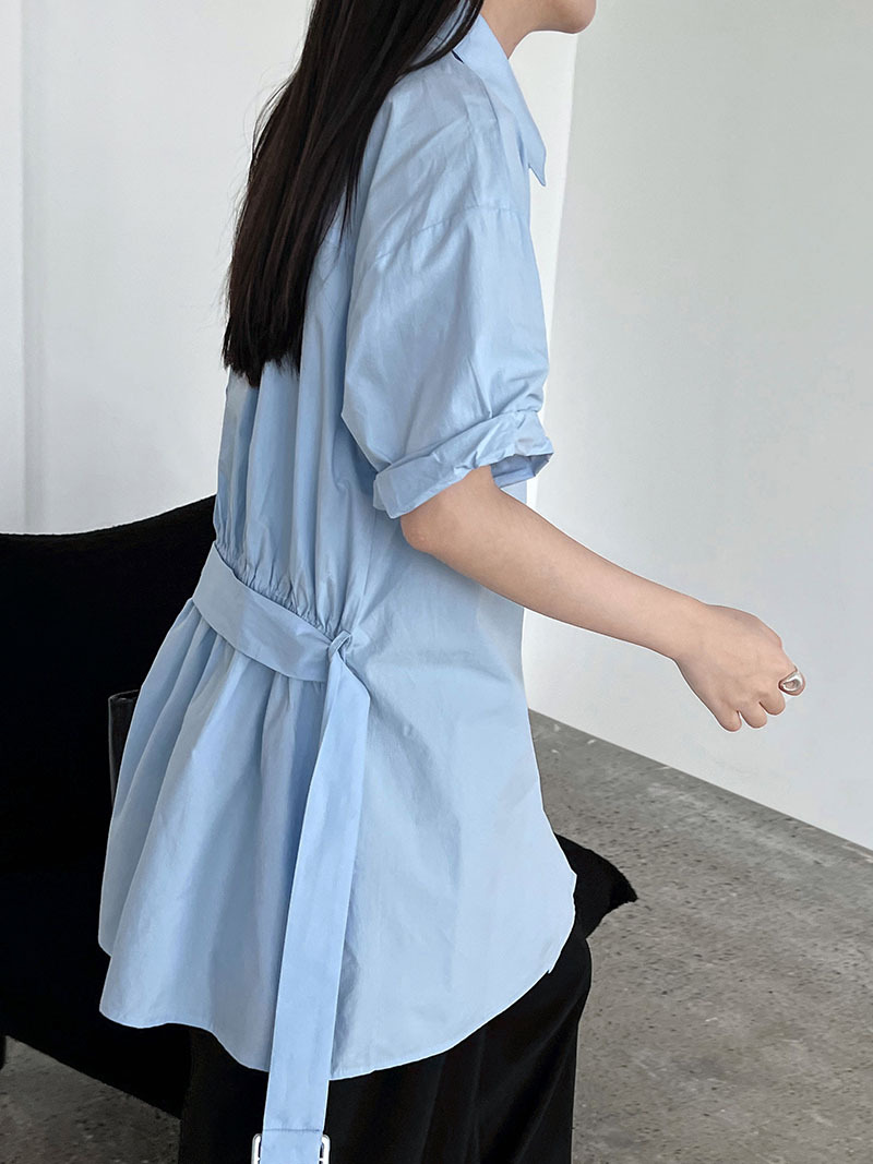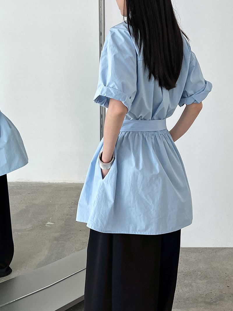 【商品名】【トップス】韓国風 デザイン性 ウエストベルト付き シャツ レディース 夏新作 ウエストマーク 半袖 トップス【SNシリーズ】