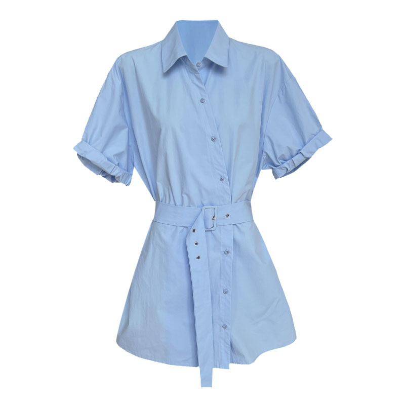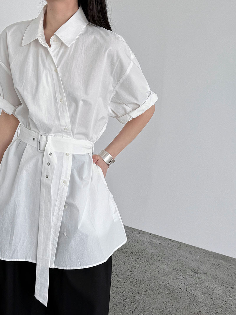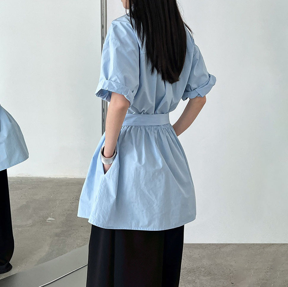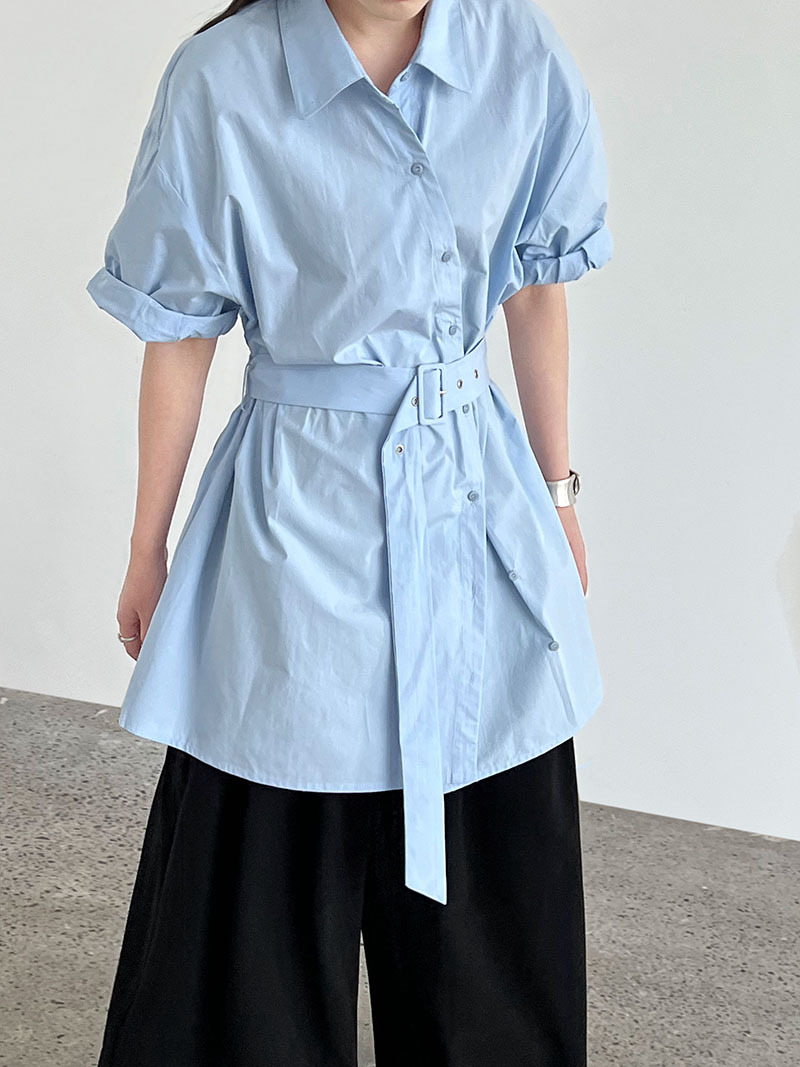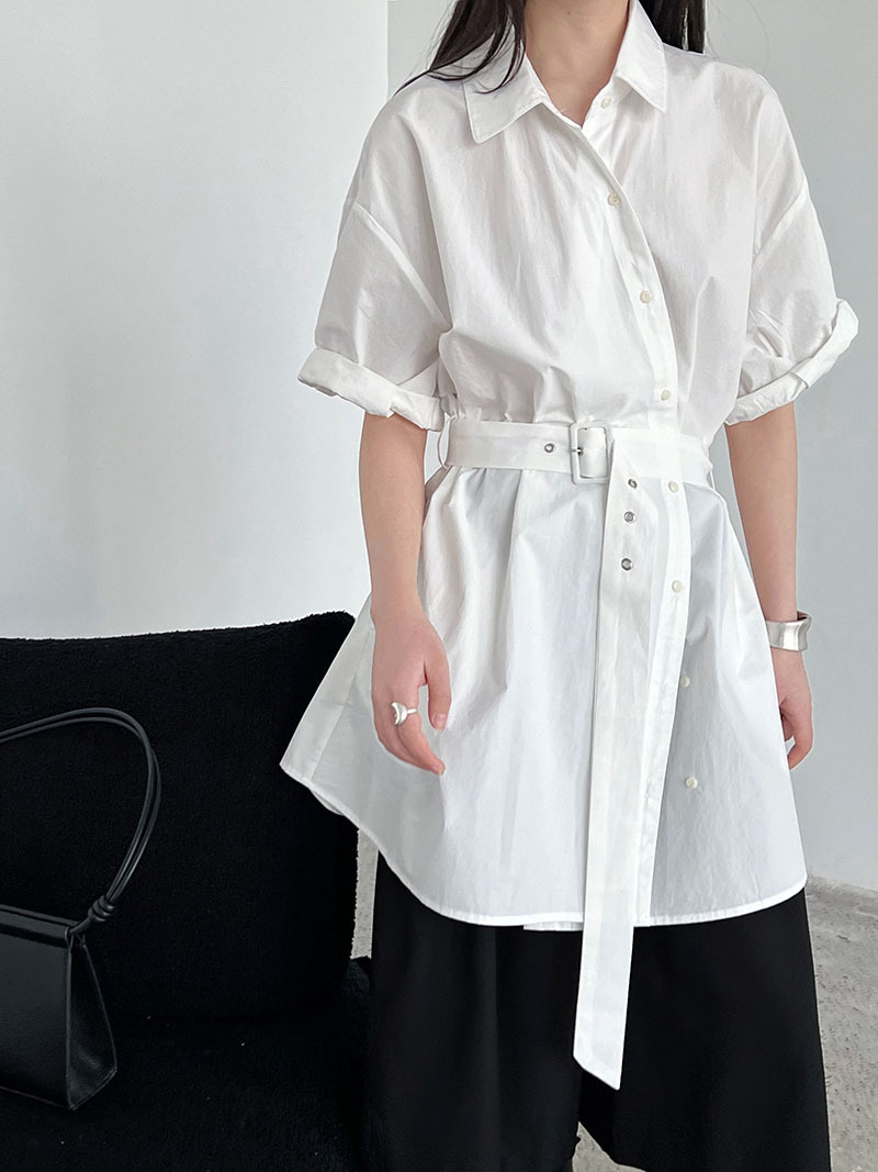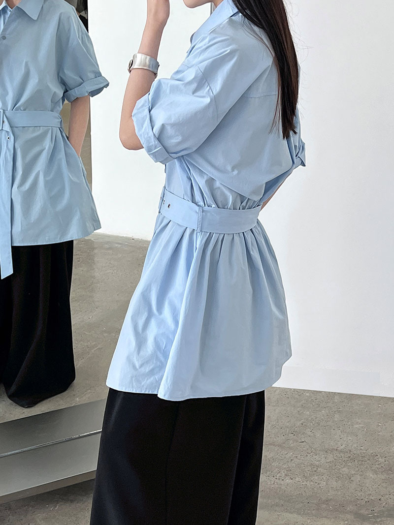 【トップス】韓国風 デザイン性 ウエストベルト付き シャツ レディース 夏新作 ウエストマーク 半袖 トップス【SNシリーズ】