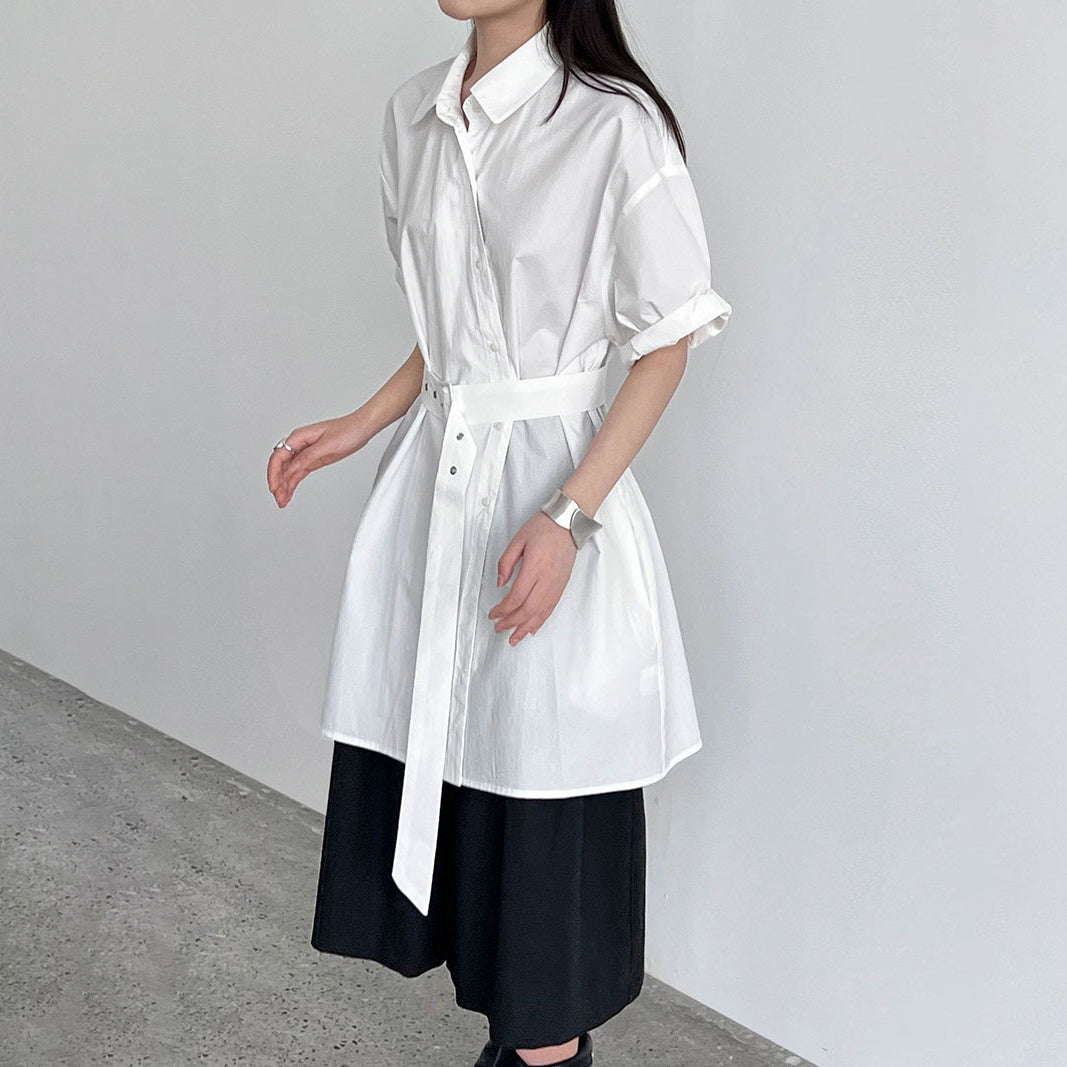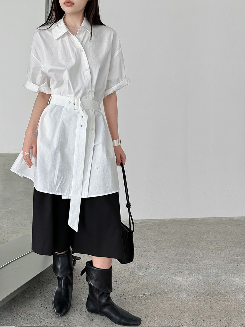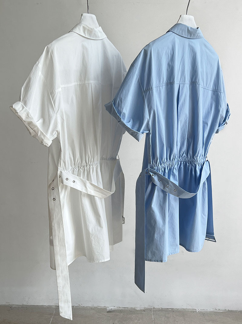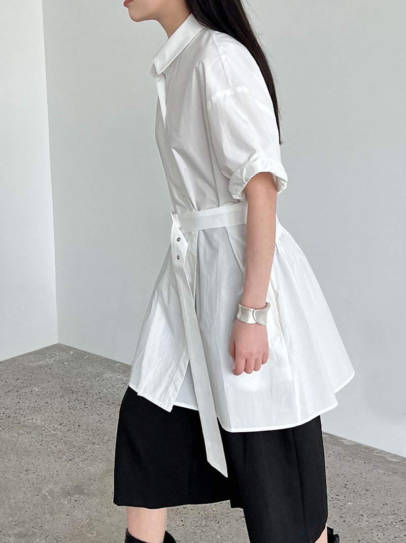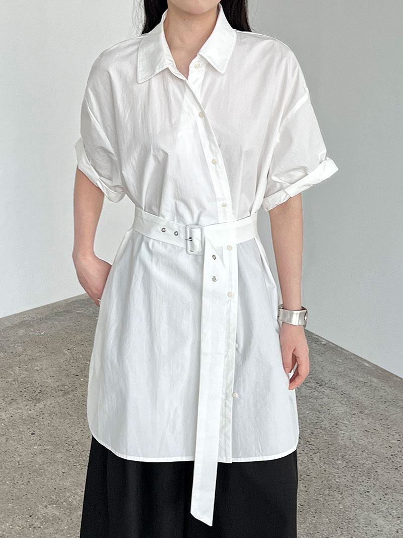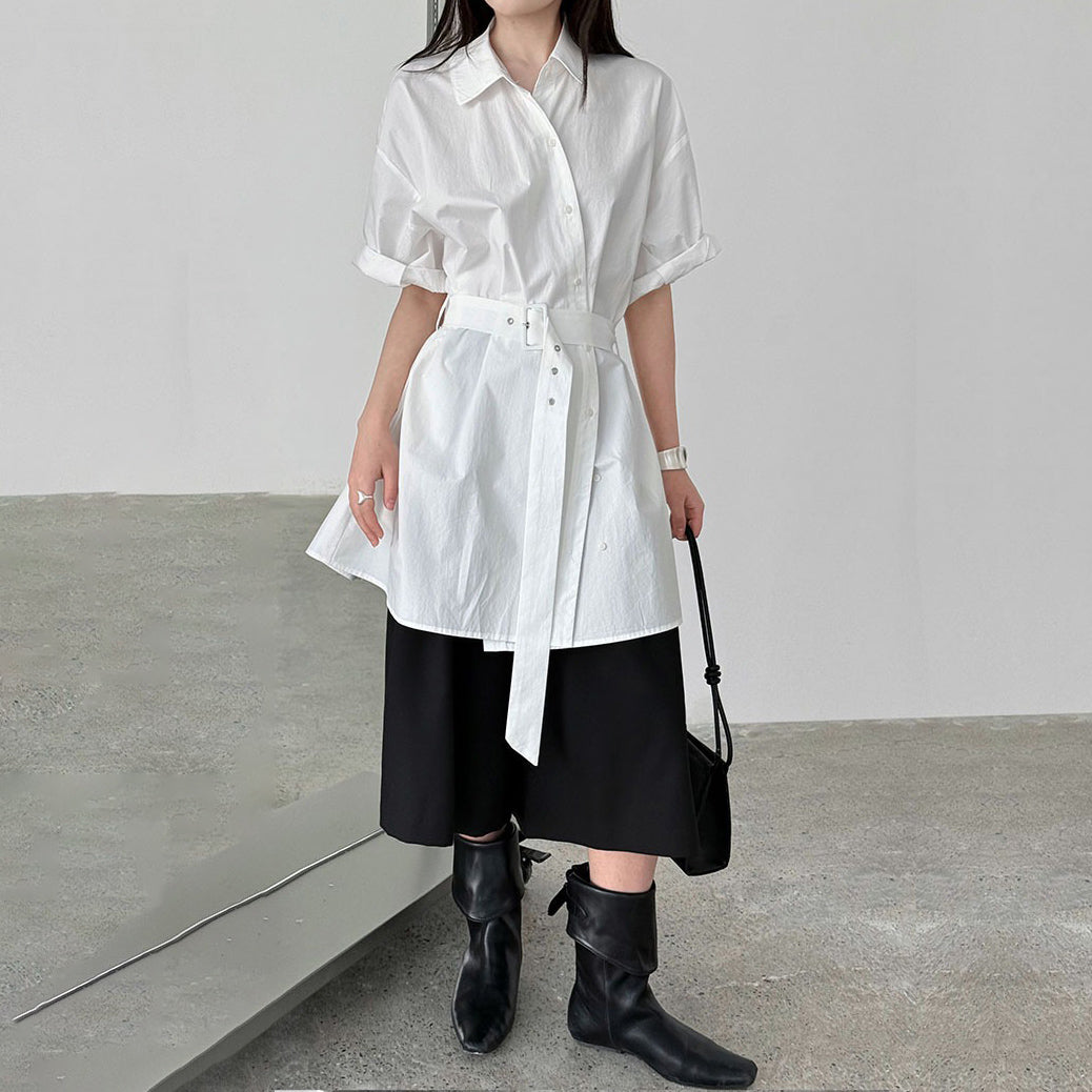 【トップス】韓国風 デザイン性 ウエストベルト付き シャツ レディース 夏新作 ウエストマーク 半袖 トップス【SNシリーズ】