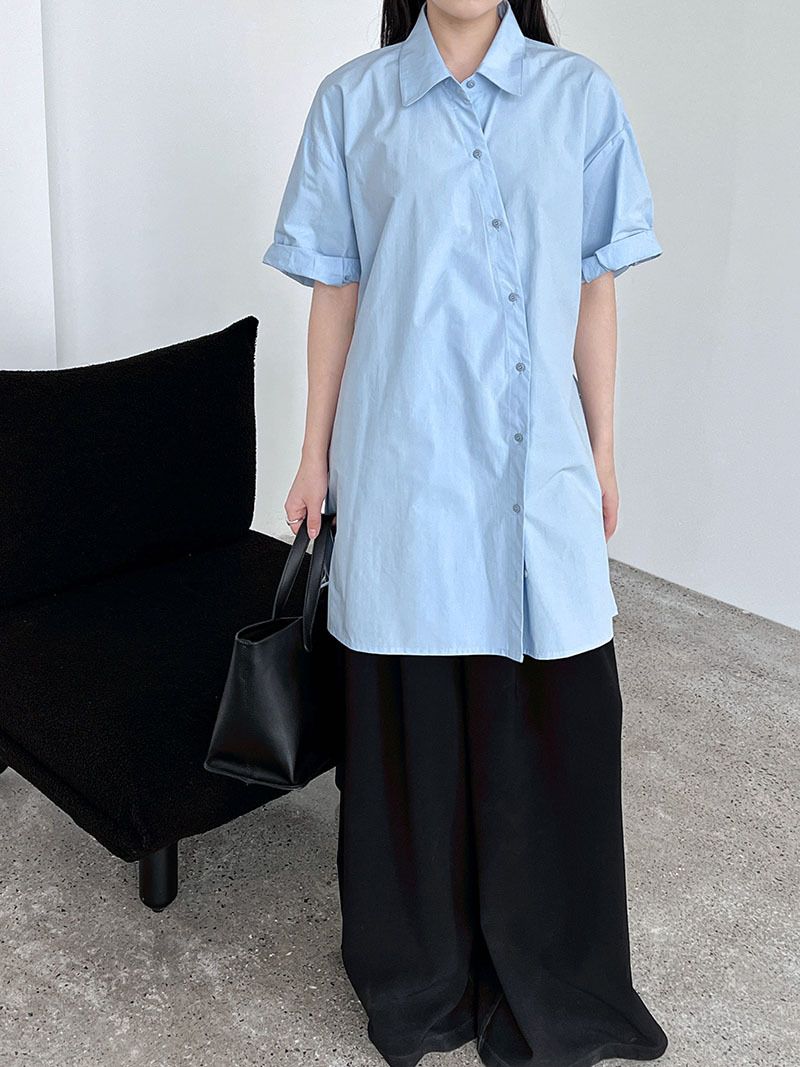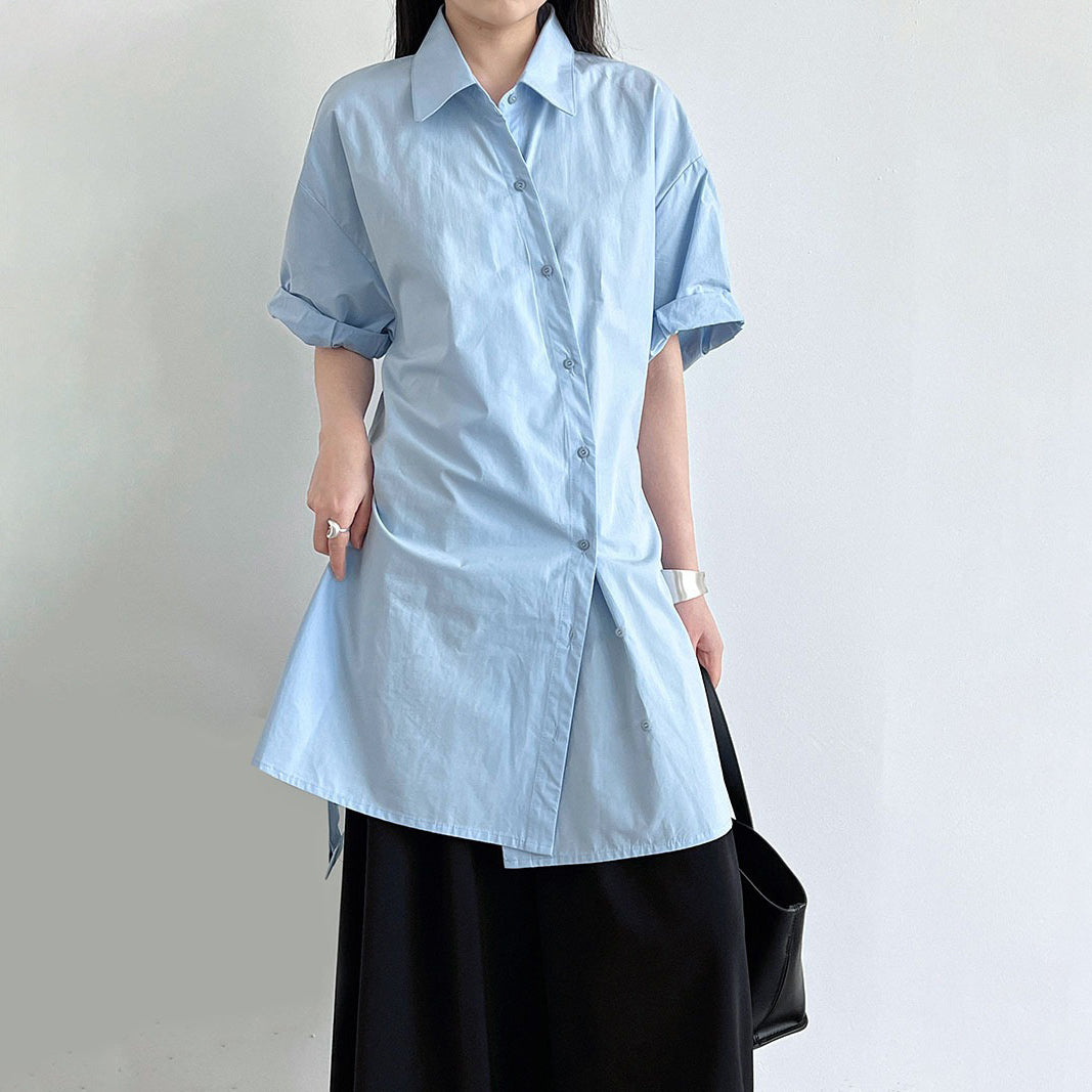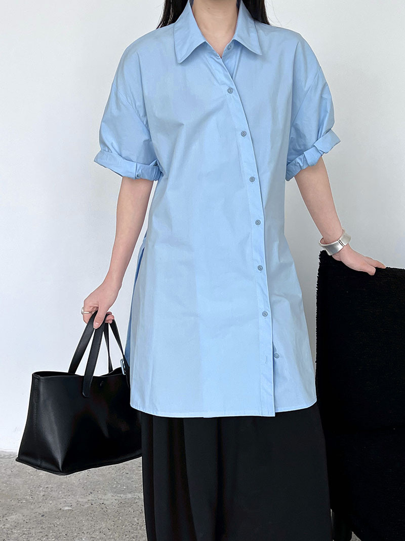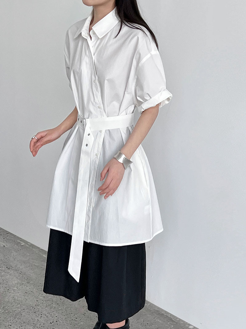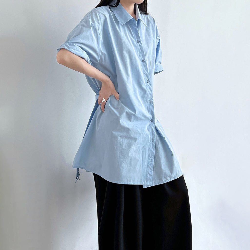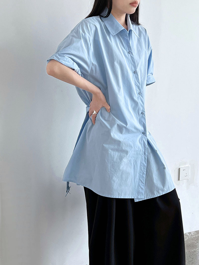 【トップス】韓国風 デザイン性 ウエストベルト付き シャツ レディース 夏新作 ウエストマーク 半袖 トップス【SNシリーズ】