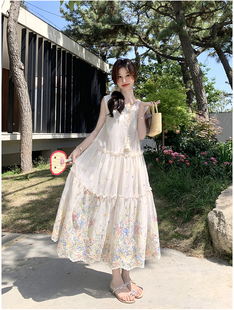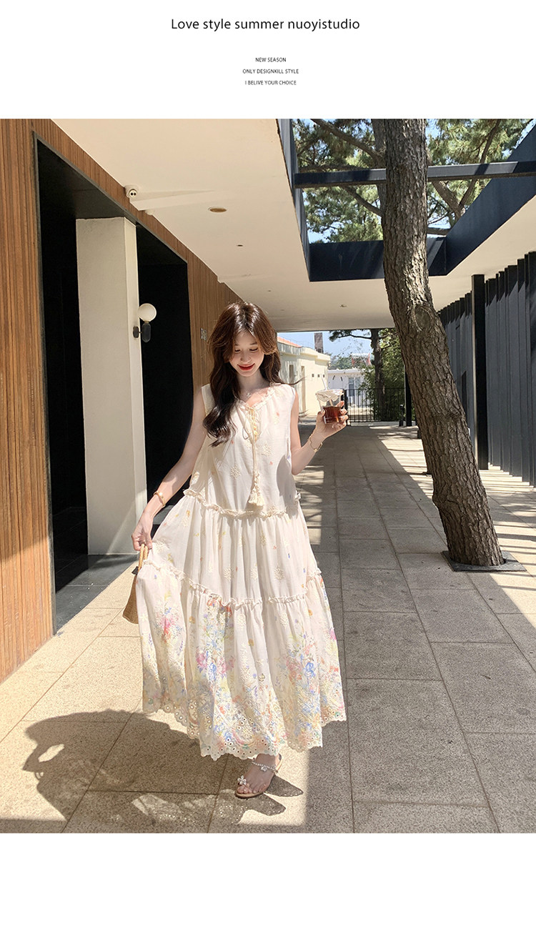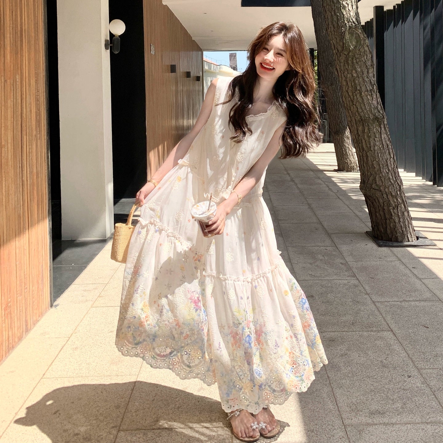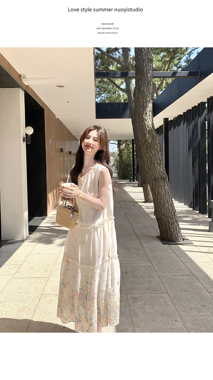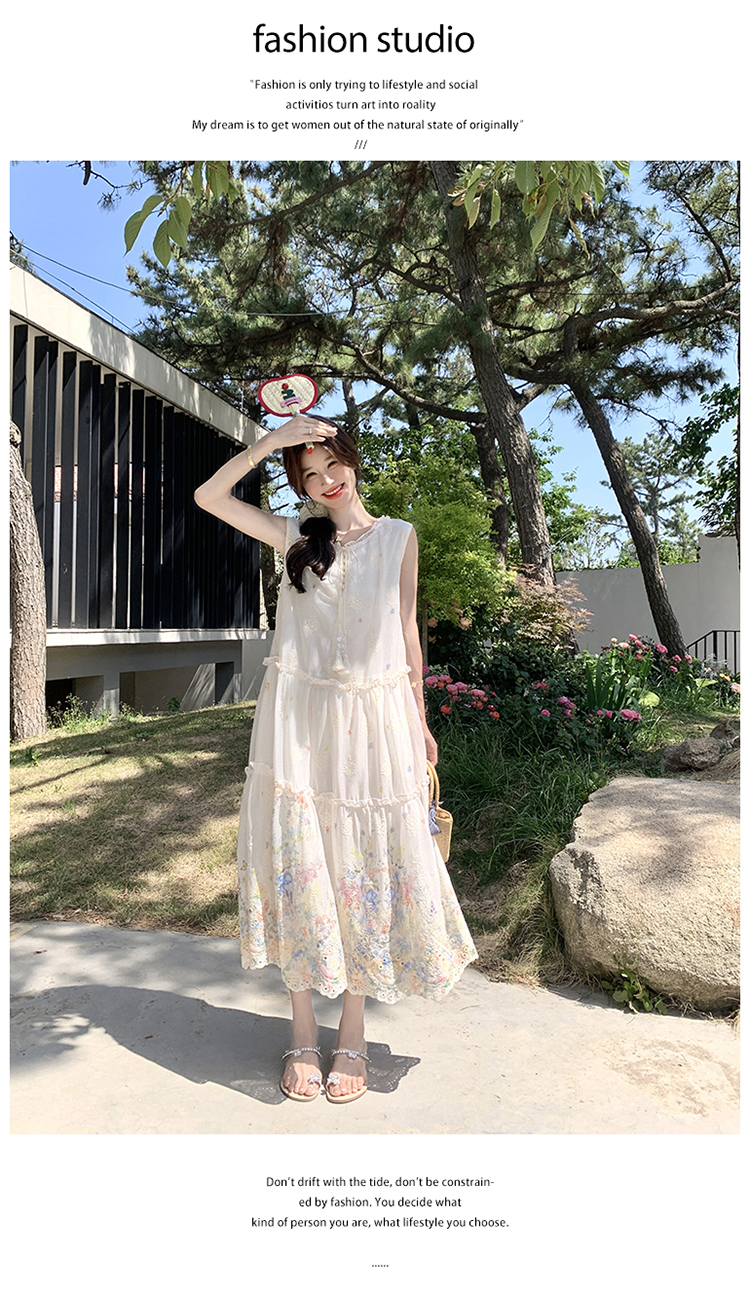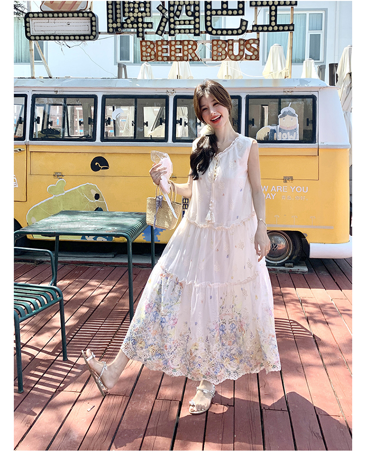 【ワンピース】スイート系 小花柄 ノースリーブ ワンピース 夏 上品 細見え タンク ロングドレス【SHシリーズ】