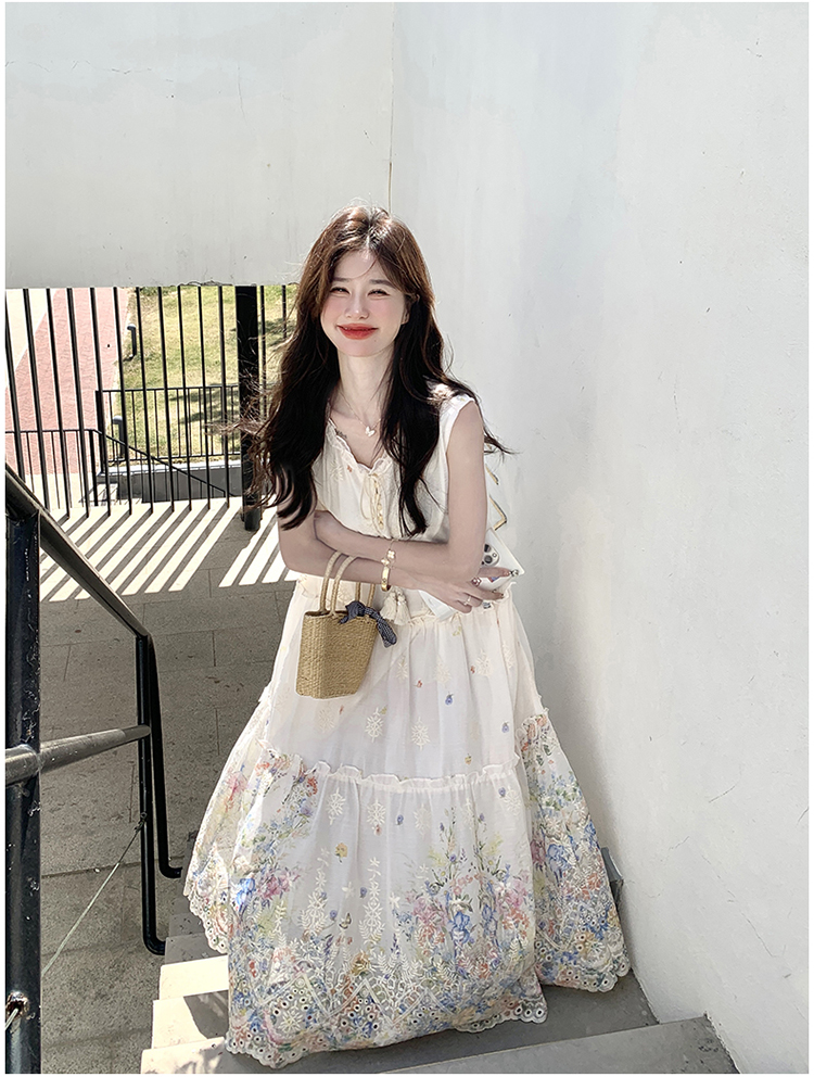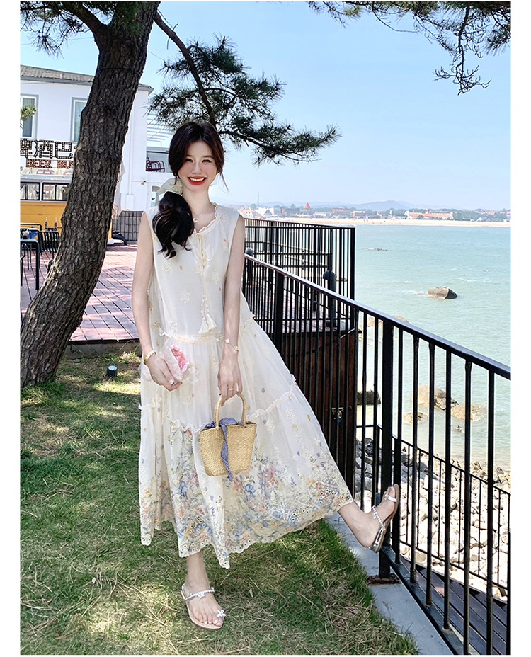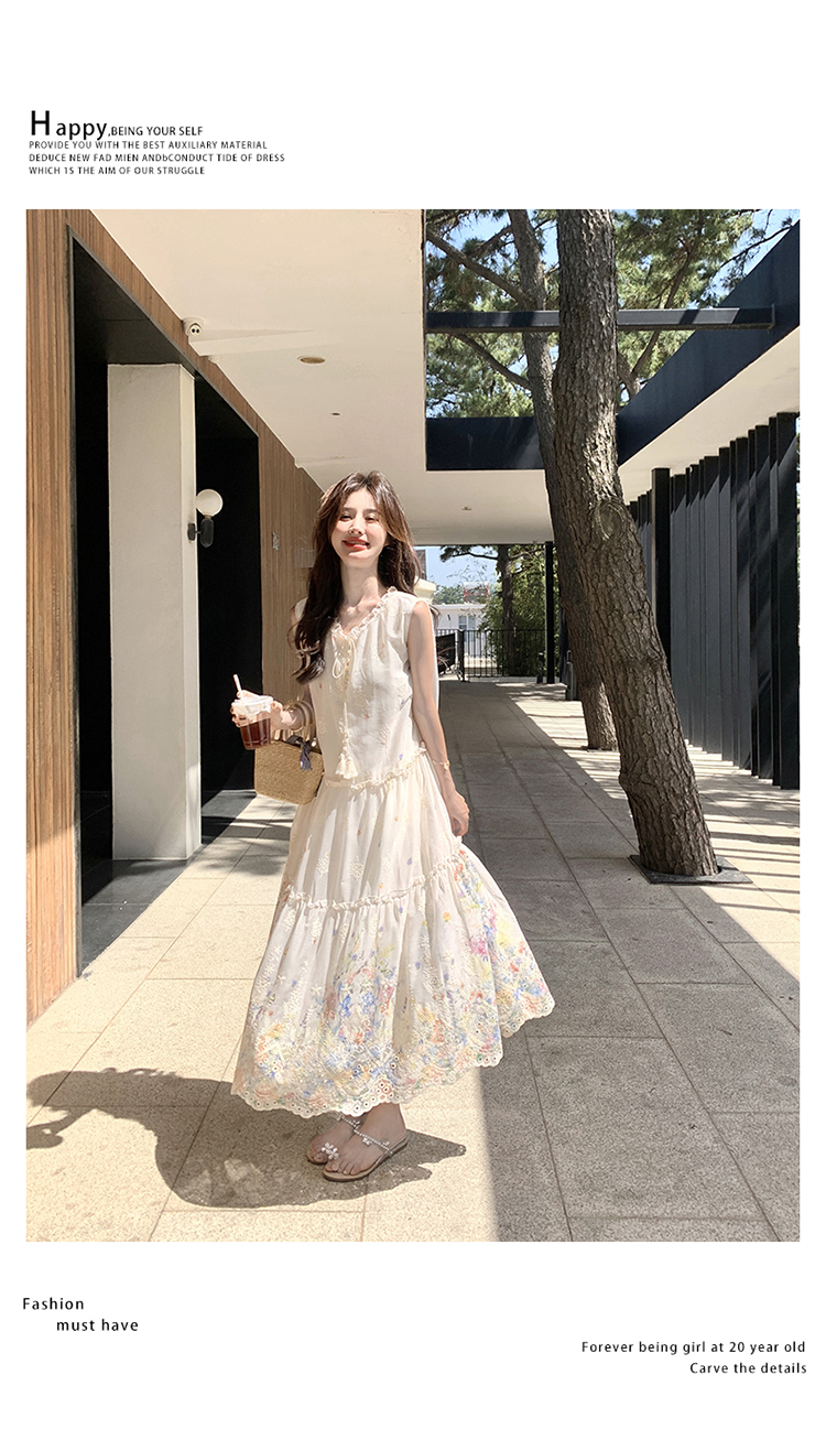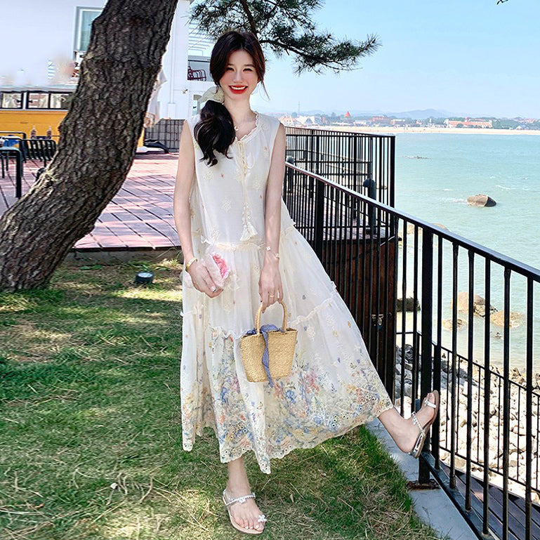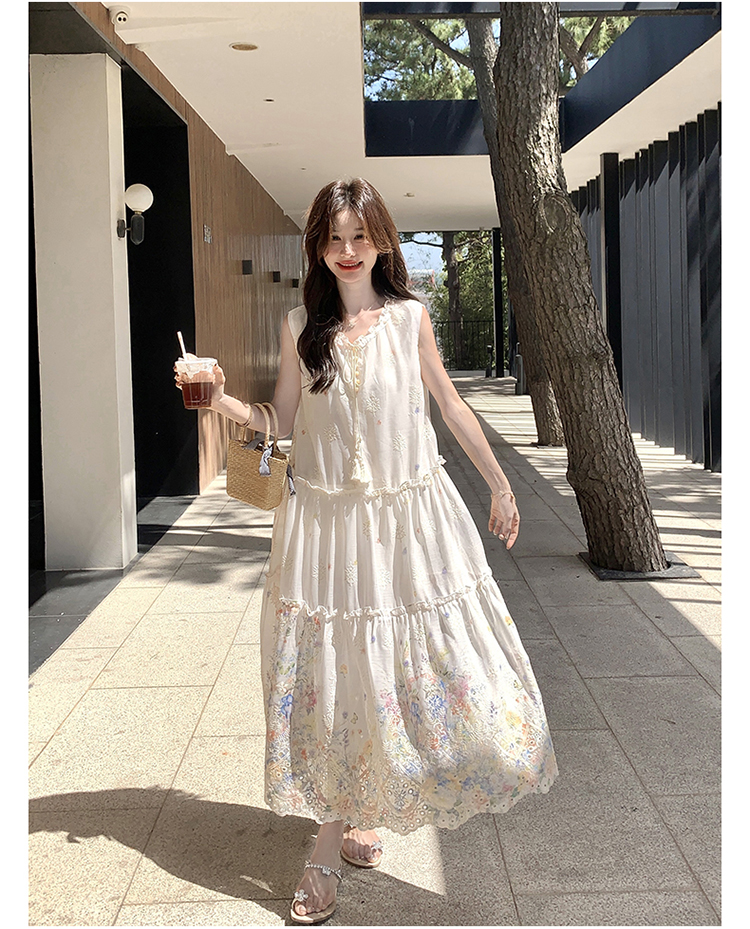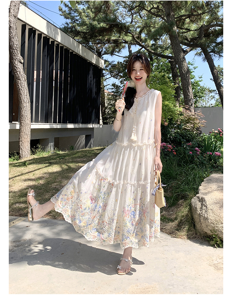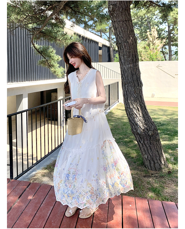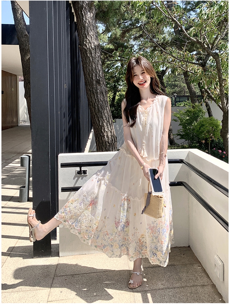 【ワンピース】スイート系 小花柄 ノースリーブ ワンピース 夏 上品 細見え タンク ロングドレス【SHシリーズ】