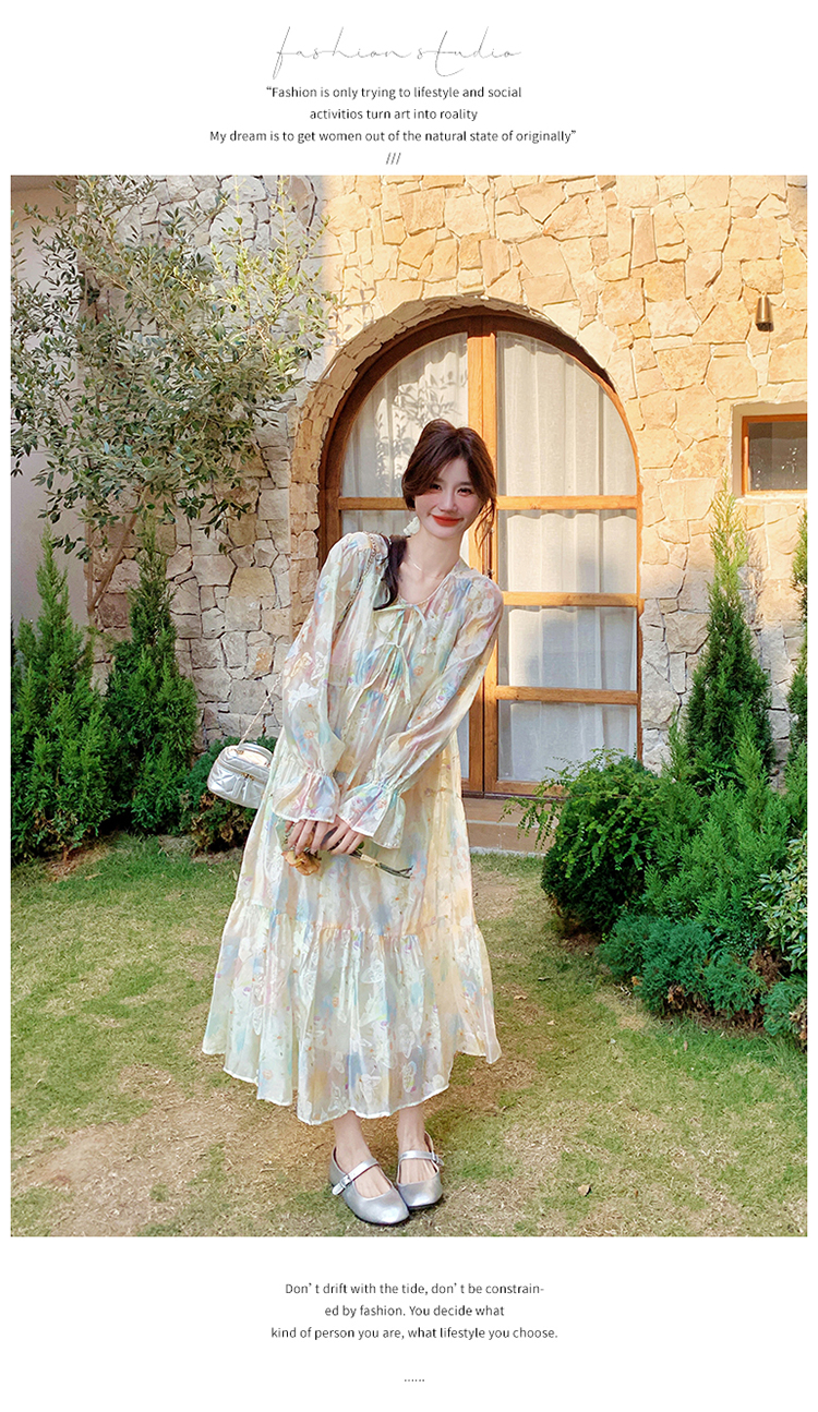【商品名】【ワンピース】超かわいい バタフライプリント ワンピース 春夏 ムード感たっぷり ハイウエスト 日焼け防止 ロングドレス【SHシリーズ】 ふんわり舞う蝶柄が目を惹く、春夏にぴったりのムード系ワンピース。ハイウエスト&ロング丈でスタイルアップ効果も◎。