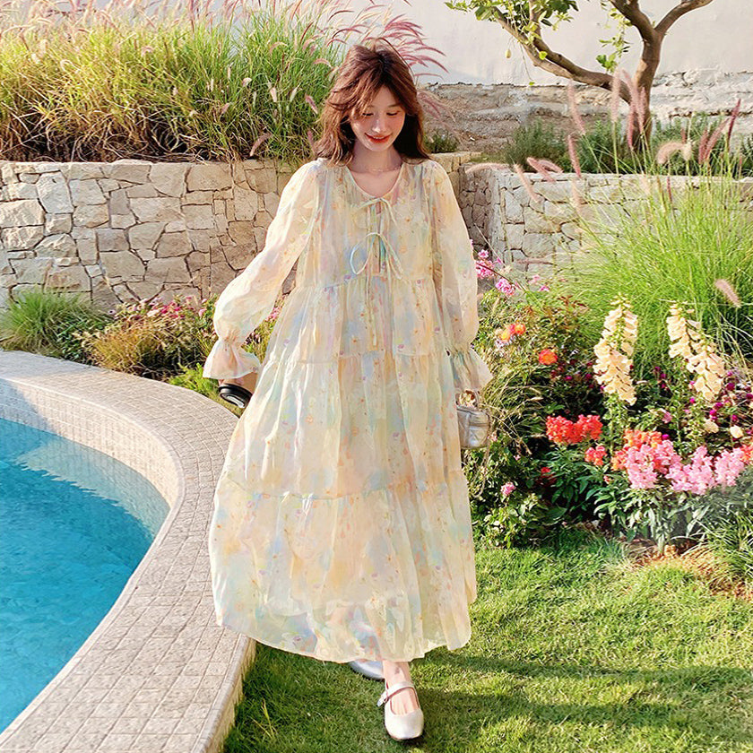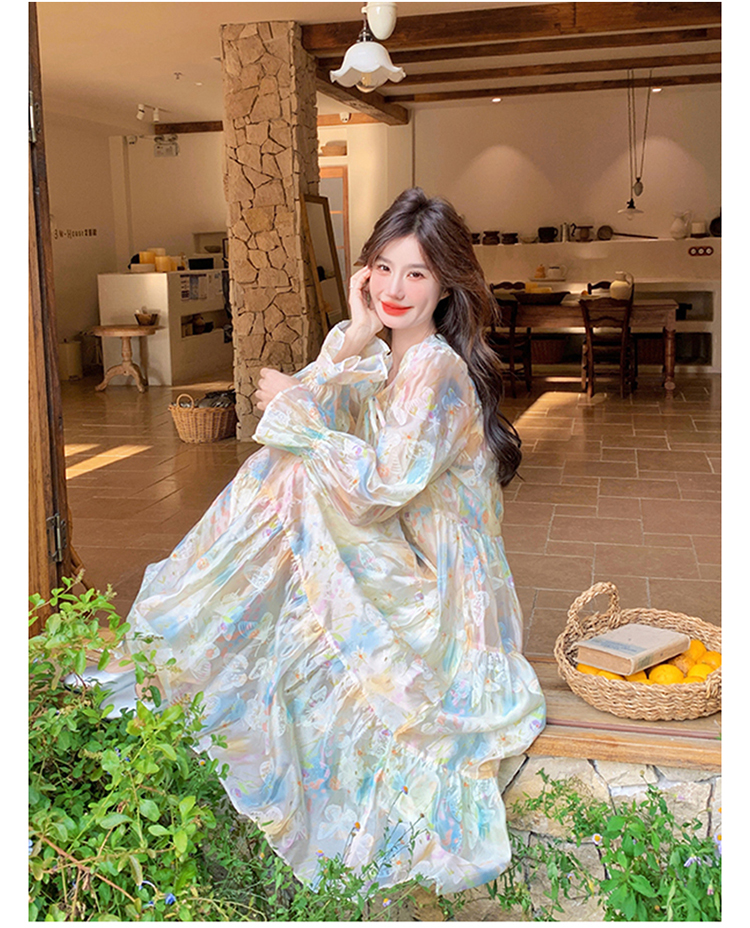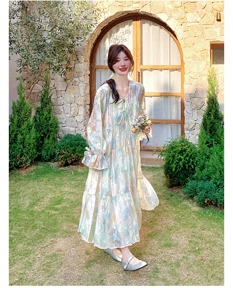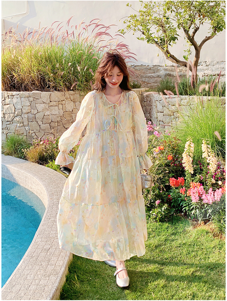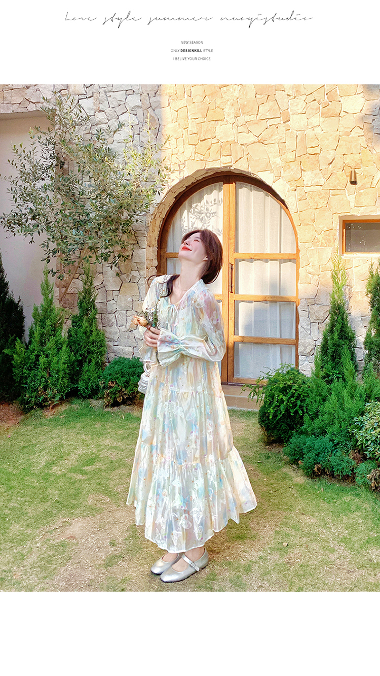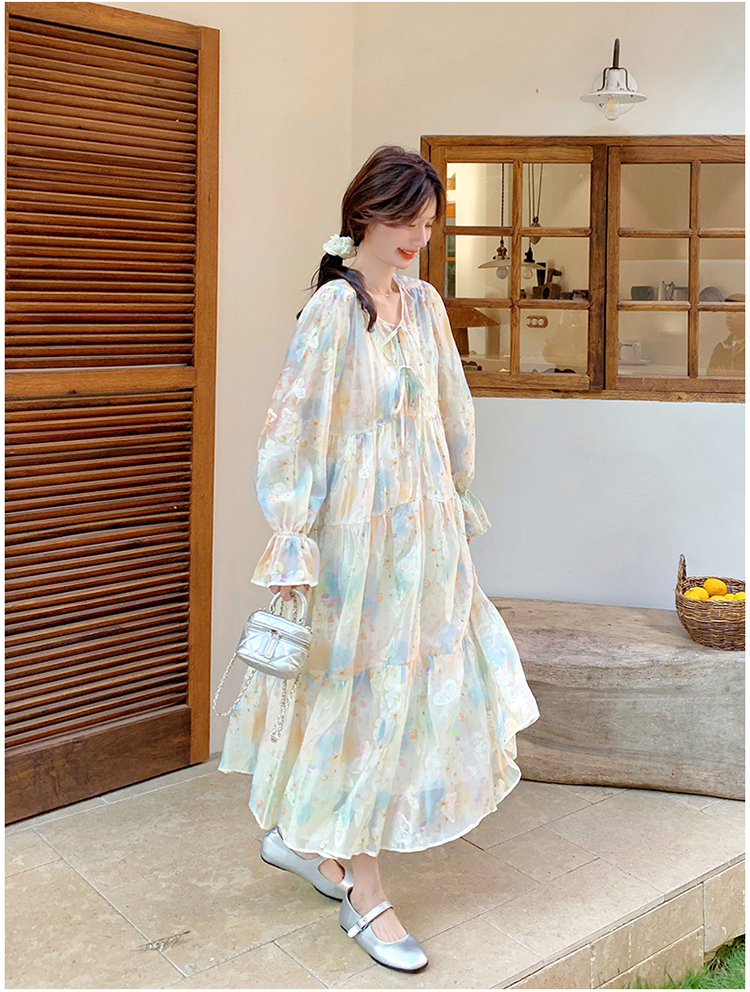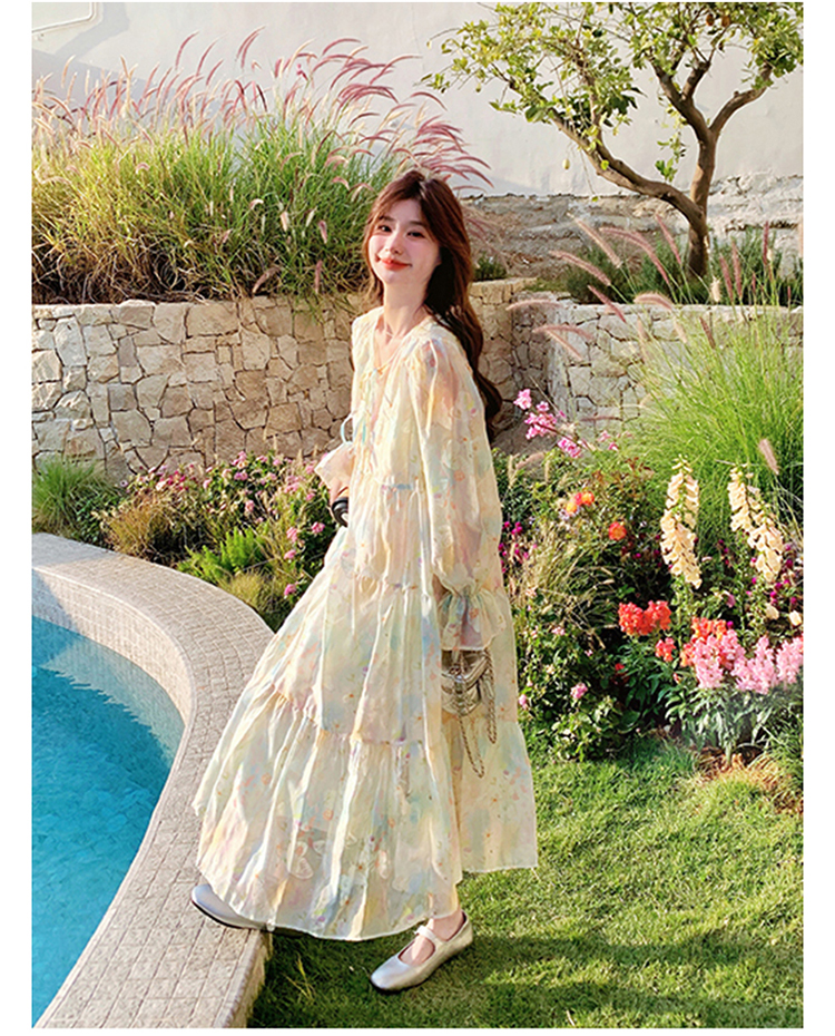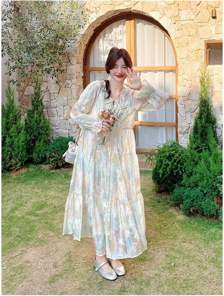 【ワンピース】超かわいい バタフライプリント ワンピース 春夏 ムード感たっぷり ハイウエスト 日焼け防止 ロングドレス【SHシリーズ】