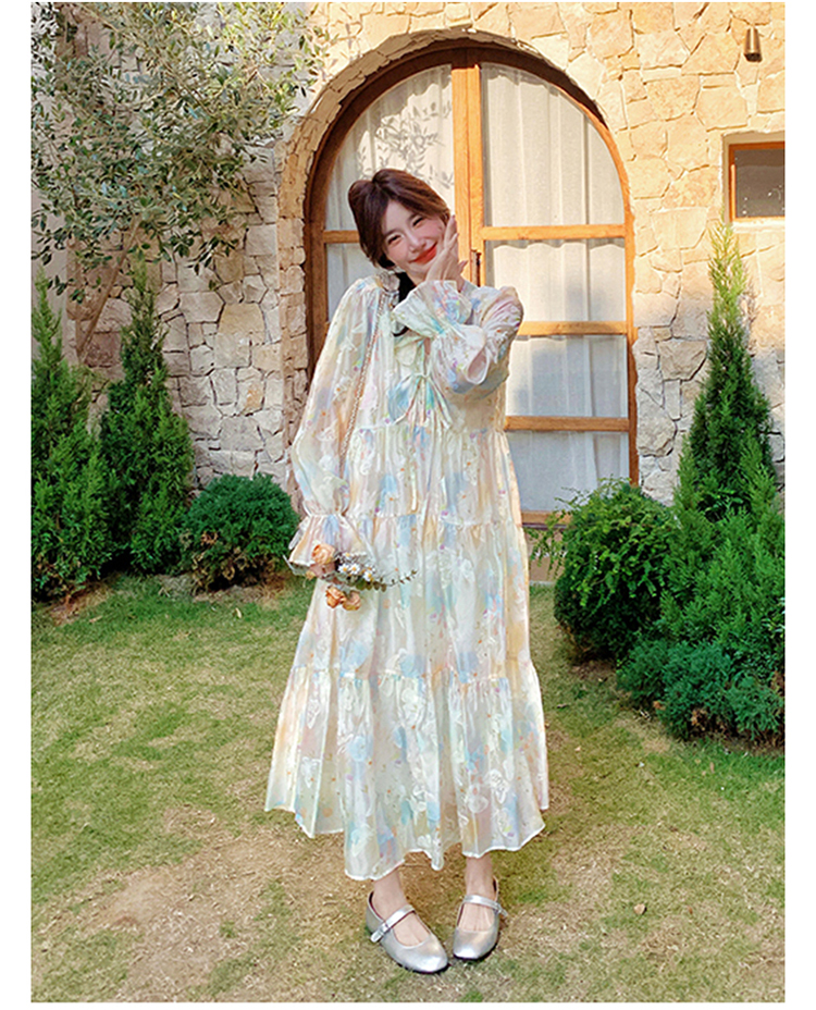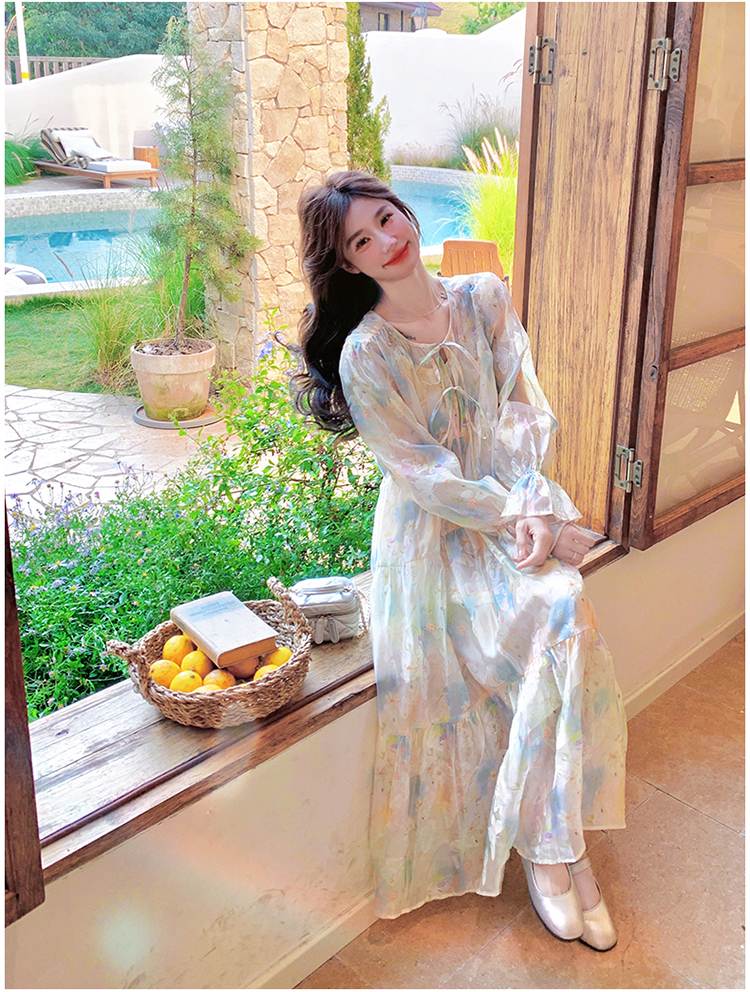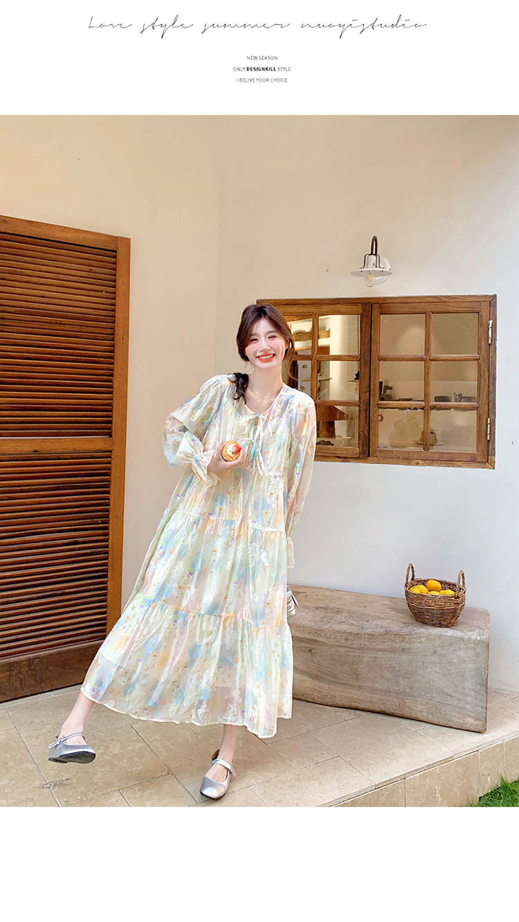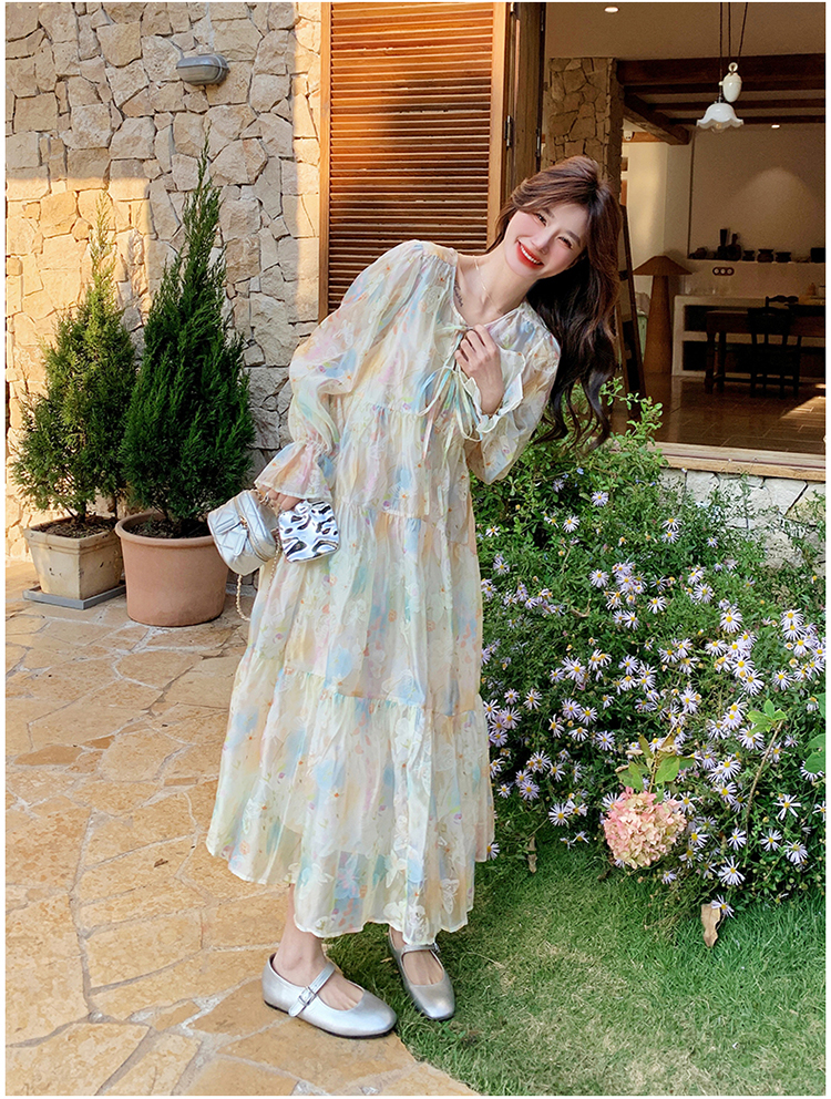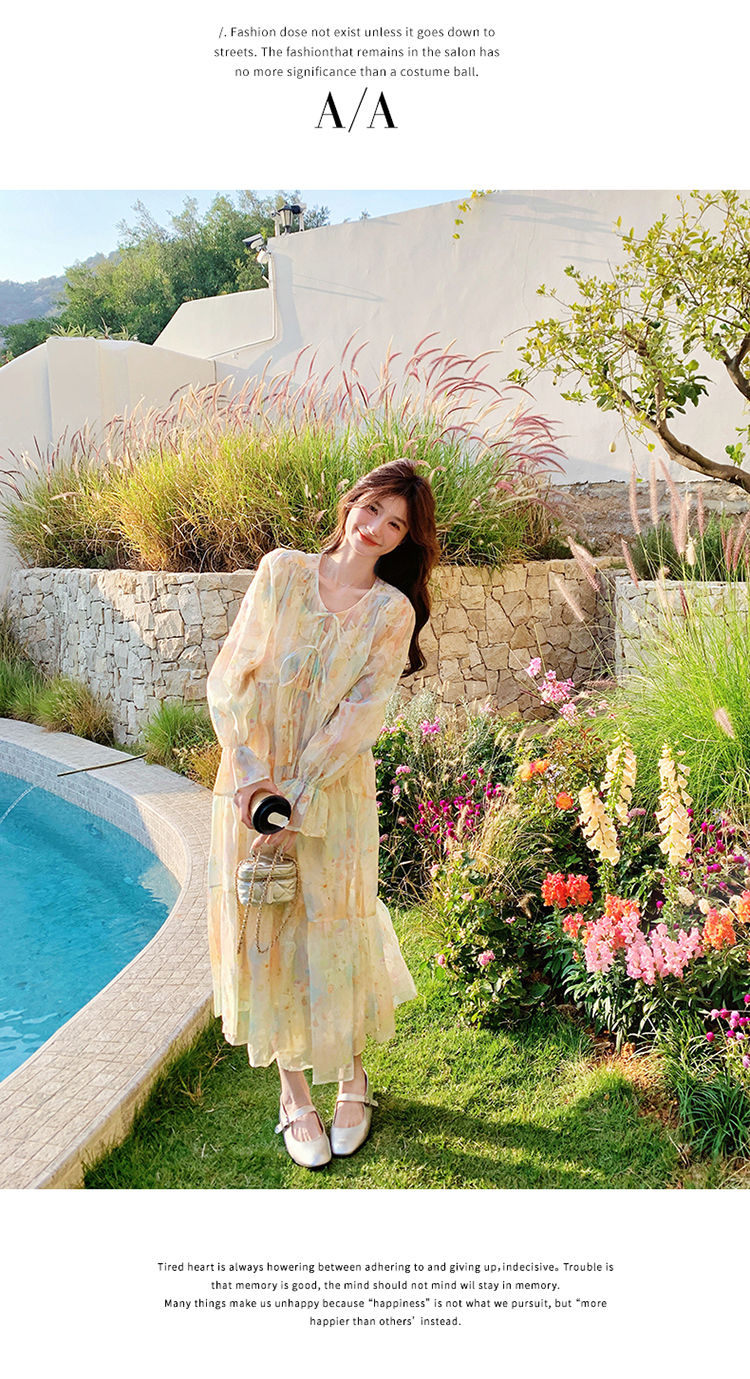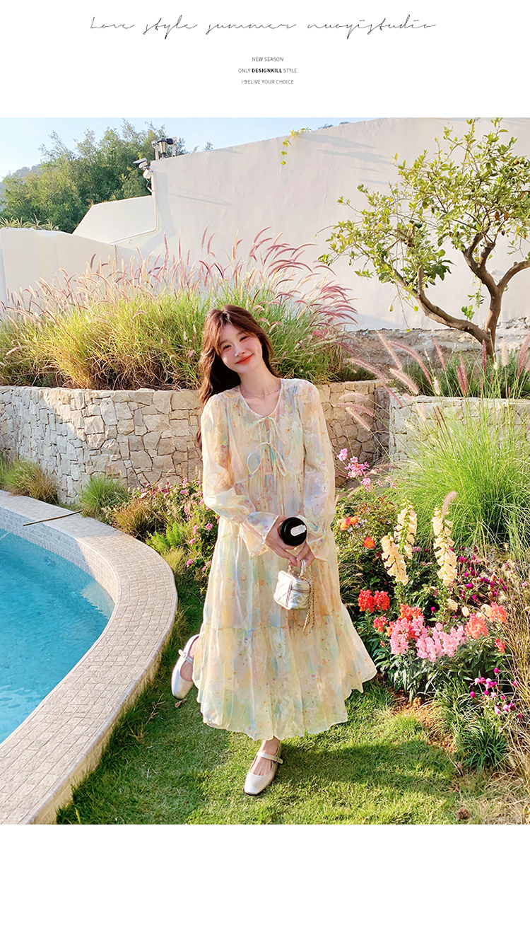 【ワンピース】超かわいい バタフライプリント ワンピース 春夏 ムード感たっぷり ハイウエスト 日焼け防止 ロングドレス【SHシリーズ】