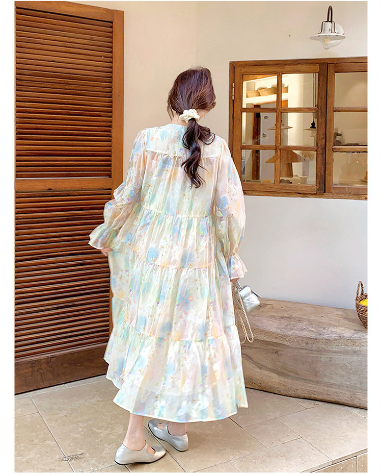 【ワンピース】春 秋 冬 オーガンジー切替 ゆったり ティアード ワンピース 【AHシリーズ】