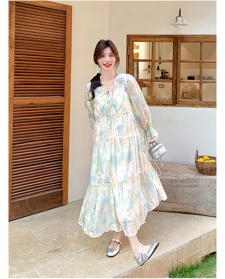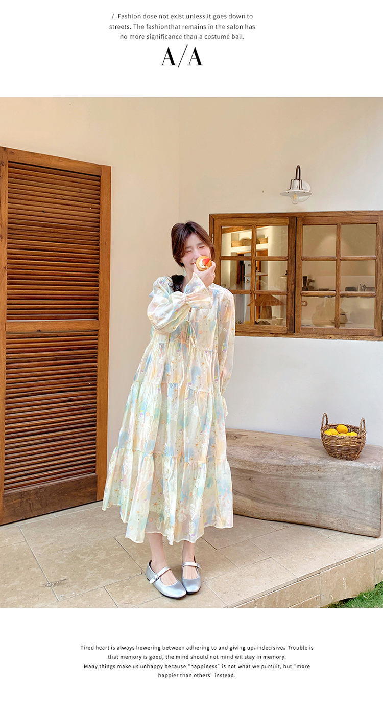 【ワンピース】フレンチレトロ 切替デザイン 大ポケット 長袖 ワンピース 秋新作 ゆったり 【JZシリーズ】
