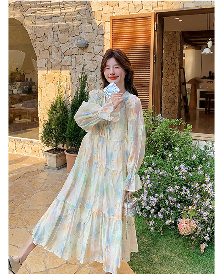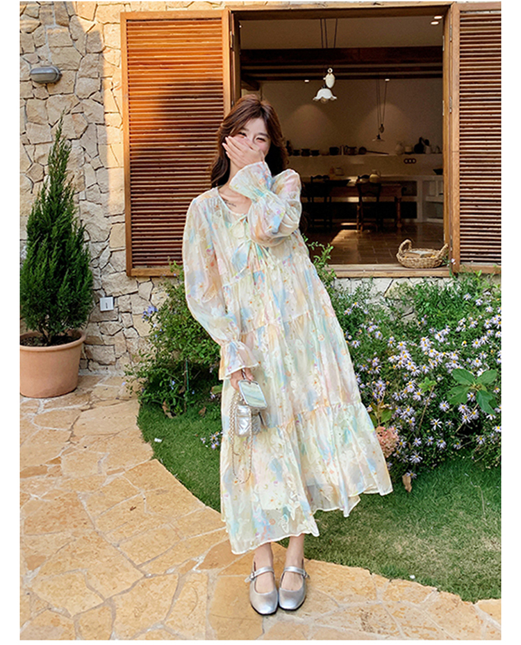 【ワンピース】細見え 日系 Vネック 無地 長袖ワンピース 切替デザイン ゆったり 気質ロング【JZシリーズ】【AHシリーズ】
