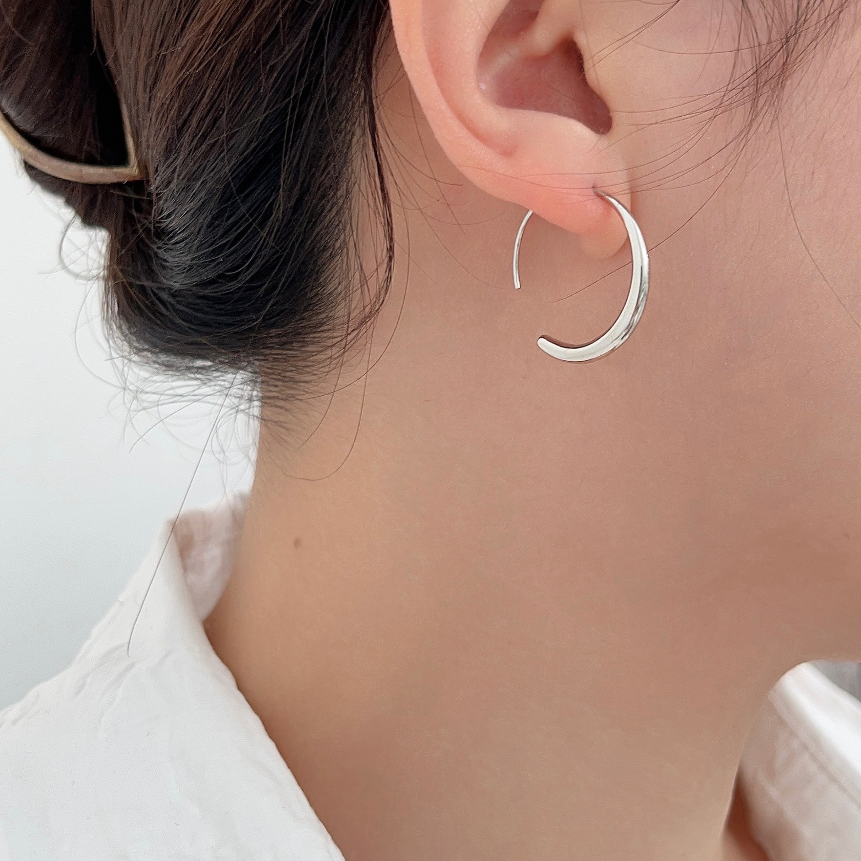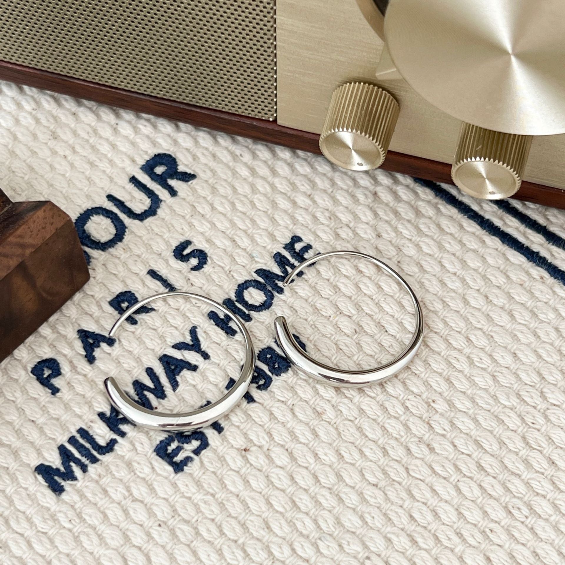 【🎁 B2G1|先行スタート!】【グッズ】純銀製 ハーフサークル フープピアス 高級感&重厚感