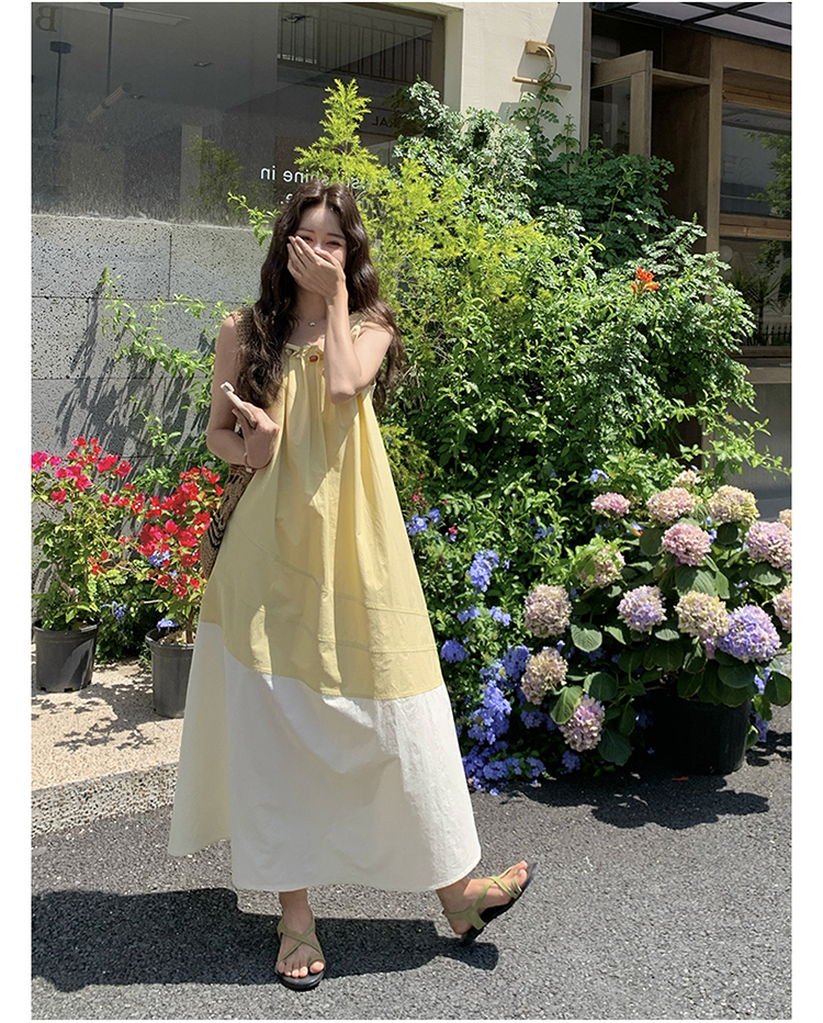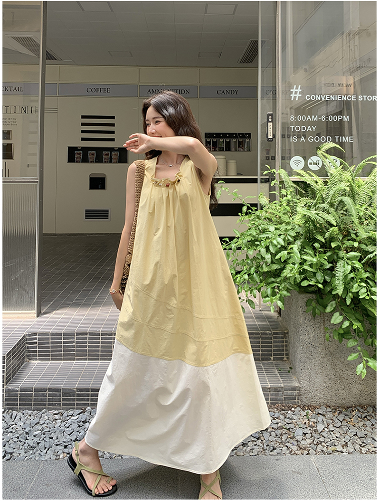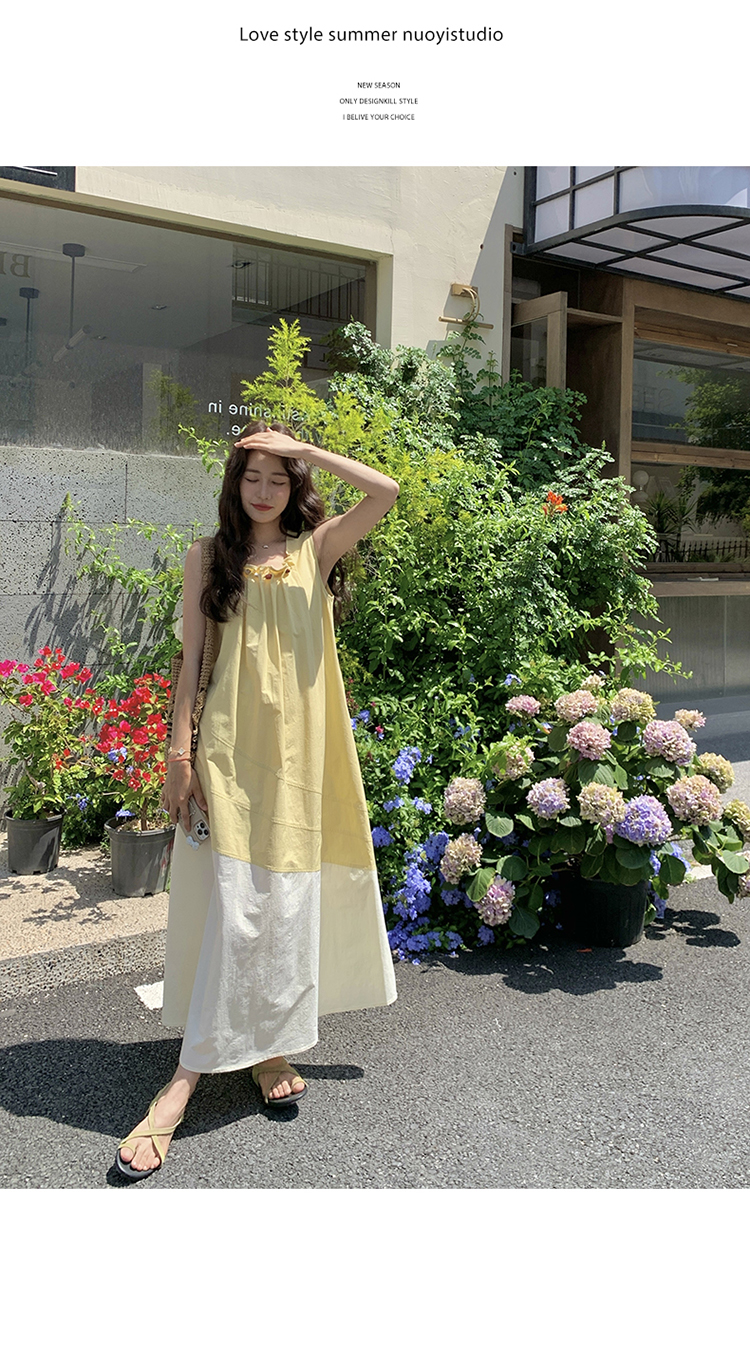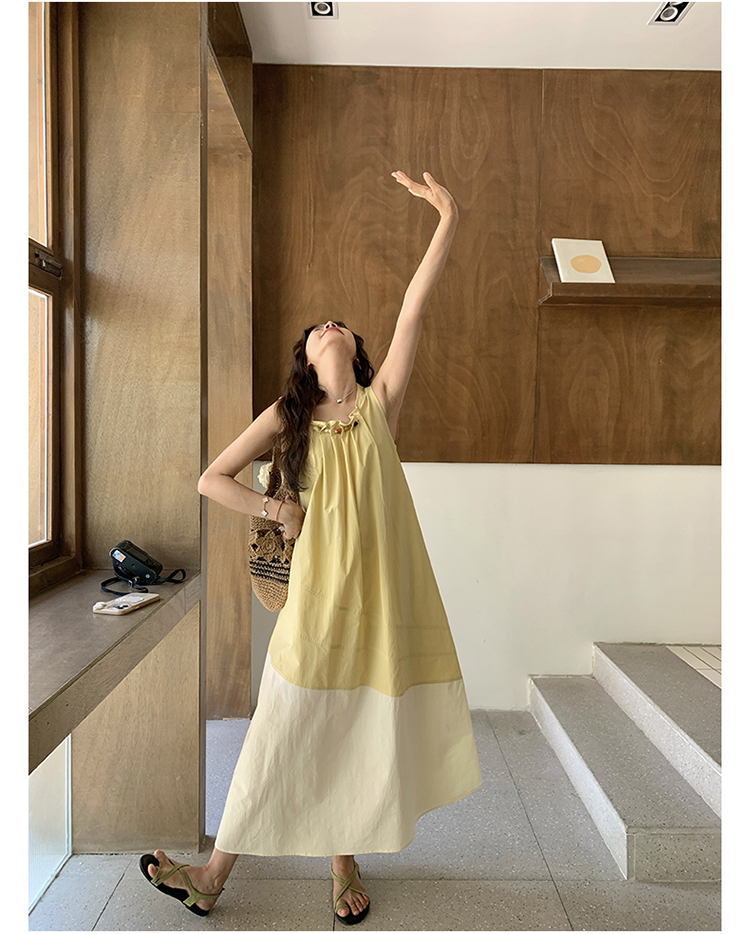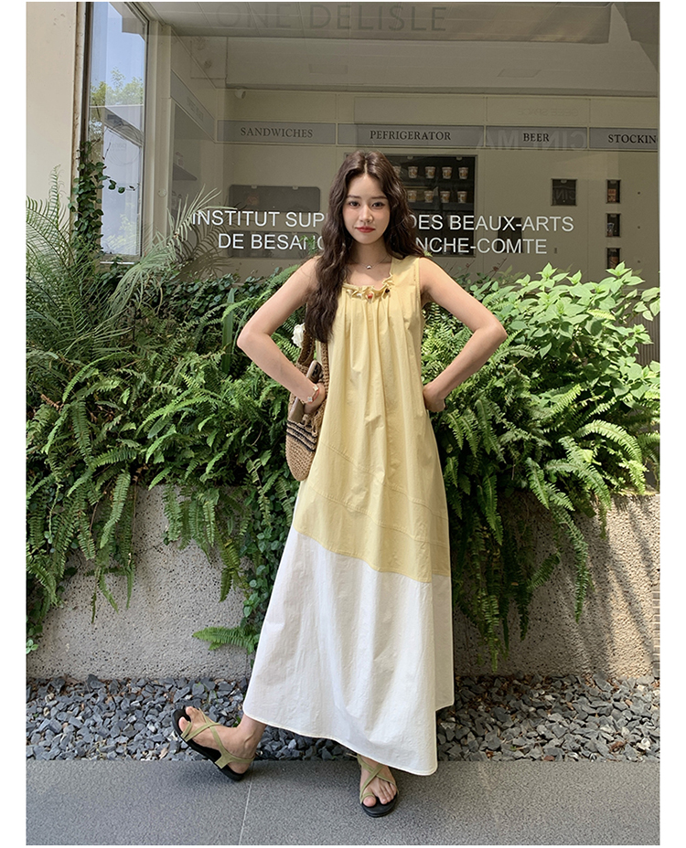 【ワンピース】切り替え ライトイエロー ノースリーブ タンクワンピース レディース 夏 ゆったり スタイルアップ ロング丈【JZシリーズ】