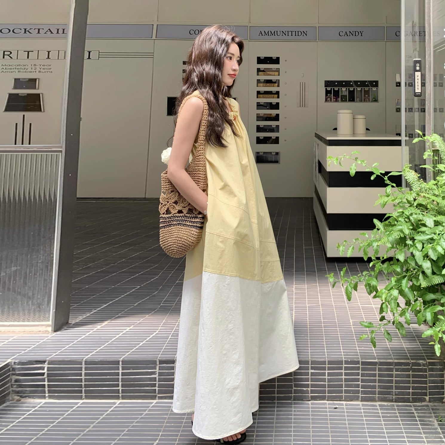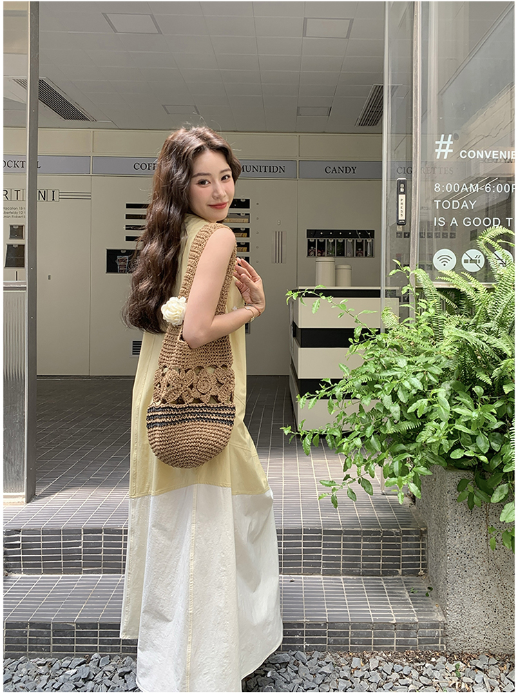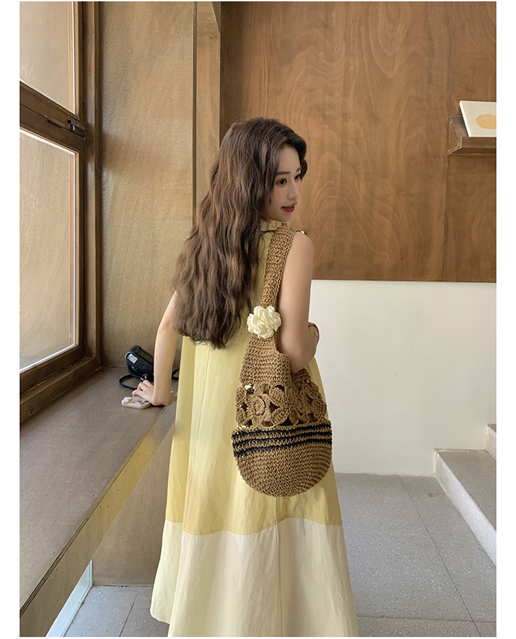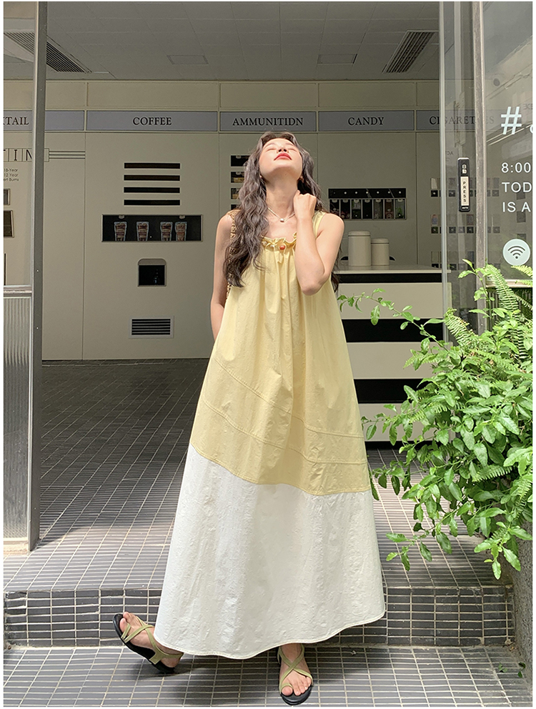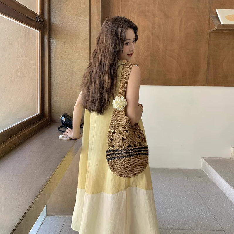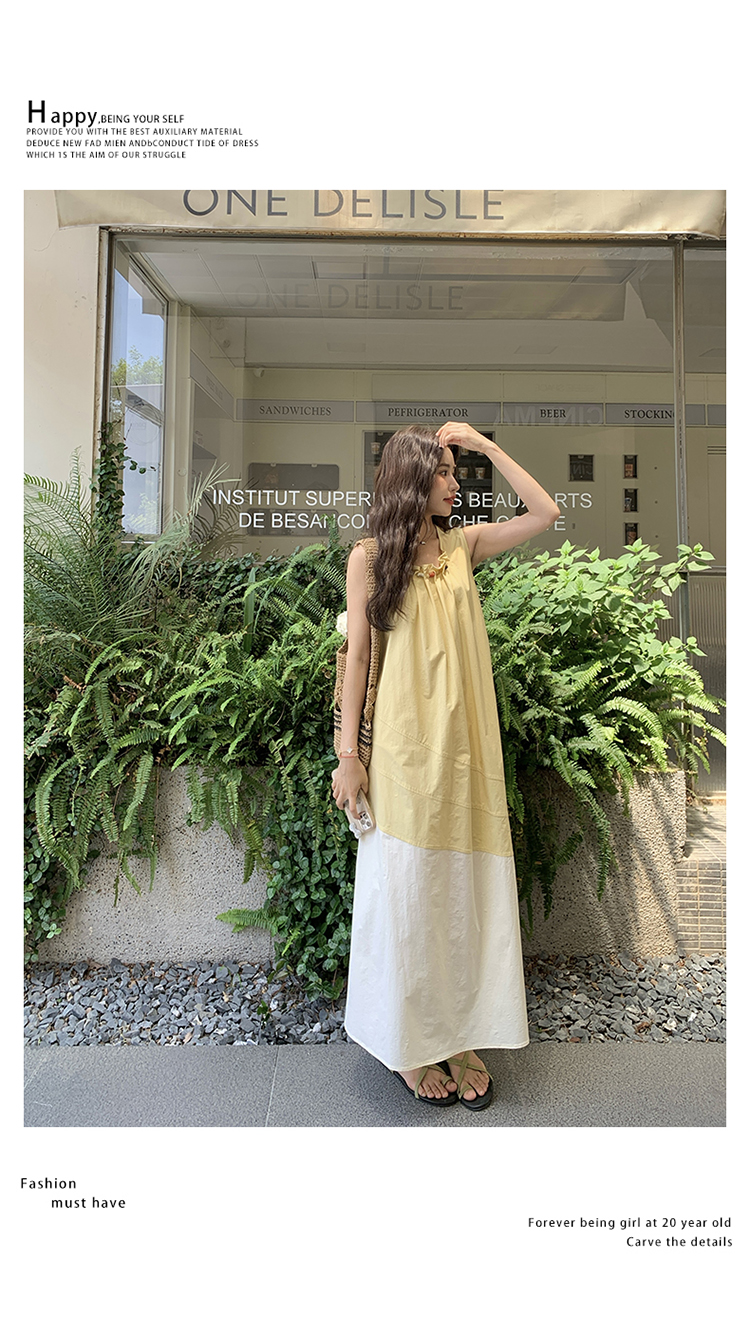 【ワンピース】切り替え ライトイエロー ノースリーブ タンクワンピース レディース 夏 ゆったり スタイルアップ ロング丈【JZシリーズ】