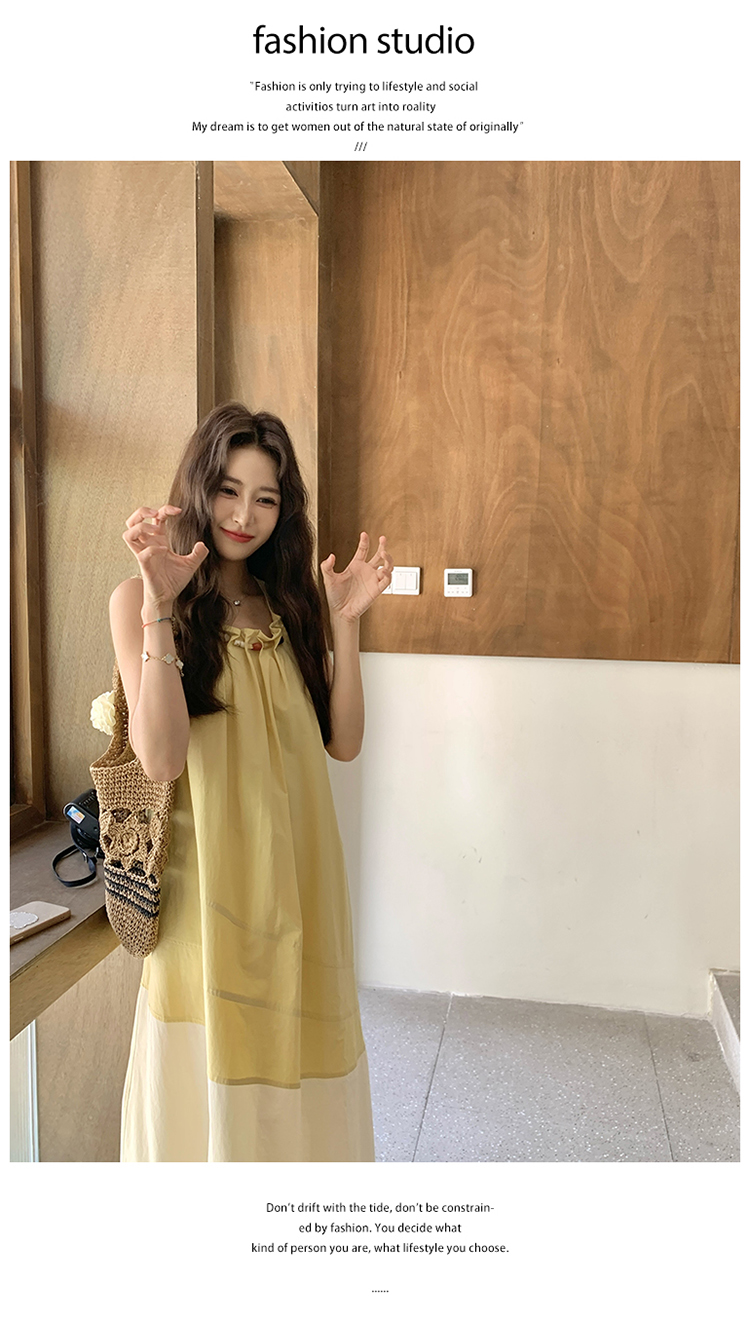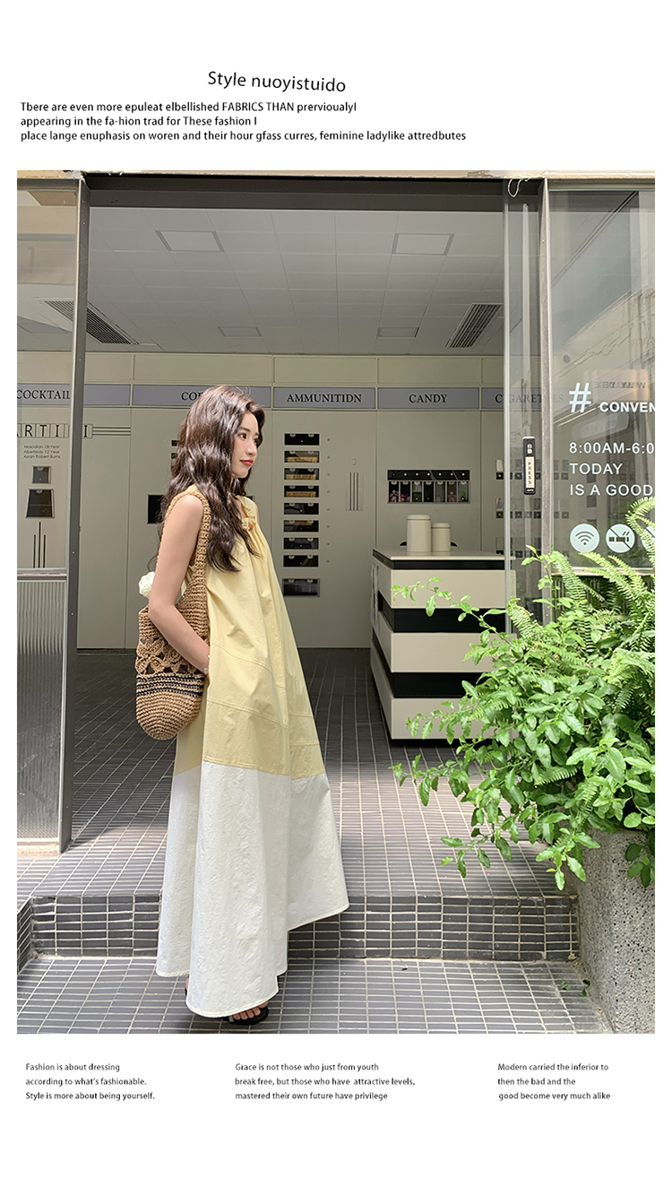 【商品名】【ワンピース】切り替え ライトイエロー ノースリーブ タンクワンピース レディース 夏 ゆったり スタイルアップ ロング丈【JZシリーズ】