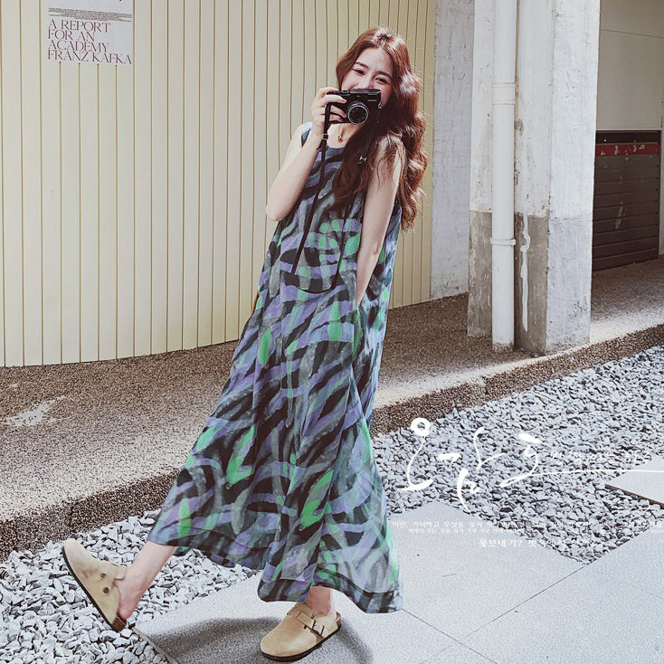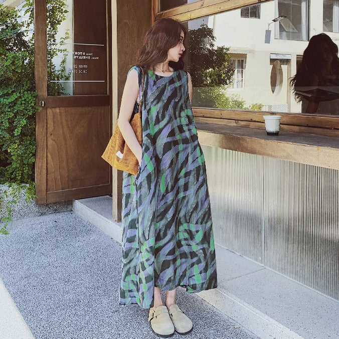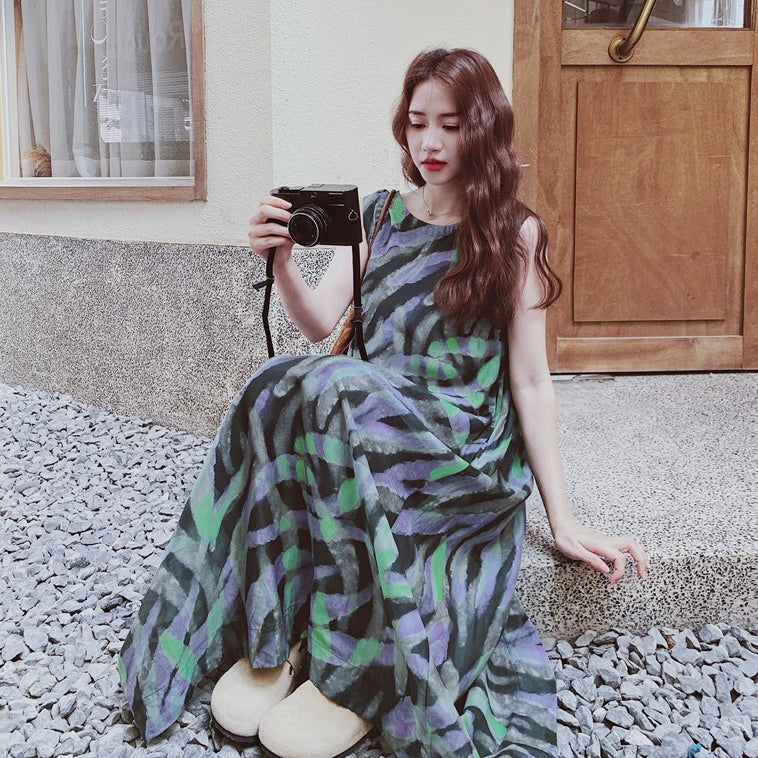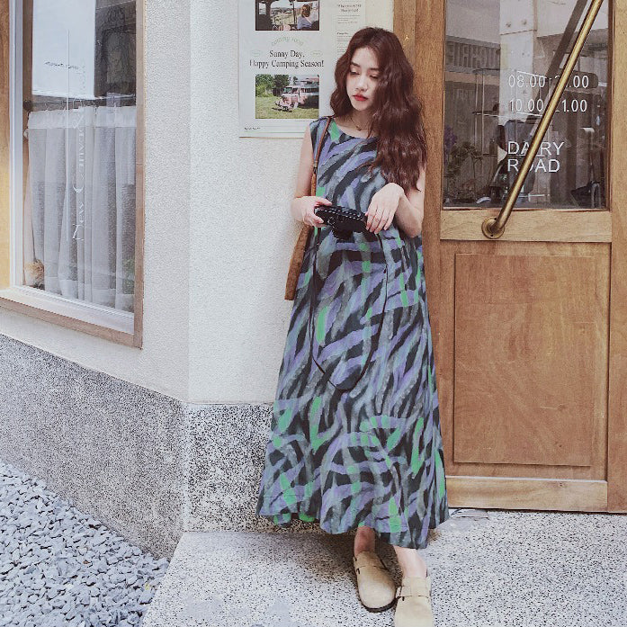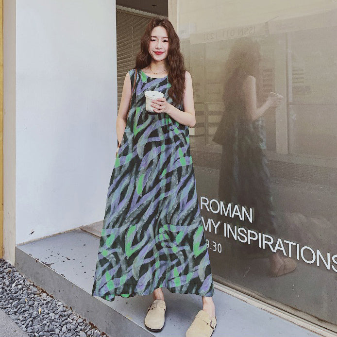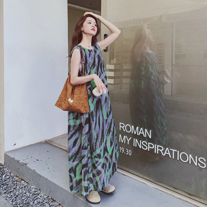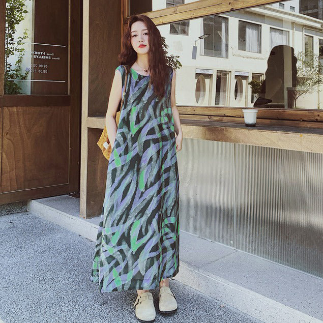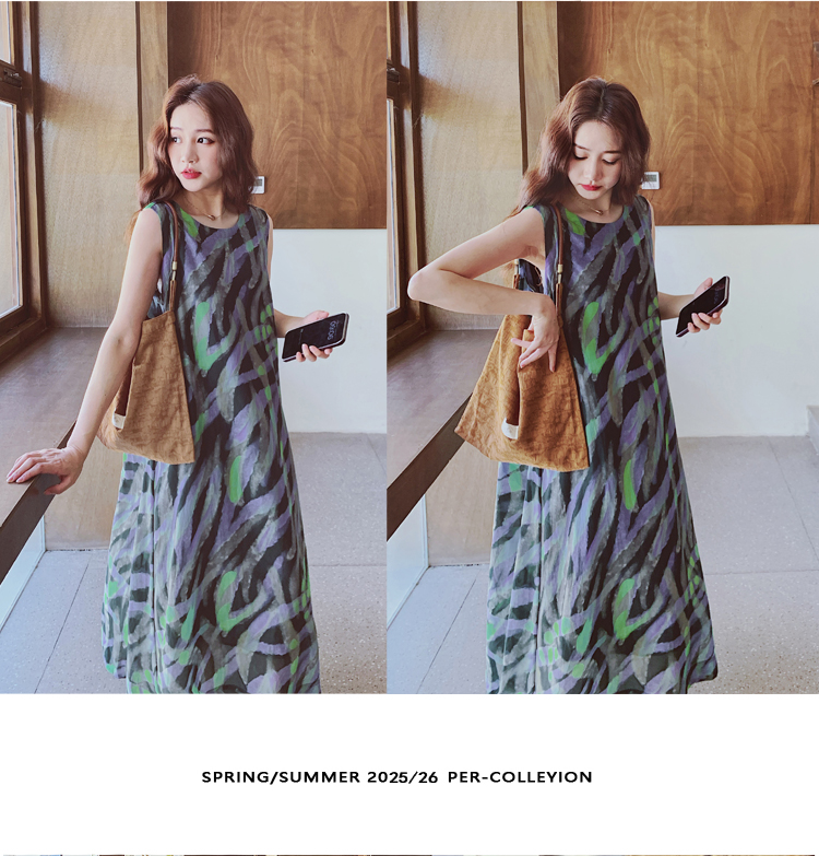 【ワンピース】バイカラー ノースリーブ タンク ワンピース レディース 夏 2025 新作 とても 可愛い ロング丈 ワンピース【SHシリーズ】
