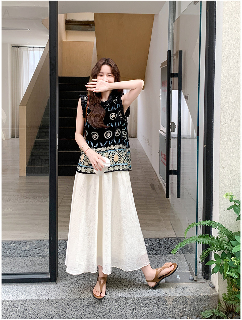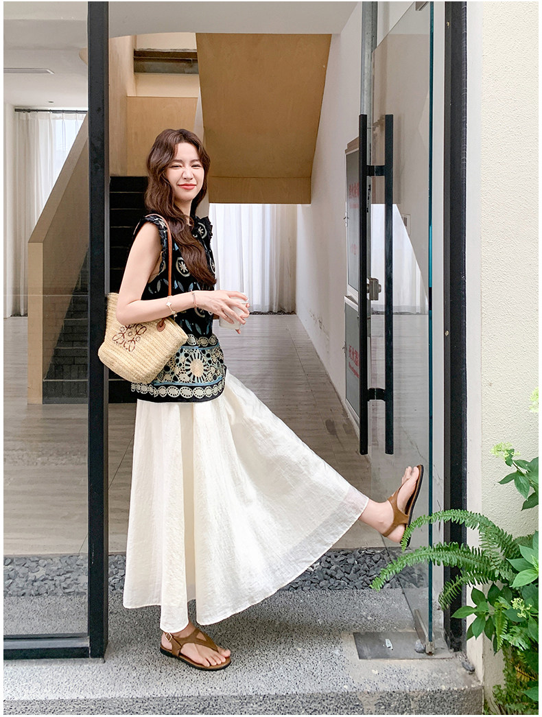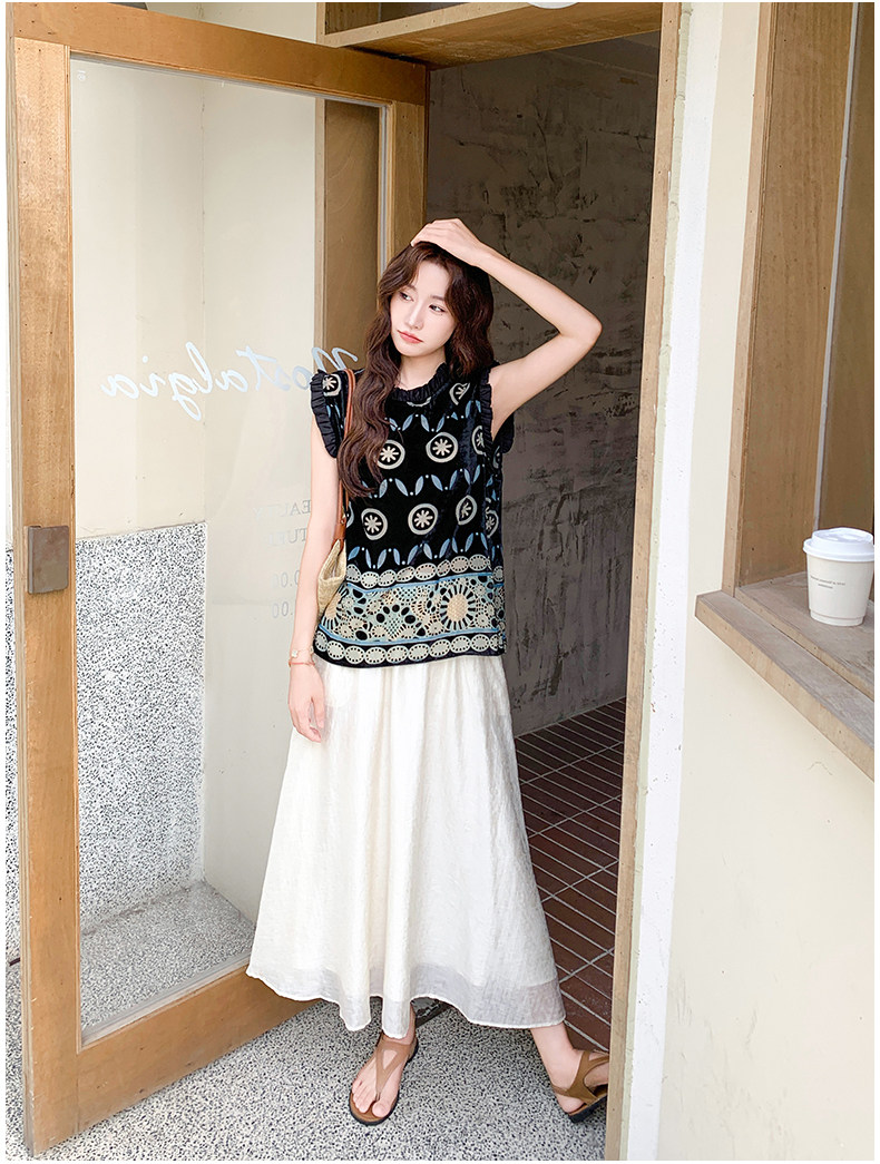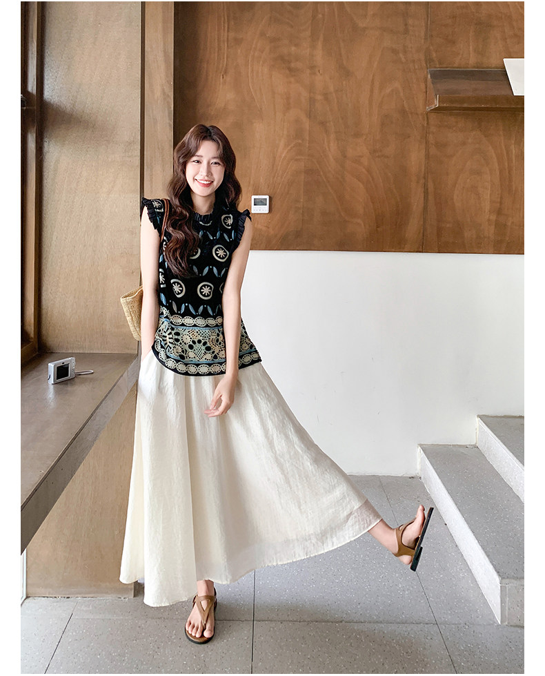 【商品名】2点セット!【ボトムス】高級感あふれるエスニックジャカードトップス+スカート 上下セット|夏の気品ある大人コーデ【SHシリーズ】