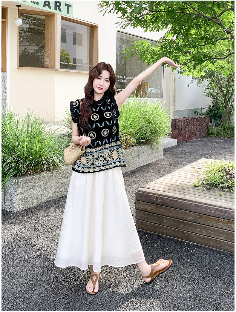 2点セット!【セットアップ】高級感あふれるエスニックジャカードトップス+スカート 上下セット|夏の気品ある大人コーデ【SHシリーズ】