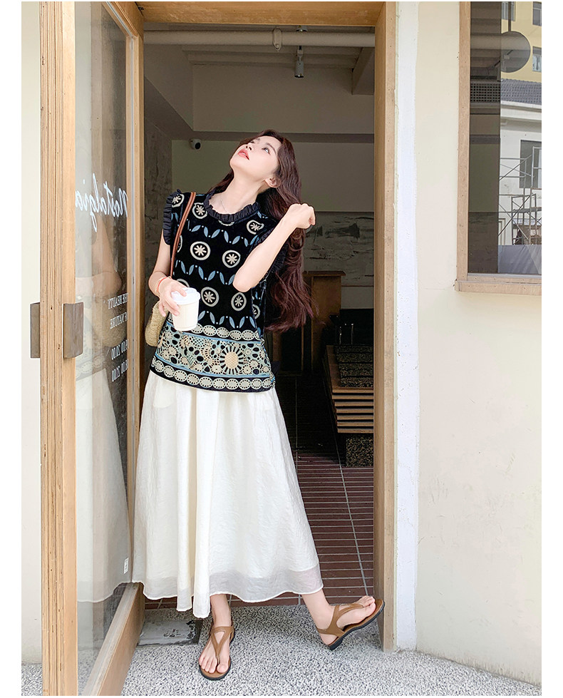🛍️ 予約殺到!【ワンピース】 【7~15日内発送】透かし彫り カジュアル フィッシュテイルスカート 半袖 ワンピース【JZシリーズ】