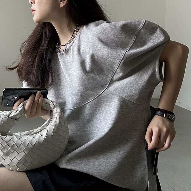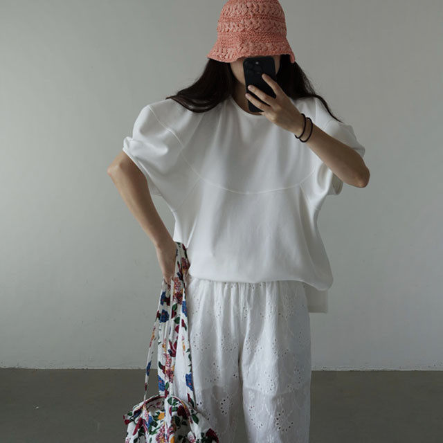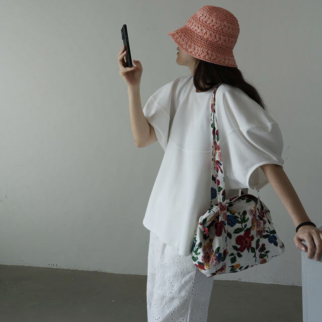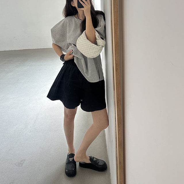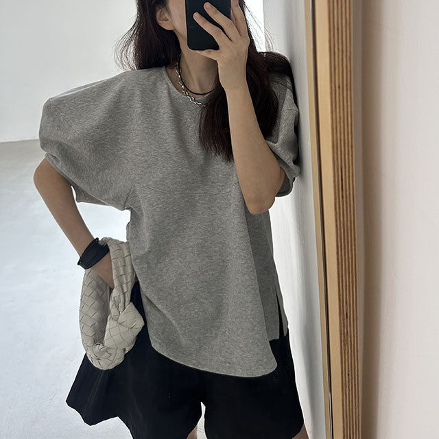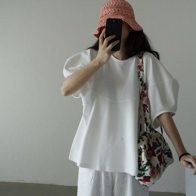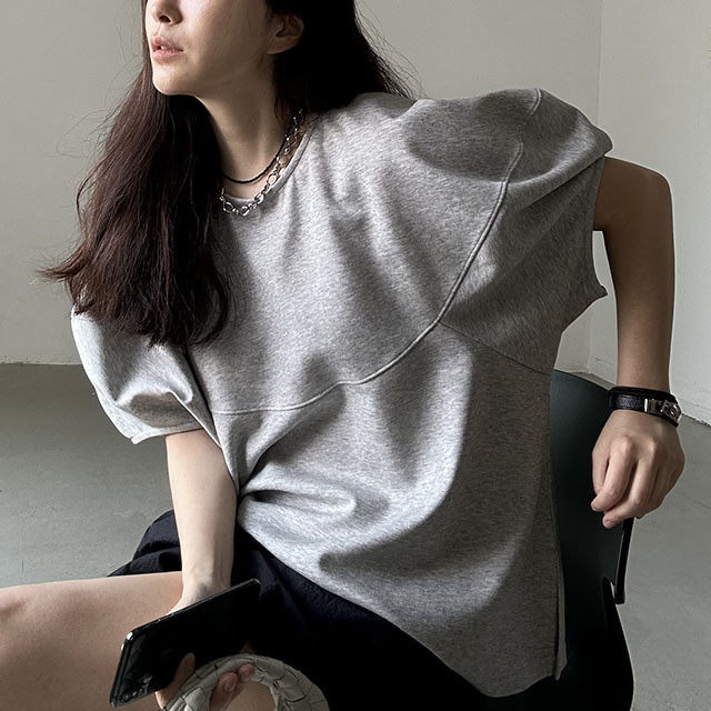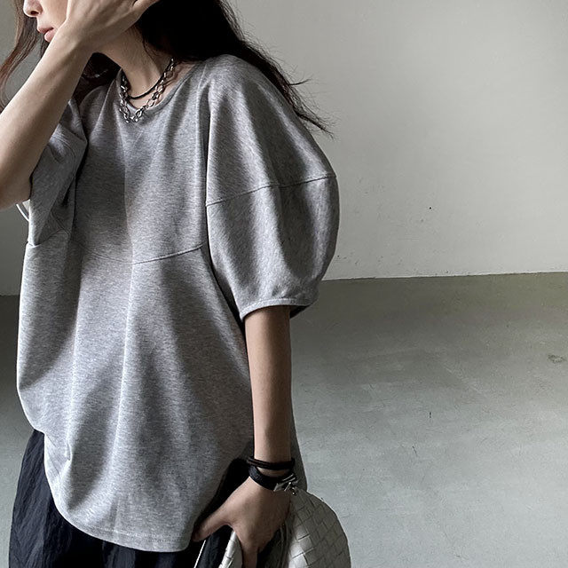 【トップス】【10~15日内発送】デザイン性 ゆったり バルーンスリーブ 個性派 Tシャツ レディース 夏 ヴィンテージ風 カジュアル 着回し 無地