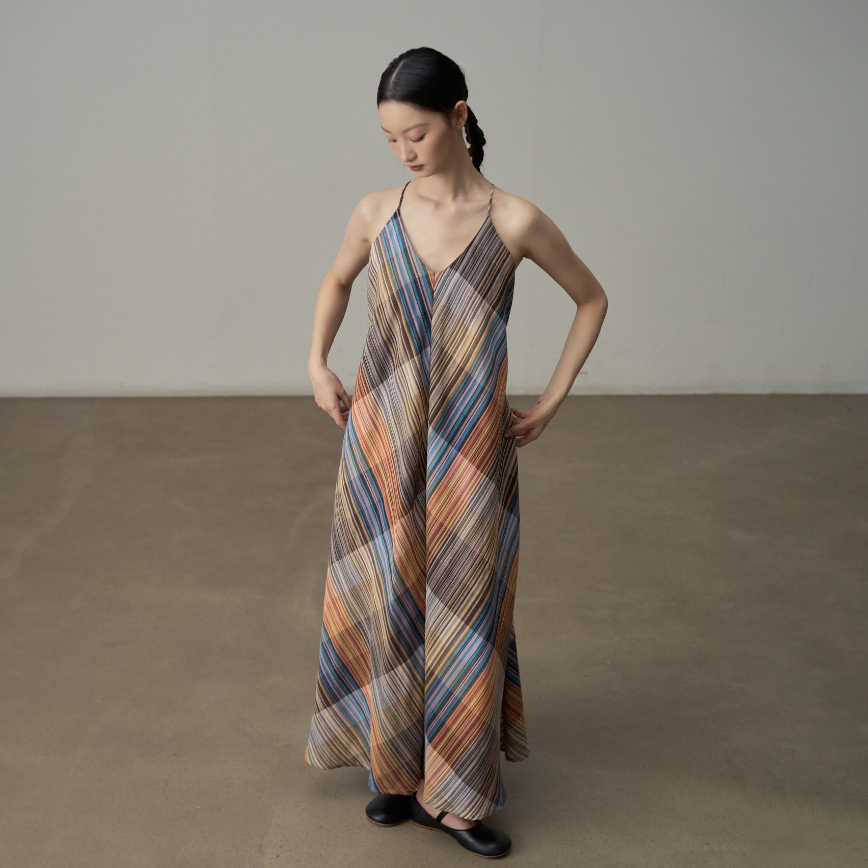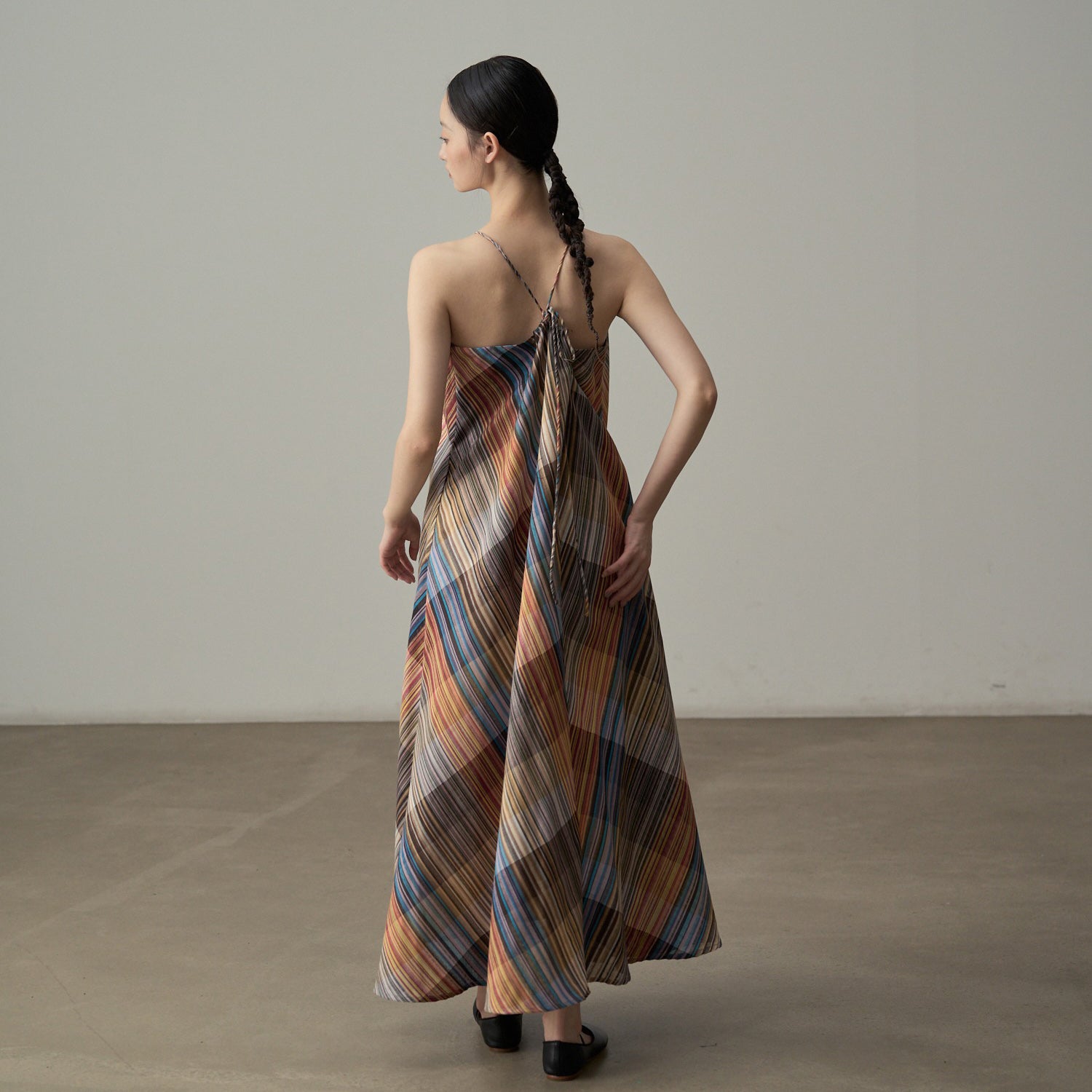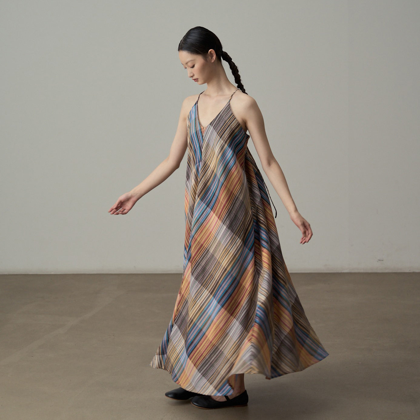 【ワンピース】フレンチヴィンテージ風 ロマンチック カラーヤーンチェック柄 ノースリーブ オフショルダーワンピース【SHシリーズ】
