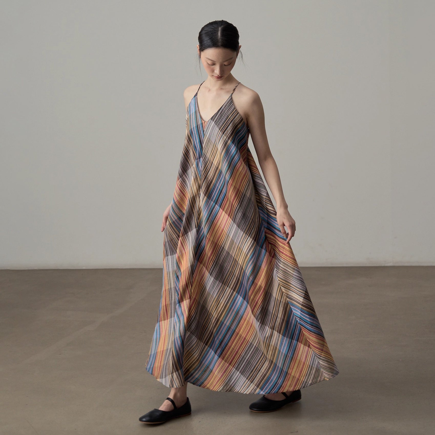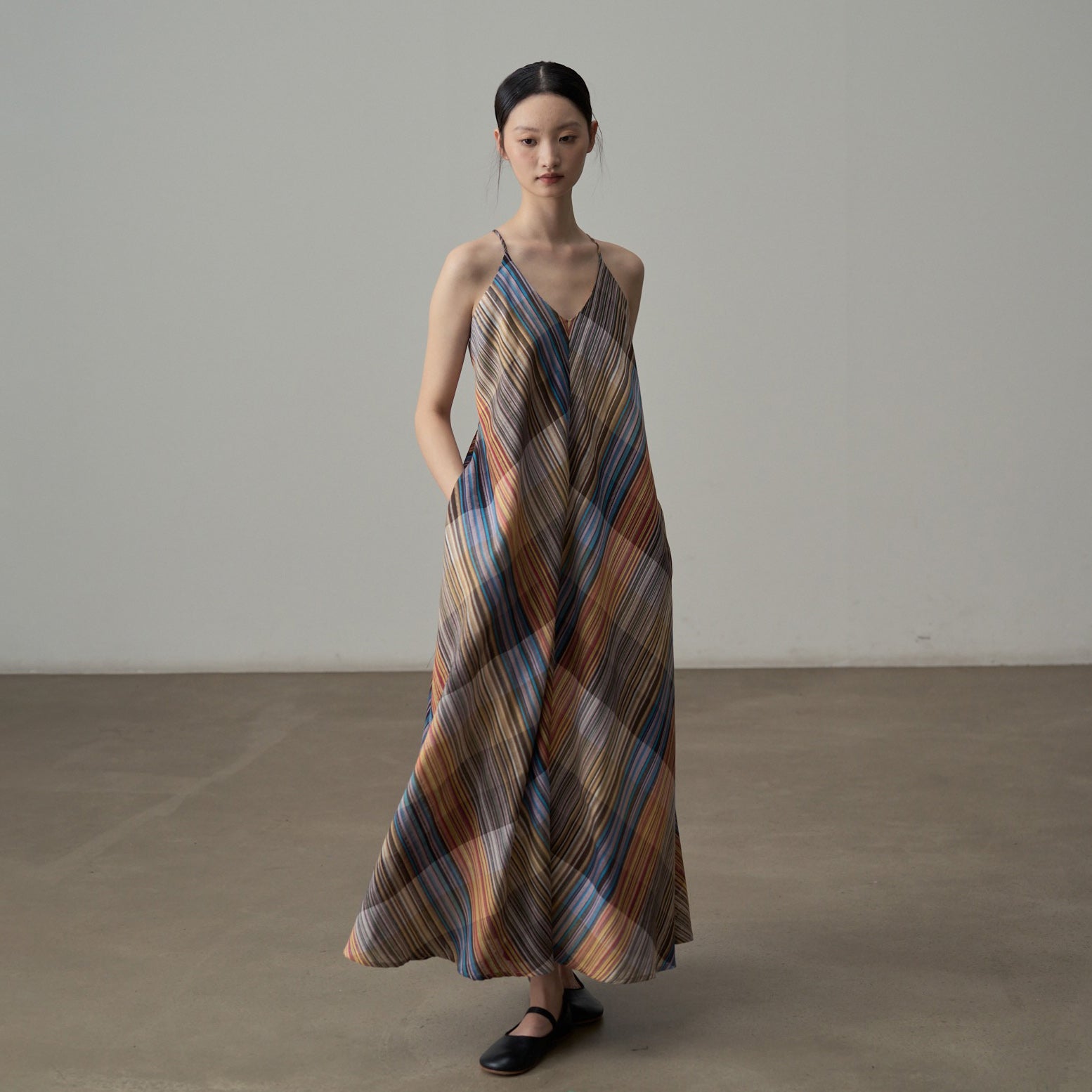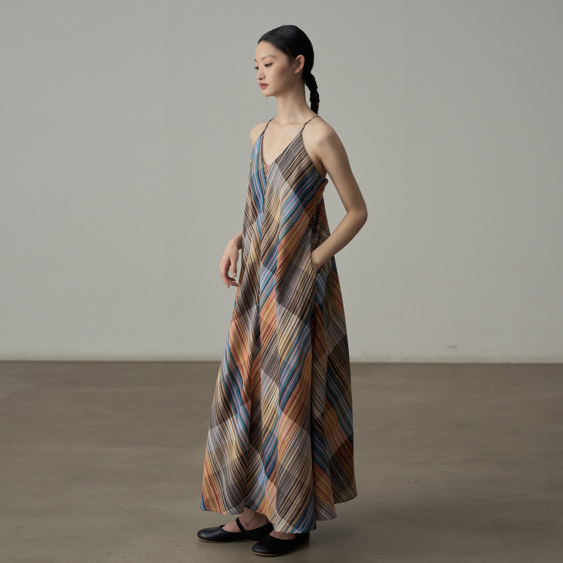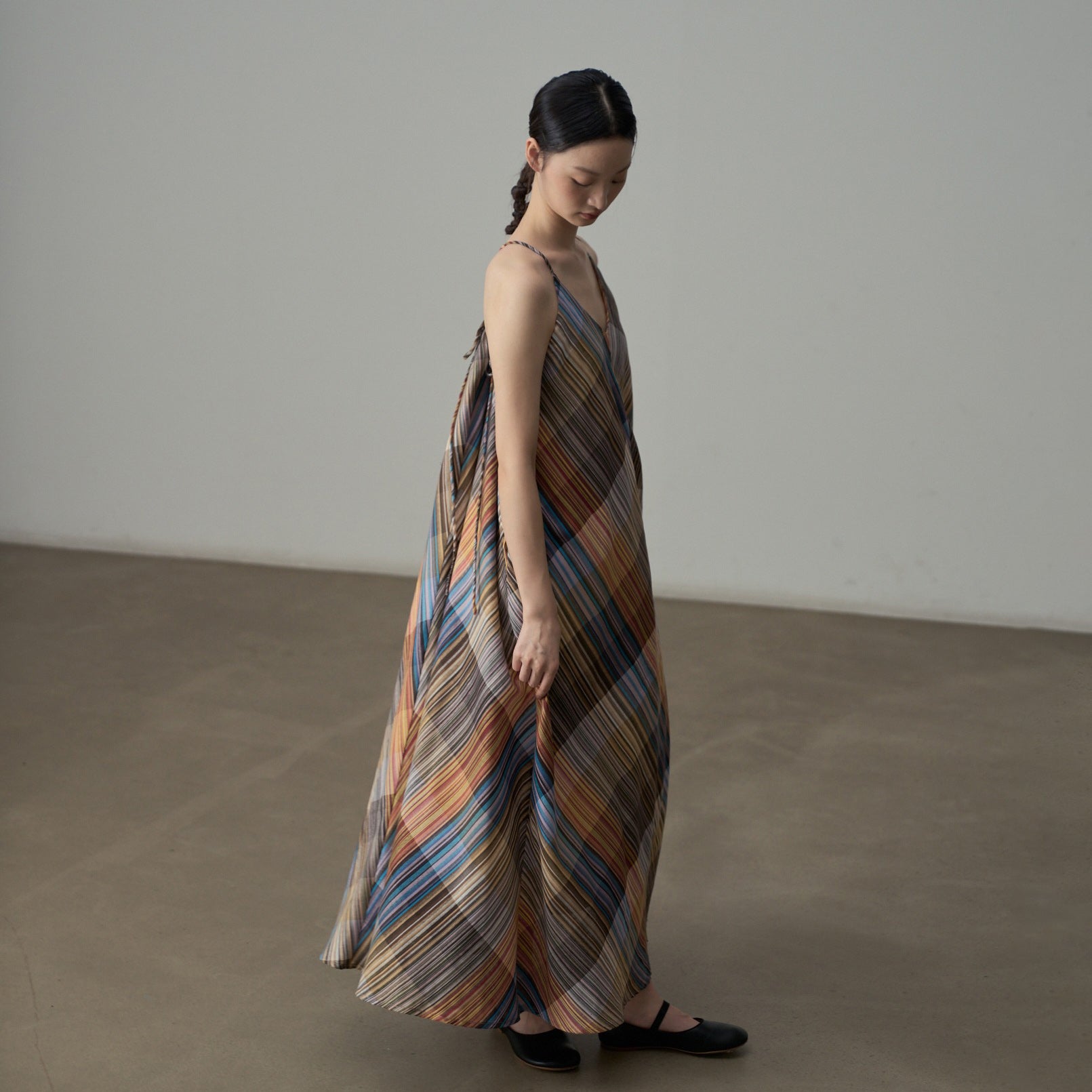 【ワンピース】フレンチヴィンテージ風 ロマンチック カラーヤーンチェック柄 ノースリーブ オフショルダーワンピース【SHシリーズ】