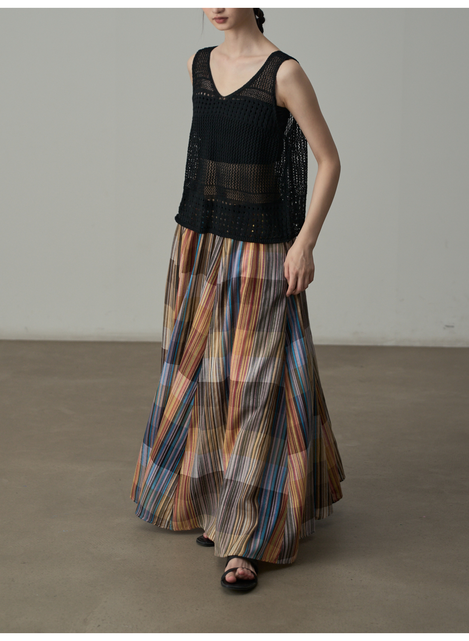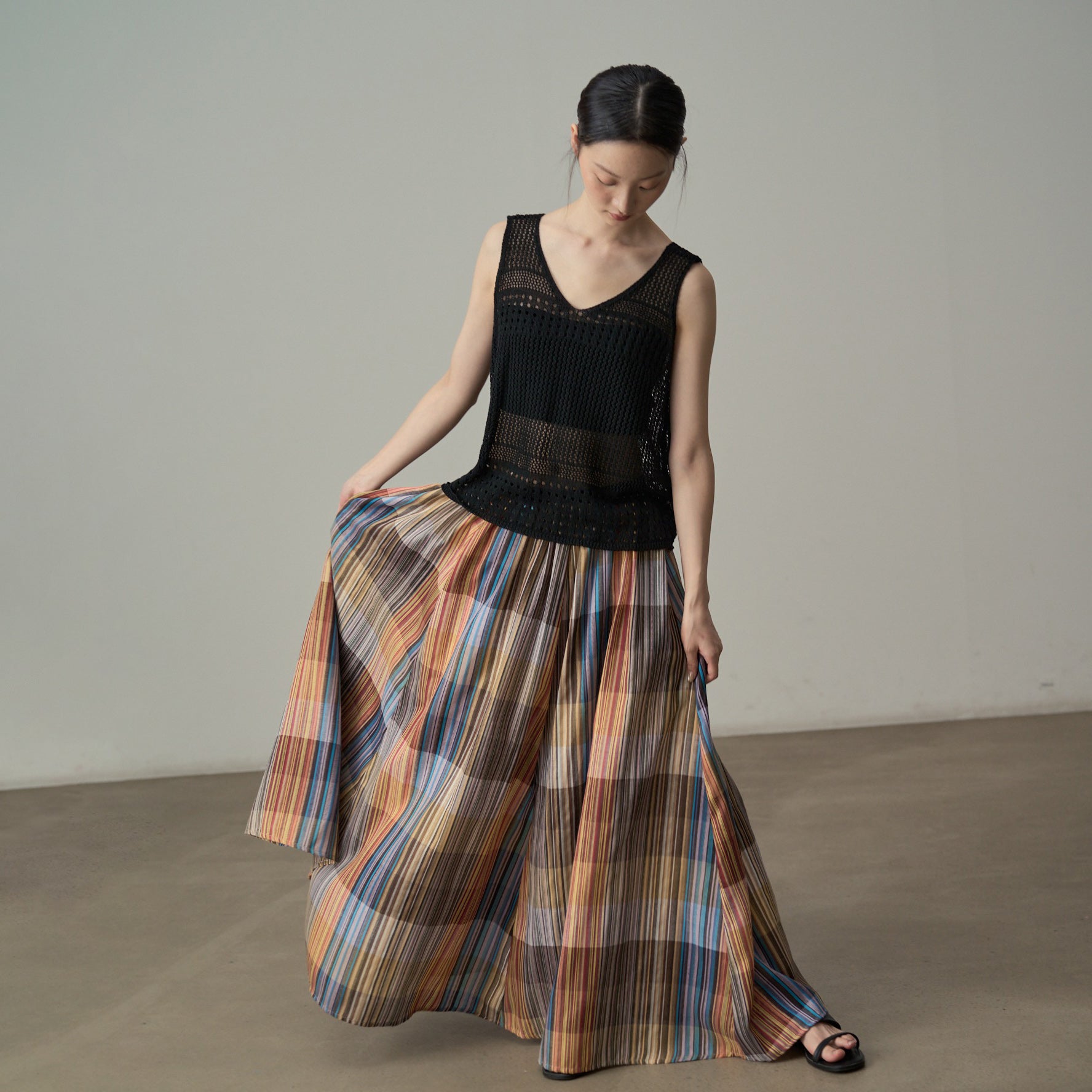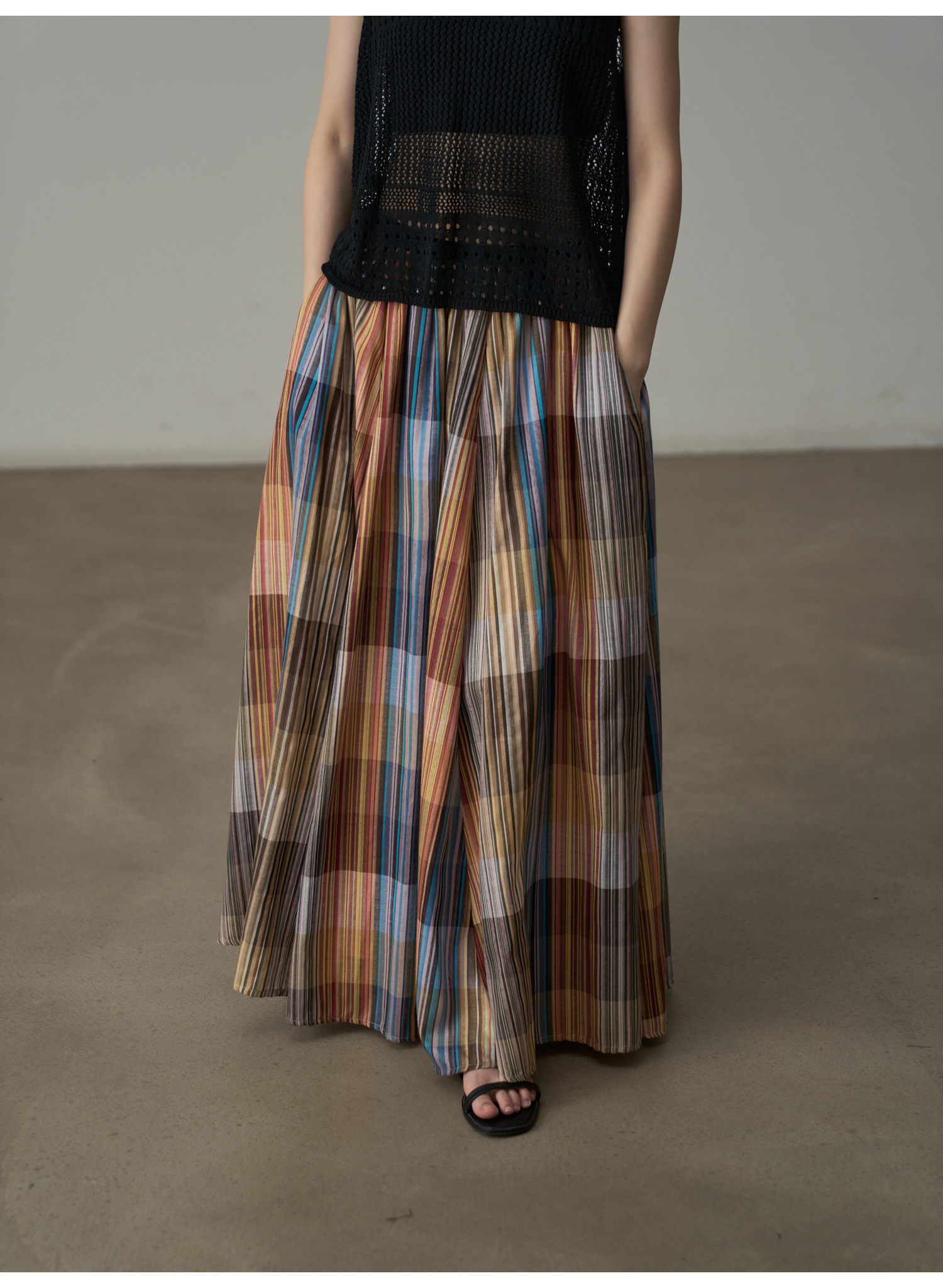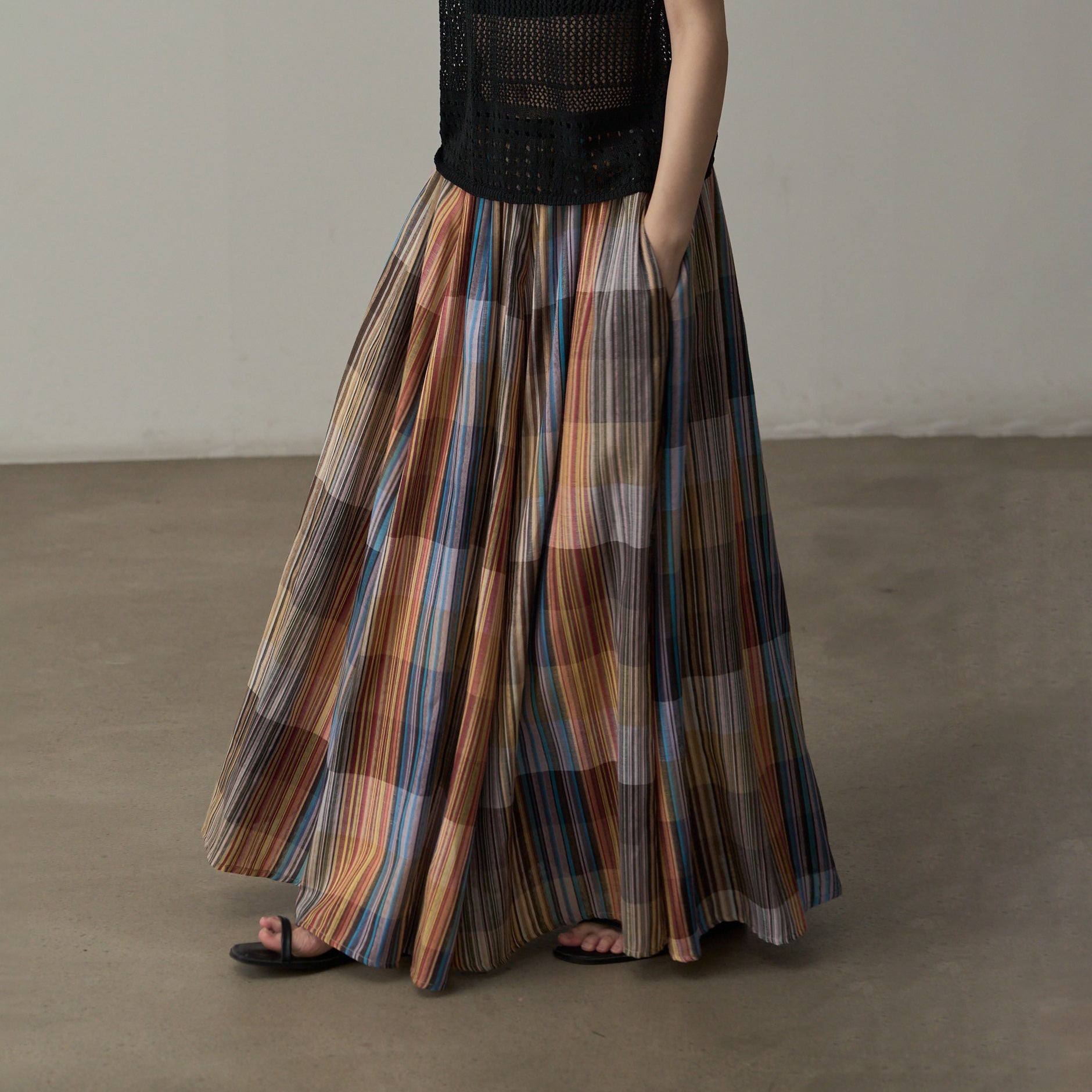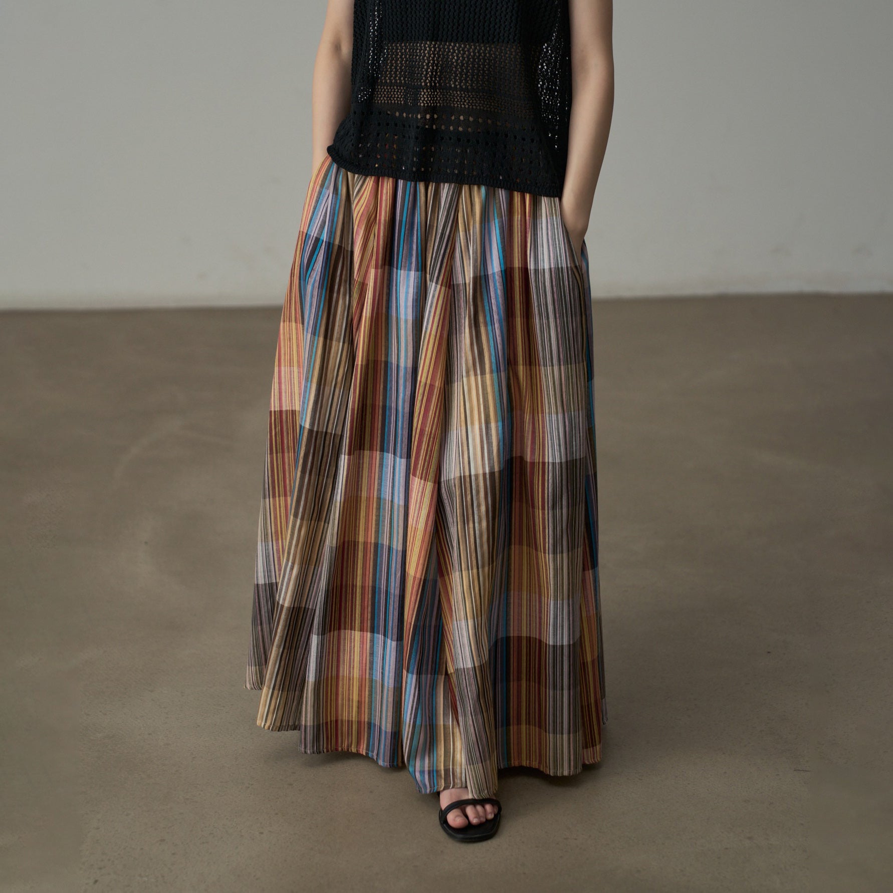 【ボトムス】レトロカラーチェック柄 フレアスカート 休日&デイリーにぴったりのリラックス感【SHシリーズ】