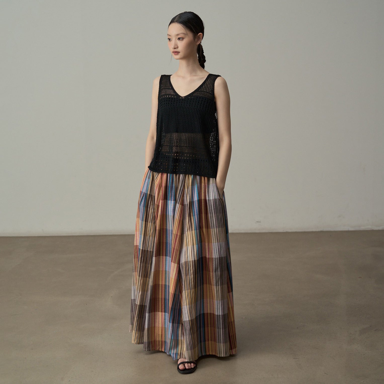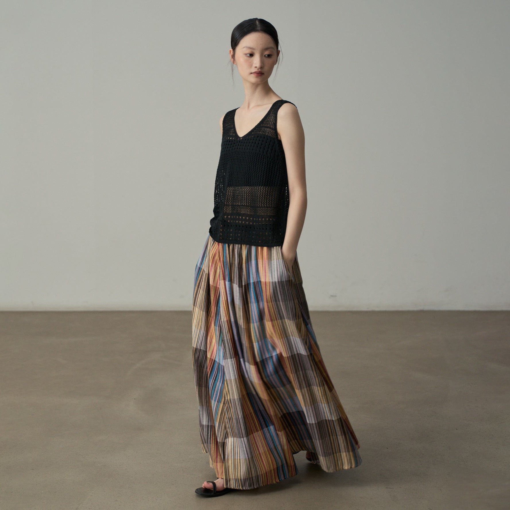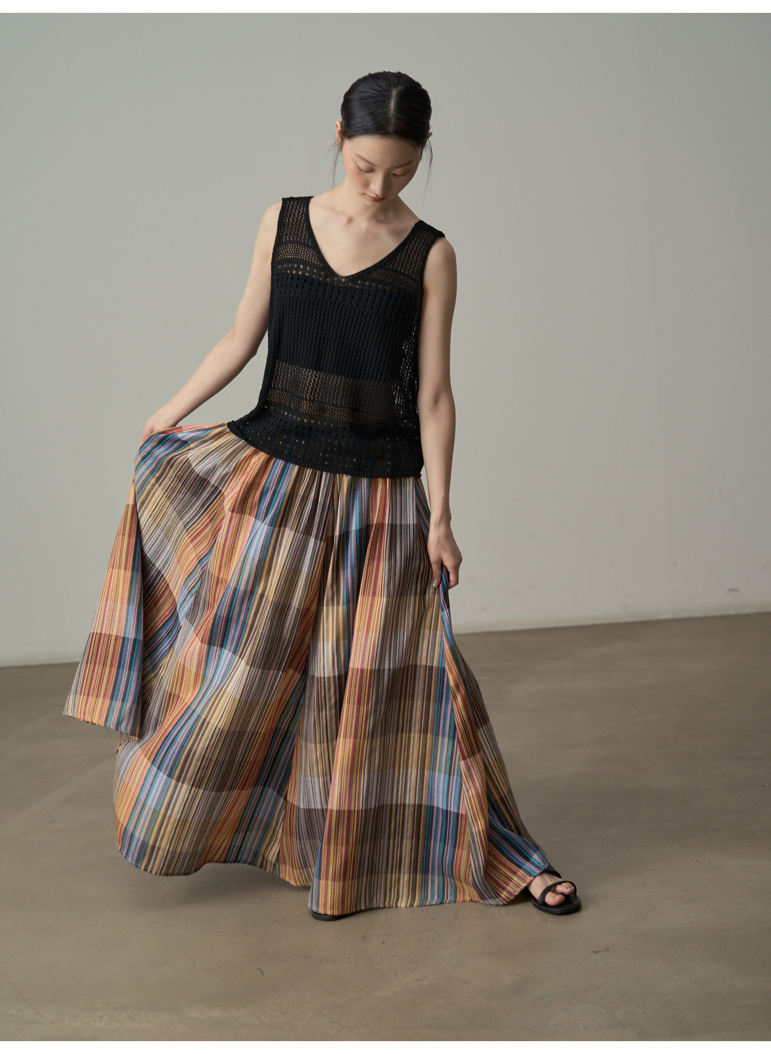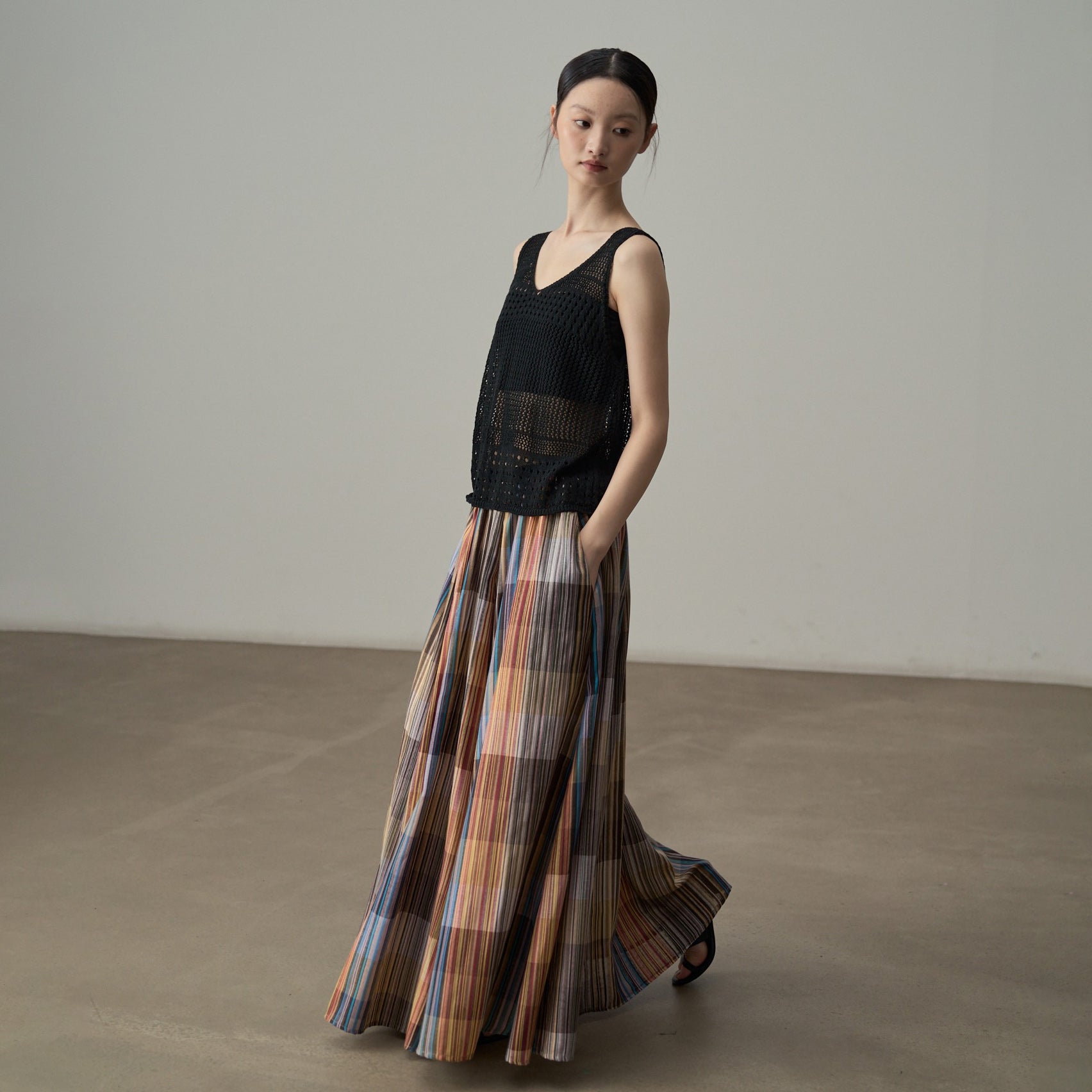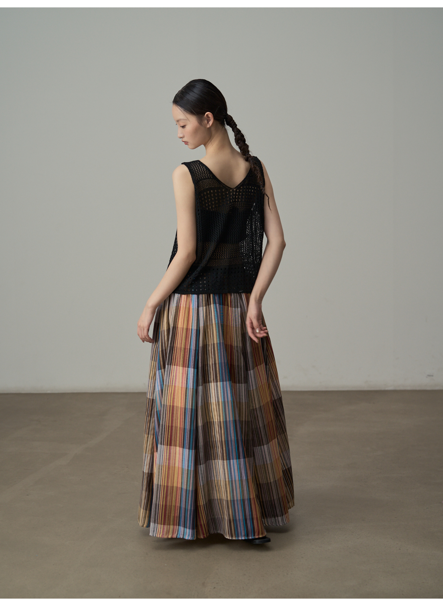 【ボトムス】レトロカラーチェック柄 フレアスカート 休日&デイリーにぴったりのリラックス感【SHシリーズ】