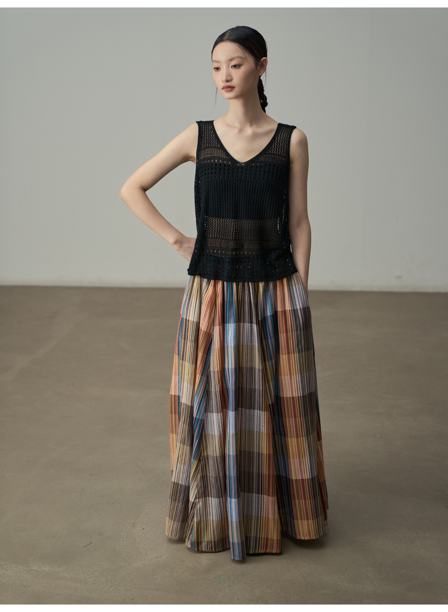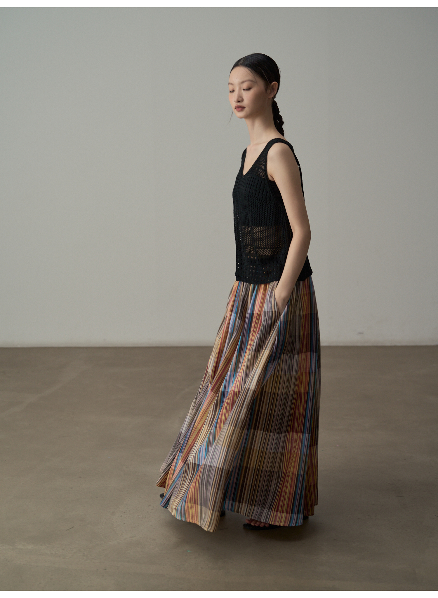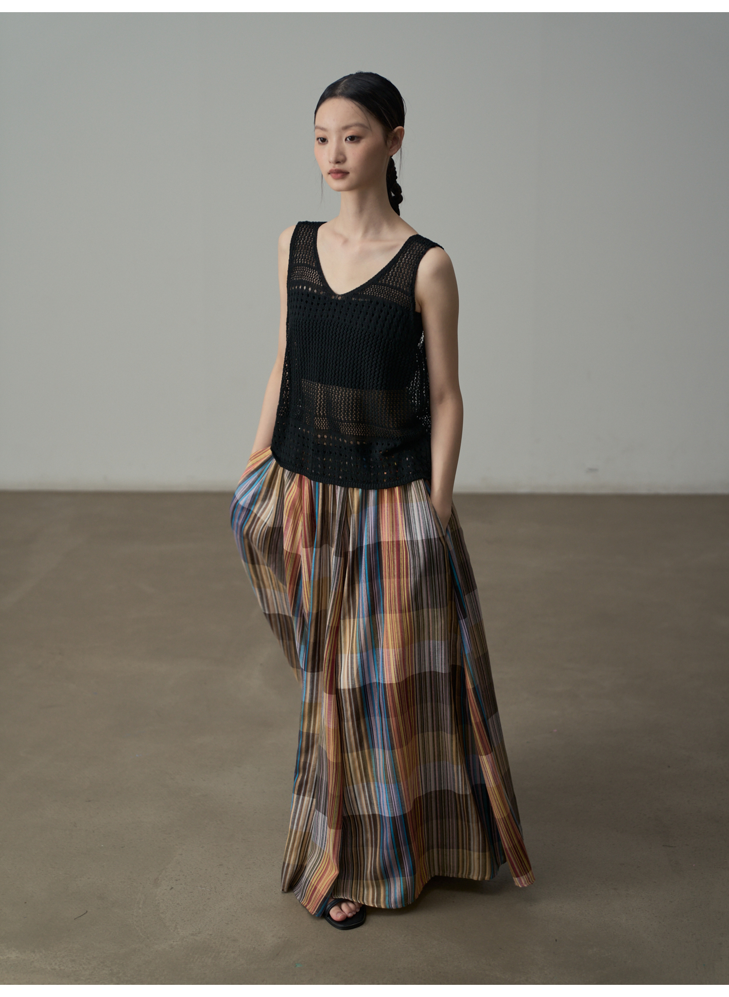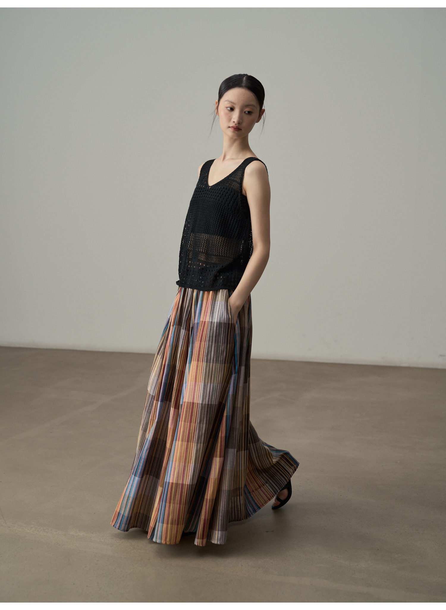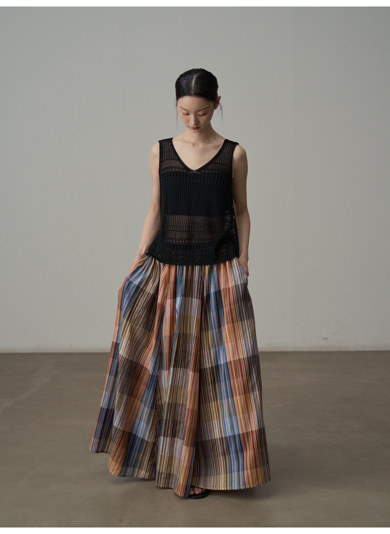 【ボトムス】レトロカラーチェック柄 フレアスカート 休日&デイリーにぴったりのリラックス感【SHシリーズ】