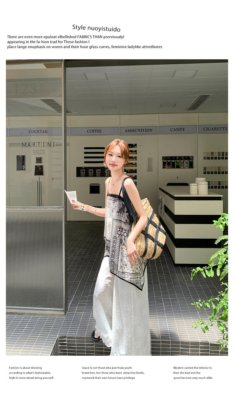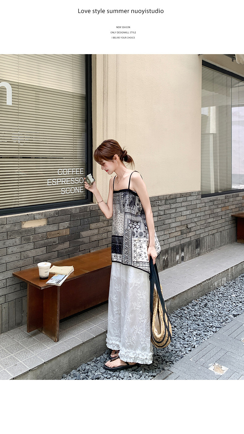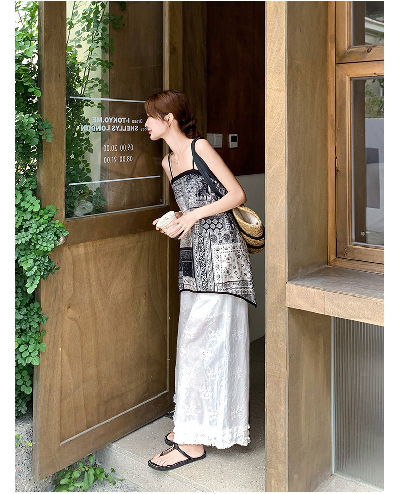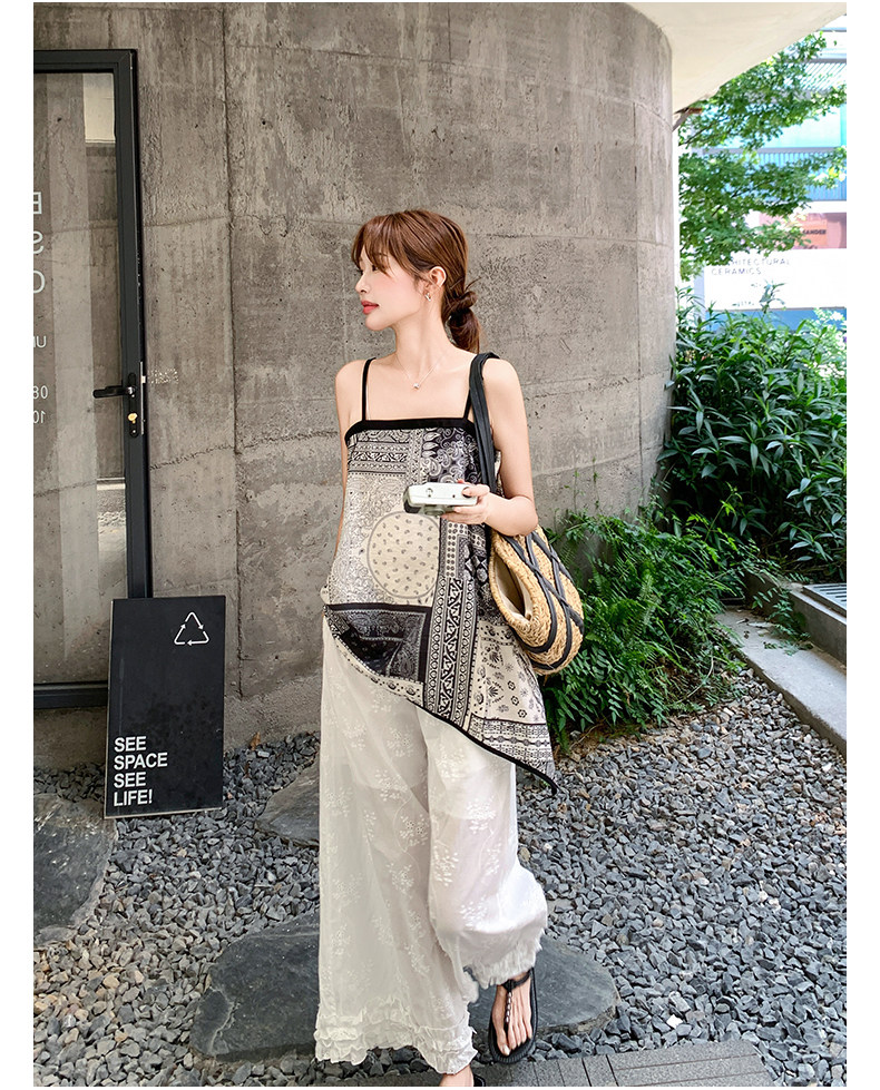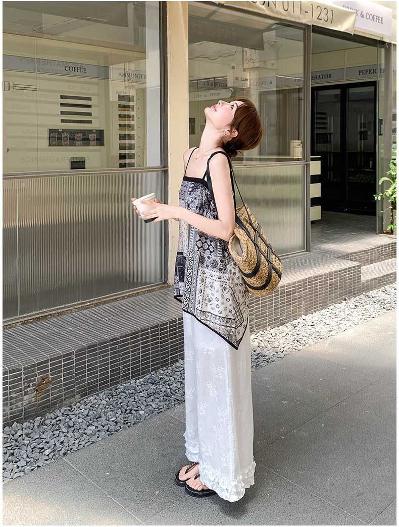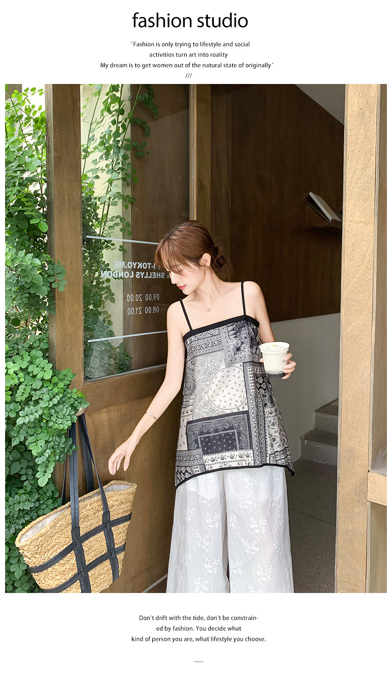 2点セット!【セットアップ】デザイン性抜群!エスニック風 花柄キャミ+刺繍ワイドパンツ上下セット 小洒落感たっぷり【SHシリーズ】