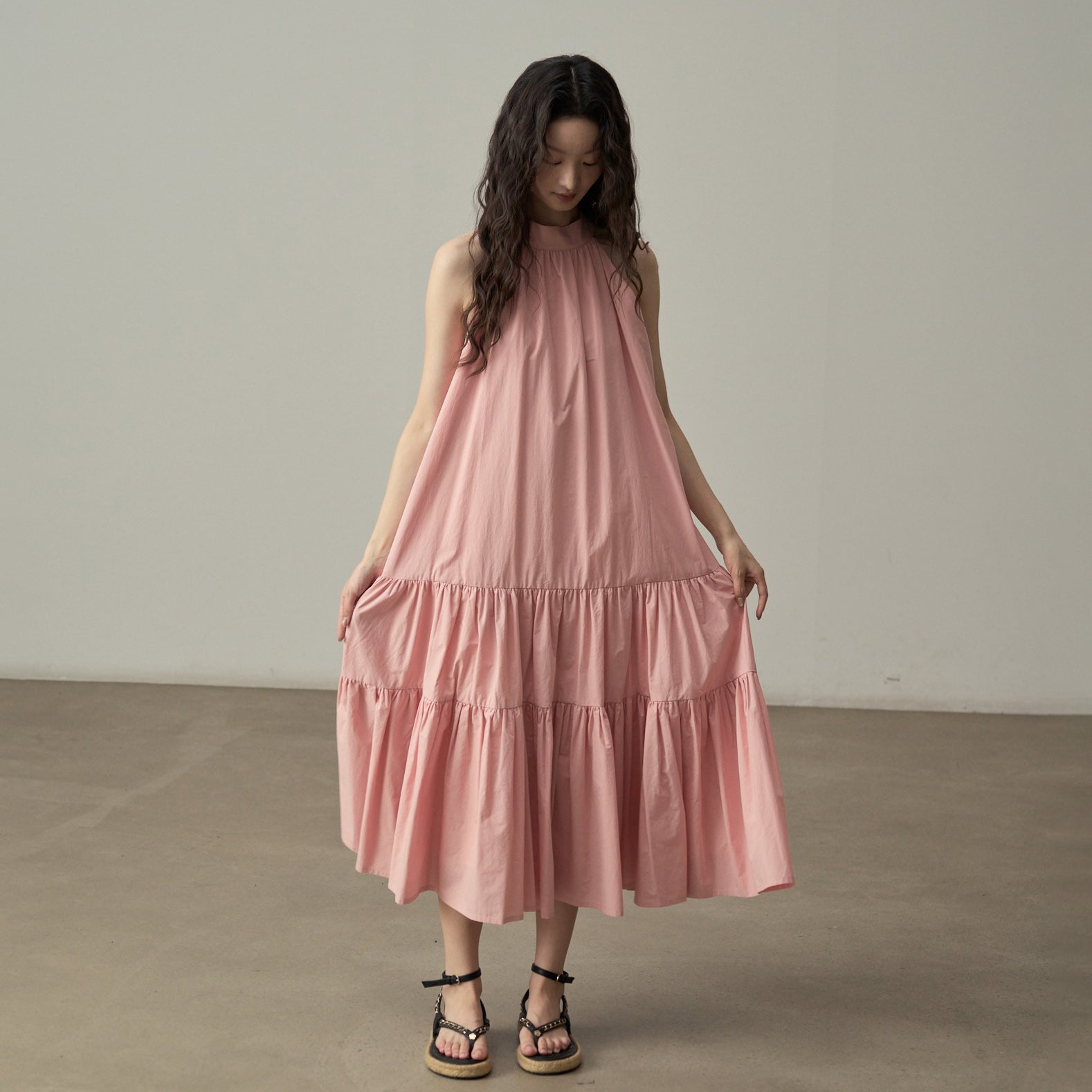 【ワンピース】フレンチエレガントなノースリーブキャミワンピース 夏のリゾートに◎ 体型カバー&細見え効果抜群【JZシリーズ】