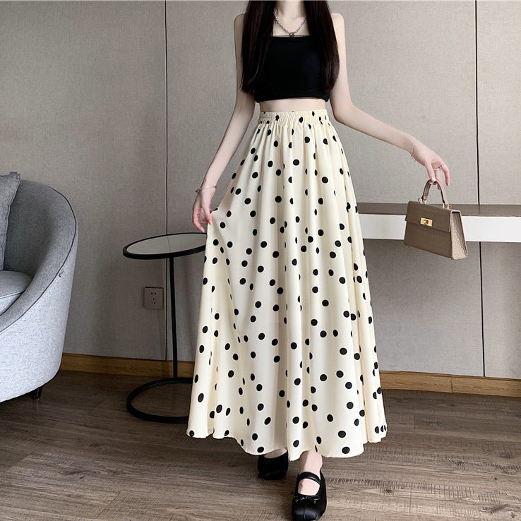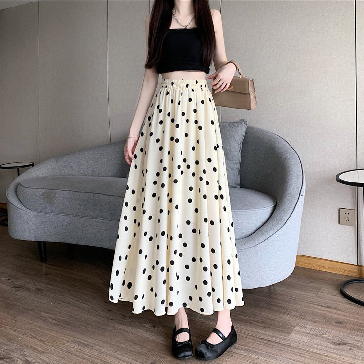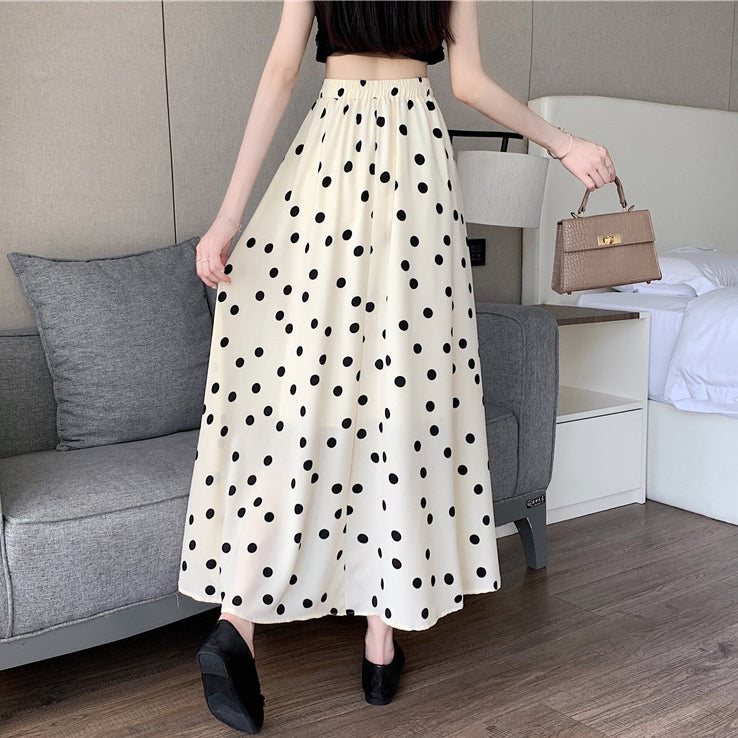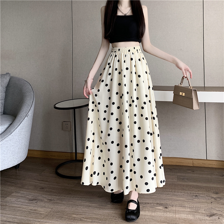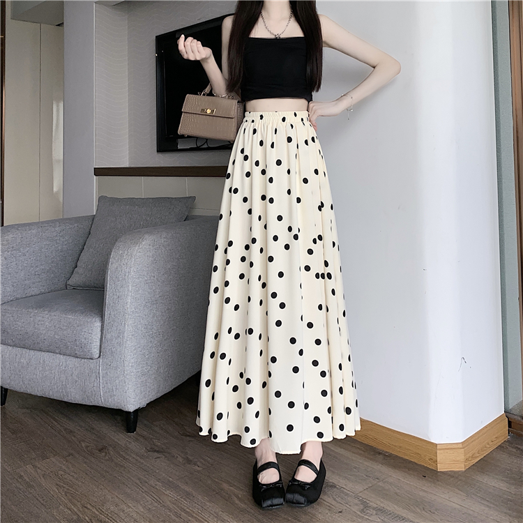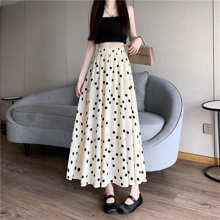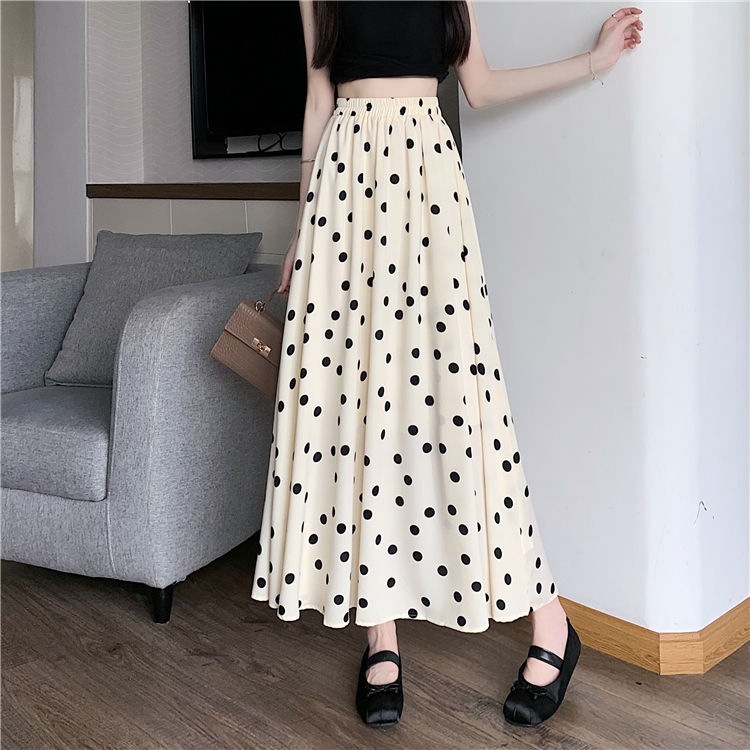 【商品名】【ボトムス】ドット柄シフォンロングスカート Aライン 体型カバー 大人可愛い 夏 【SHシリーズ】