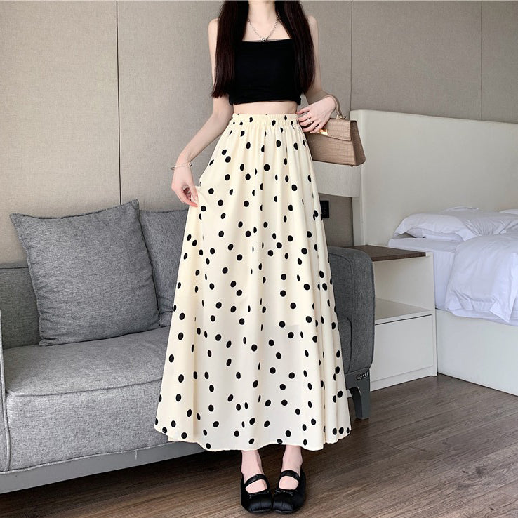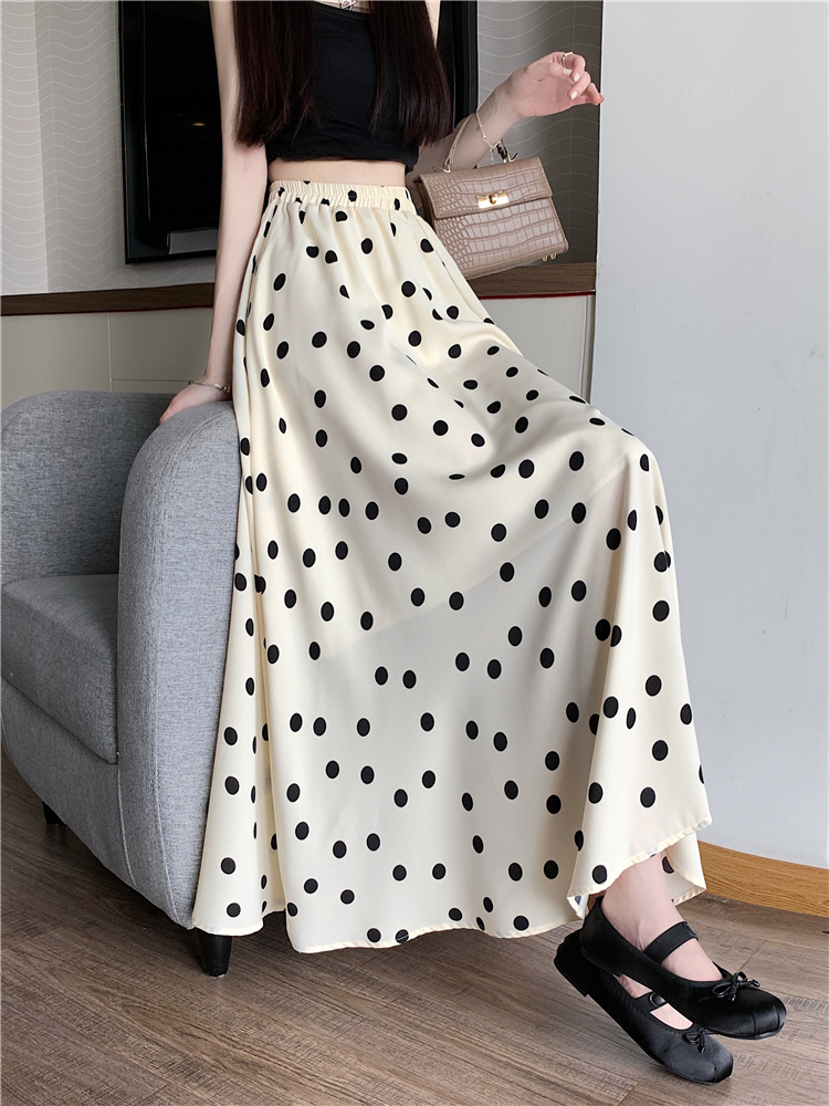【ボトムス】ドット柄シフォンロングスカート Aライン 体型カバー 大人可愛い 夏 【SHシリーズ】