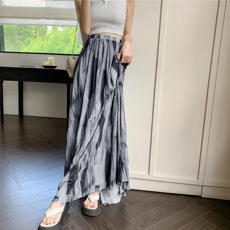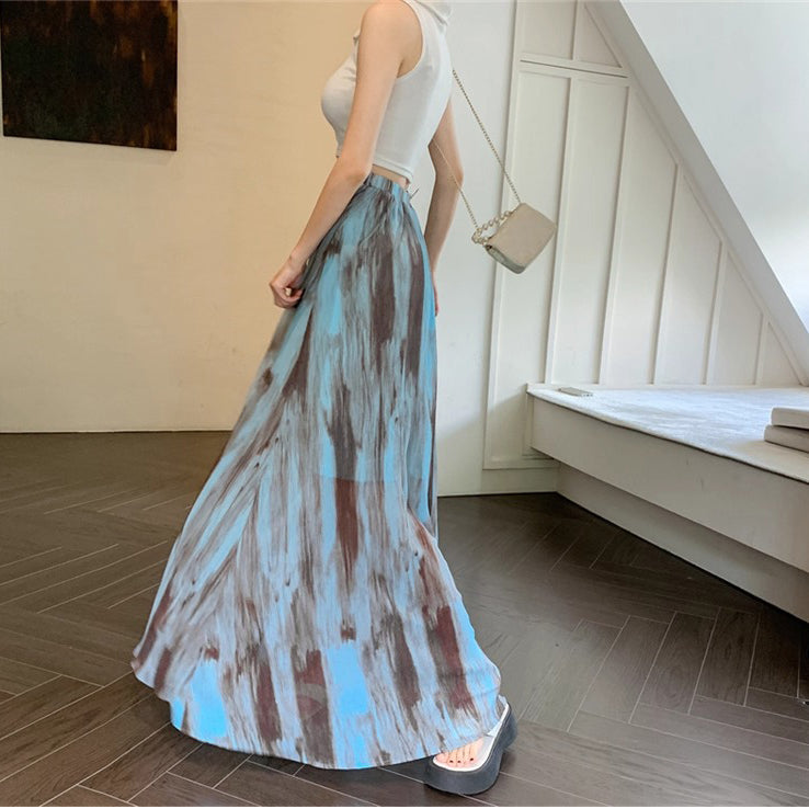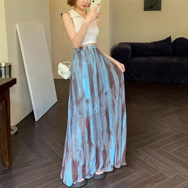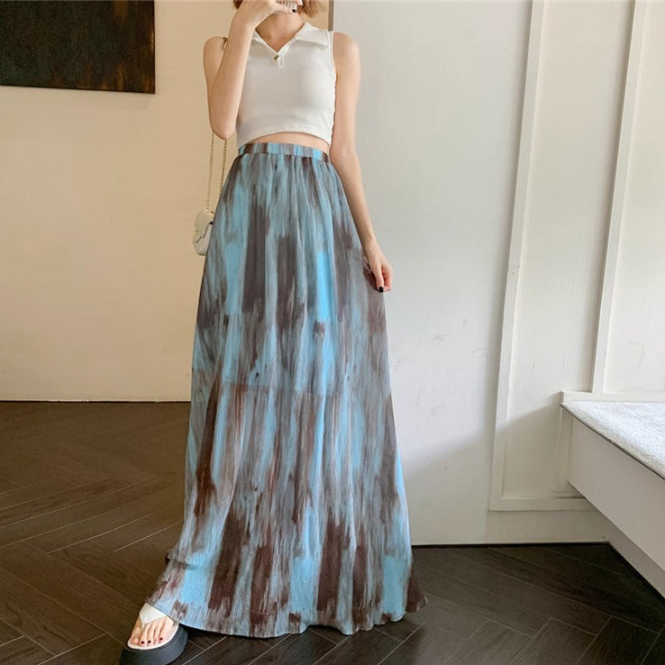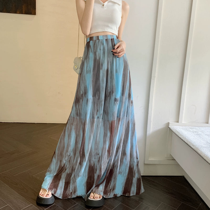 【ボトムス】美シルエット映え ハイウエスト花柄ロングスカート Aライン&体型カバー【SHシリーズ】