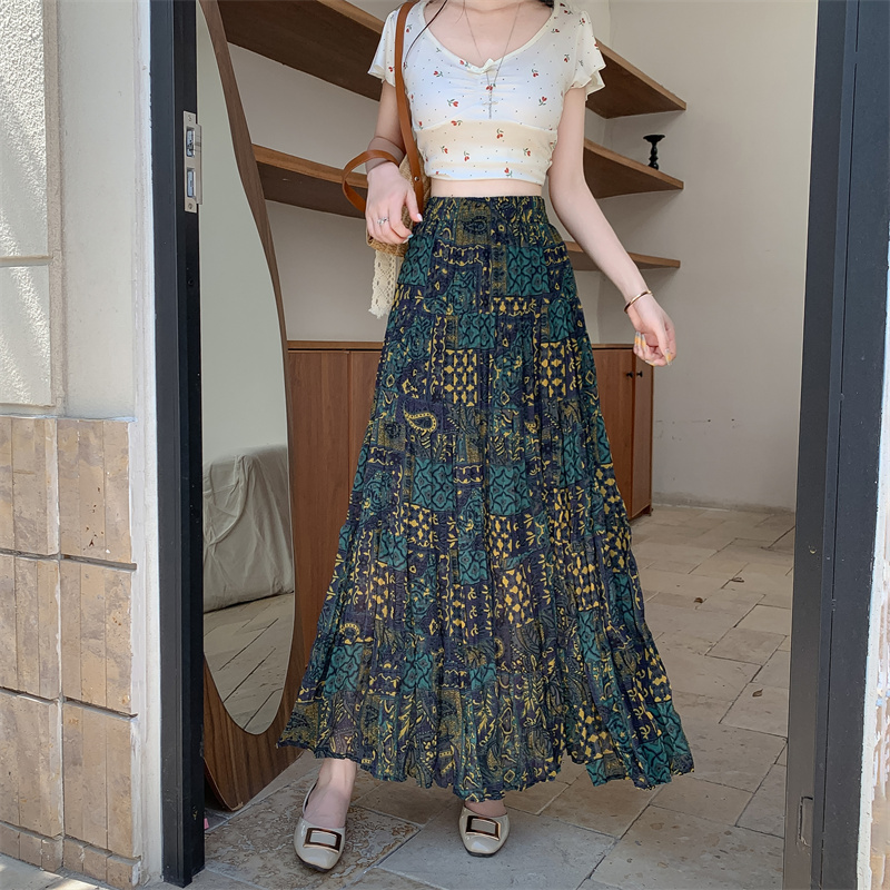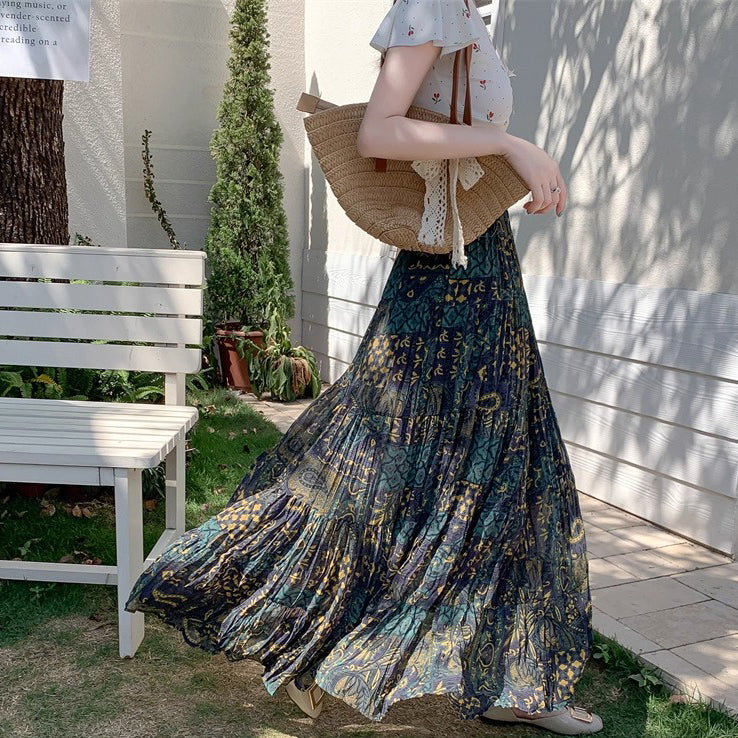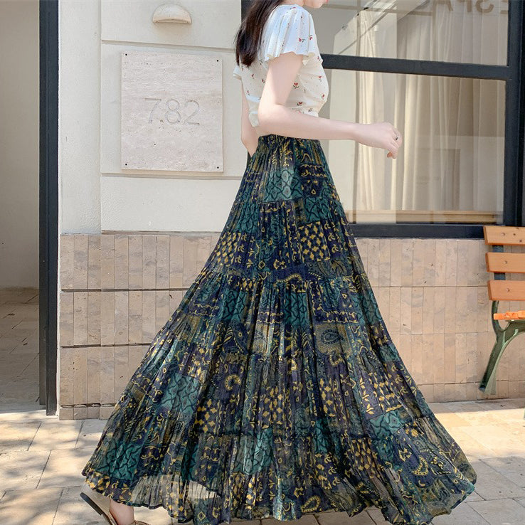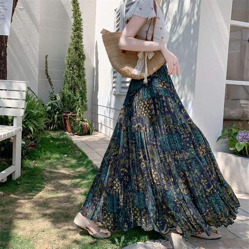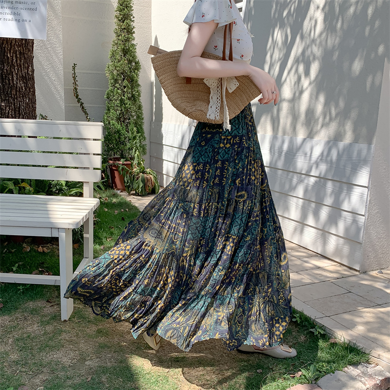 【ボトムス】ボヘミアン風 シフォンプリーツスカート レディース 夏 Aライン 体型カバー 旅行・リゾートにも最適【SHシリーズ】