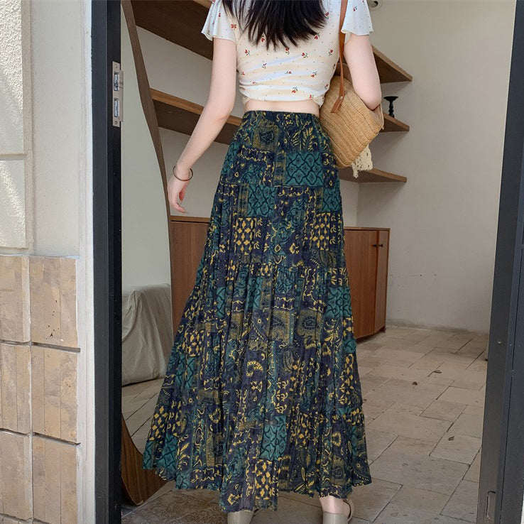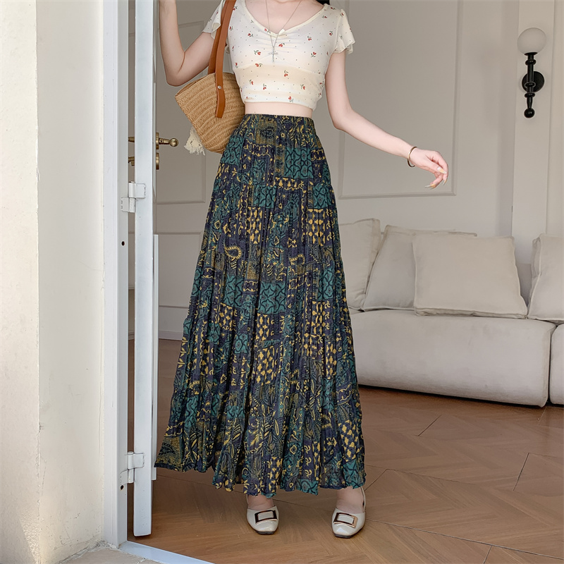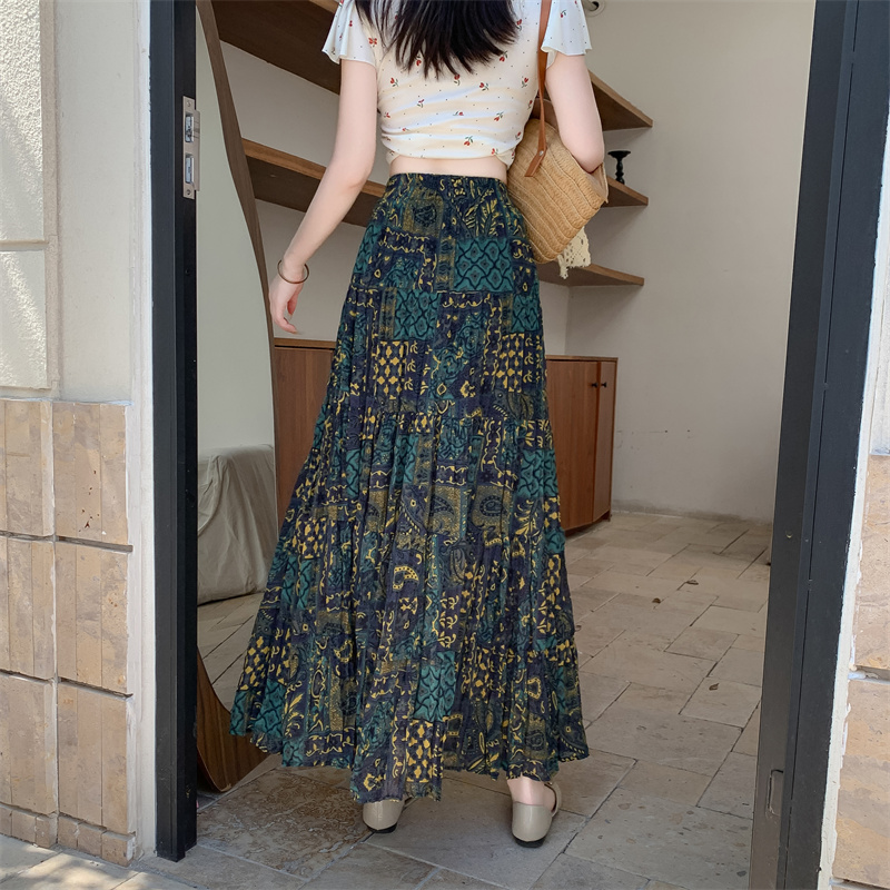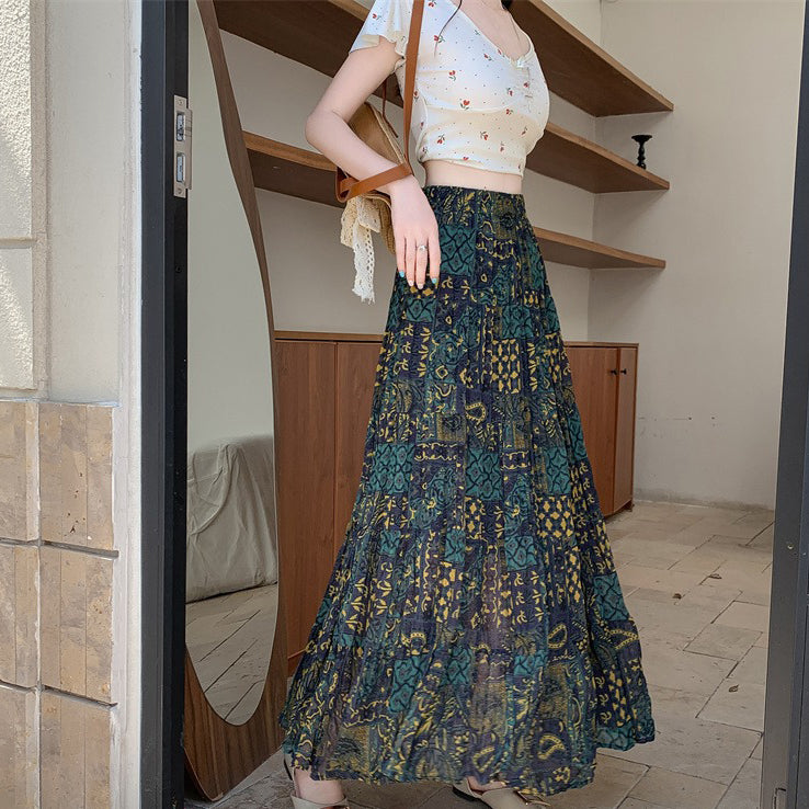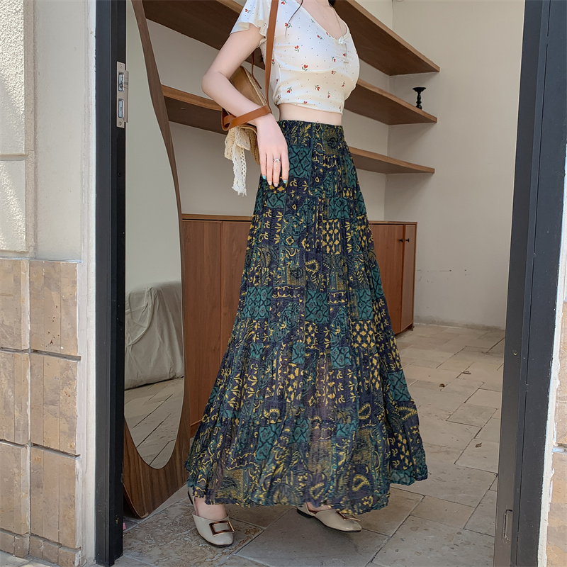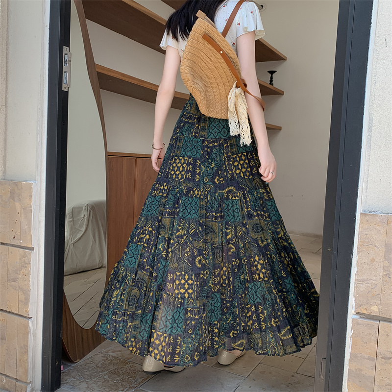 【ボトムス】ボヘミアン風 シフォンプリーツスカート レディース 夏 Aライン 体型カバー 旅行・リゾートにも最適【SHシリーズ】