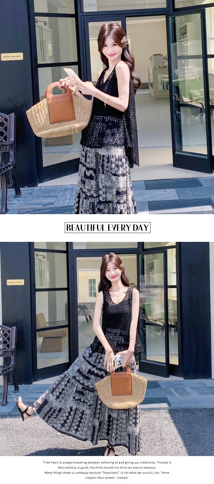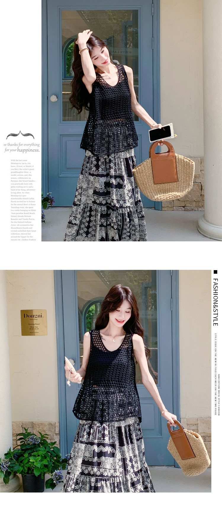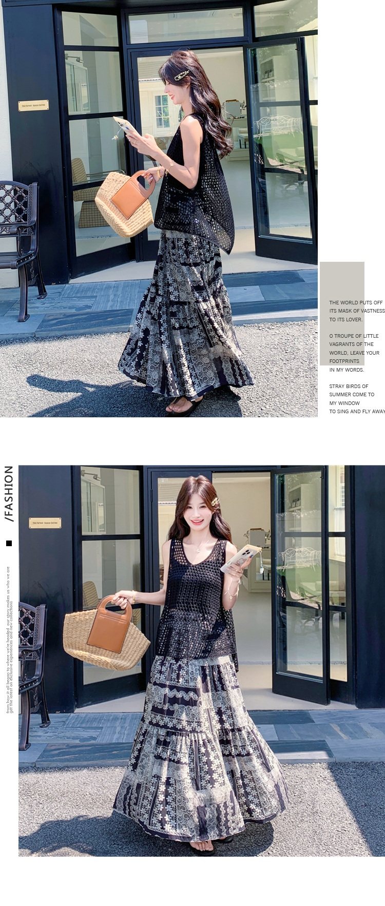 🛍️ 予約殺到!【ワンピース】 【7~15日内発送】透かし彫り カジュアル フィッシュテイルスカート 半袖 ワンピース【JZシリーズ】