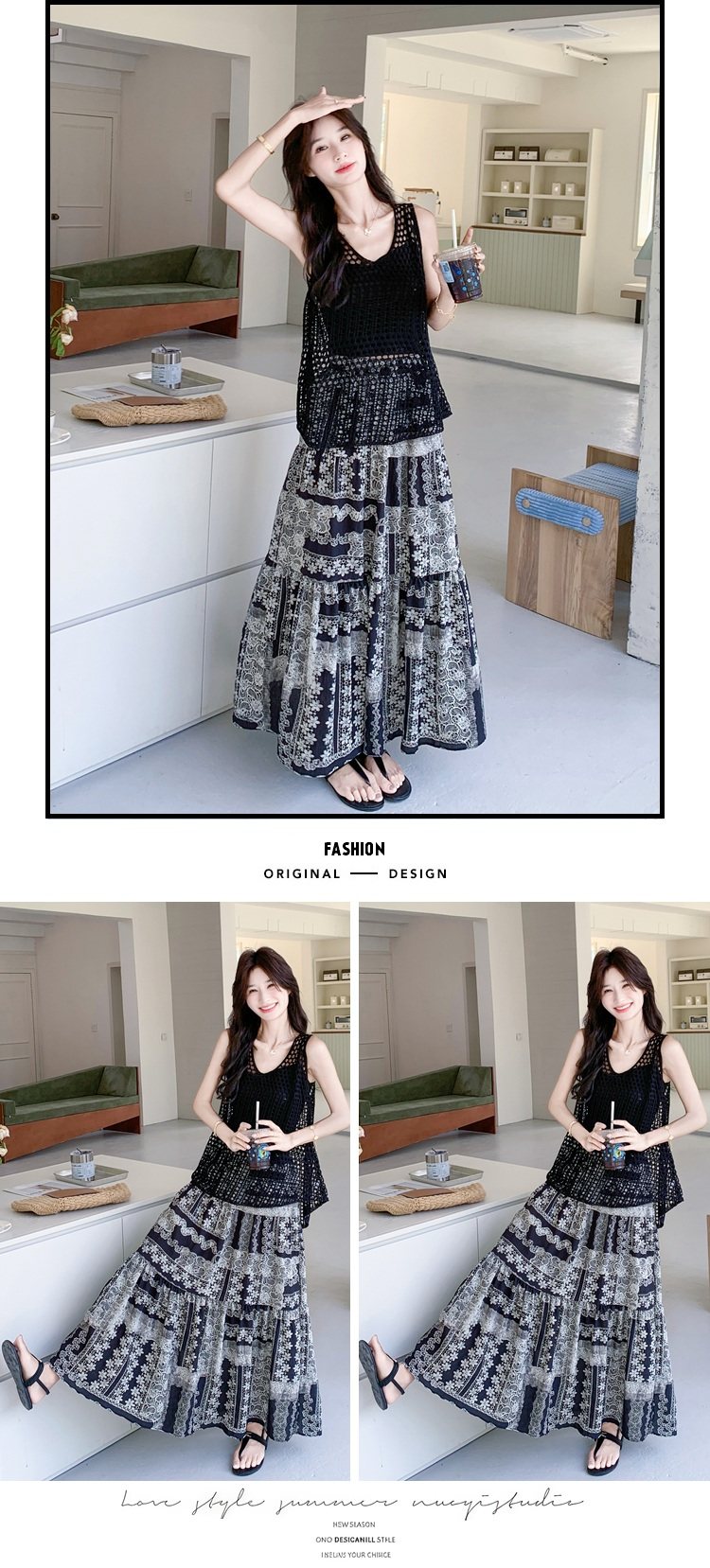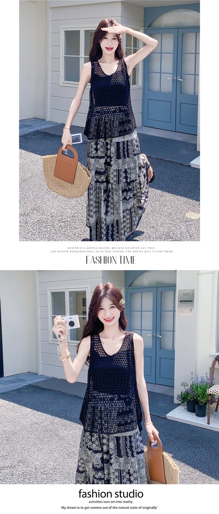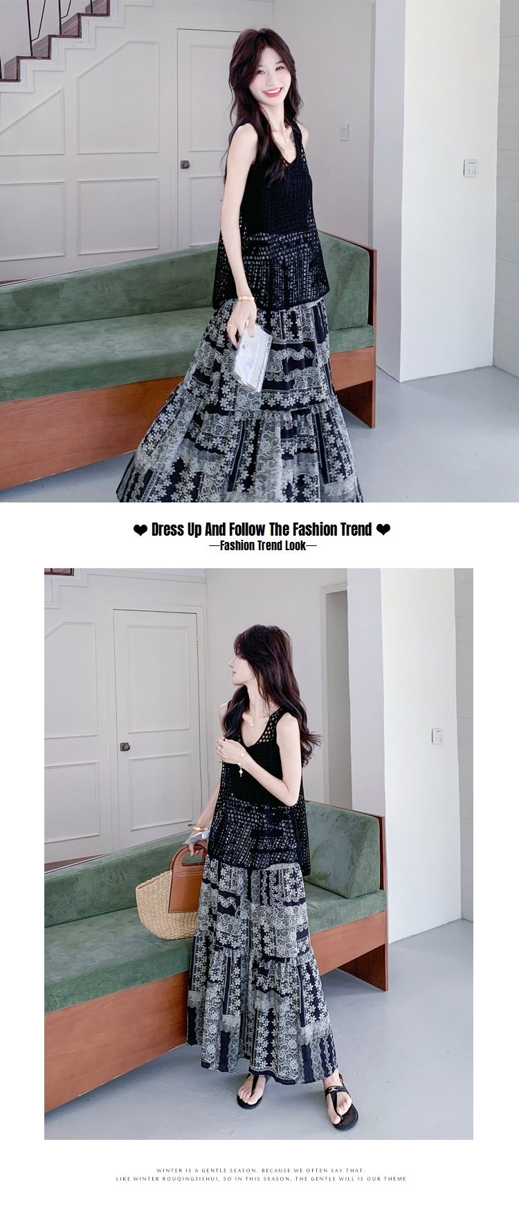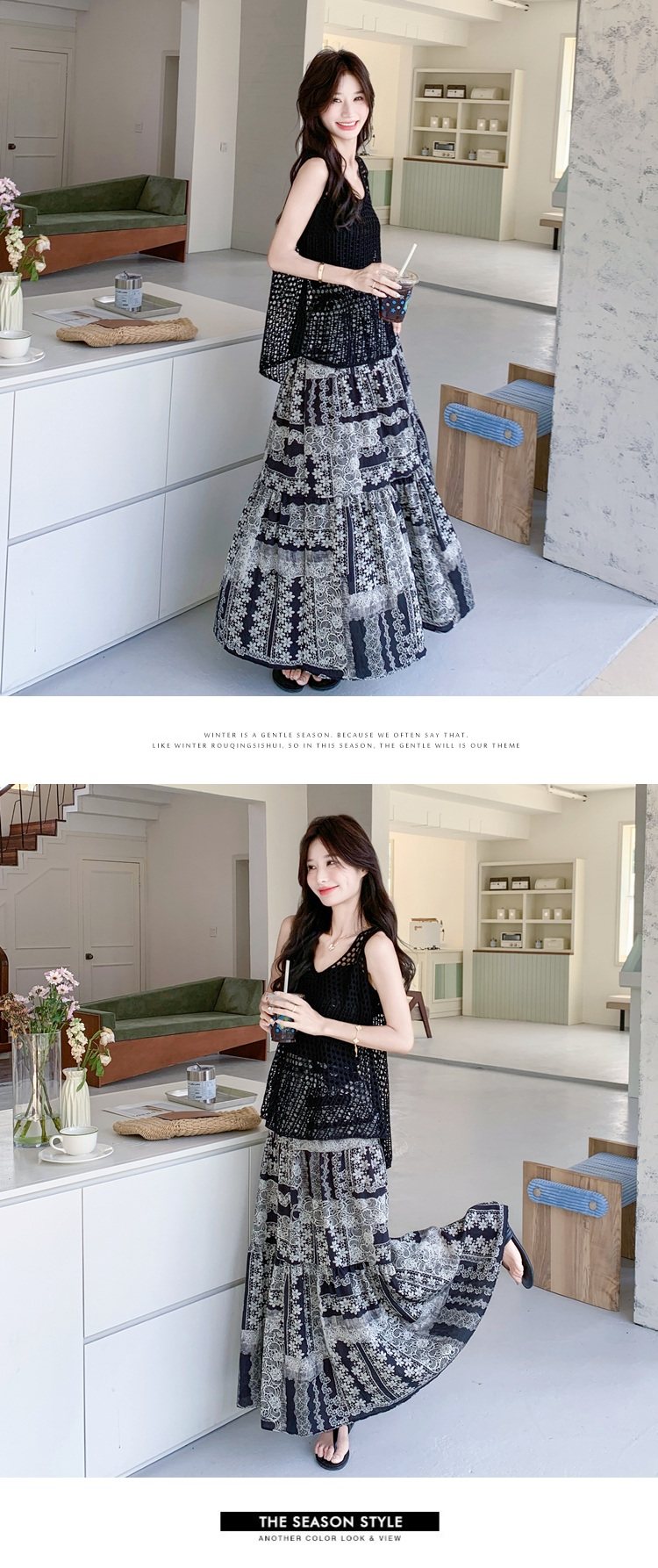 【商品名】2点セット!【ボトムス】クロップドニット×花柄スカート 上下セットアップ レディース夏 塩系コーデ【SHシリーズ】