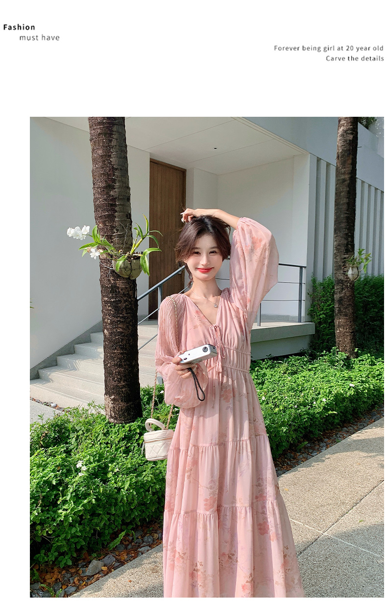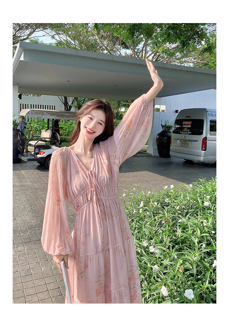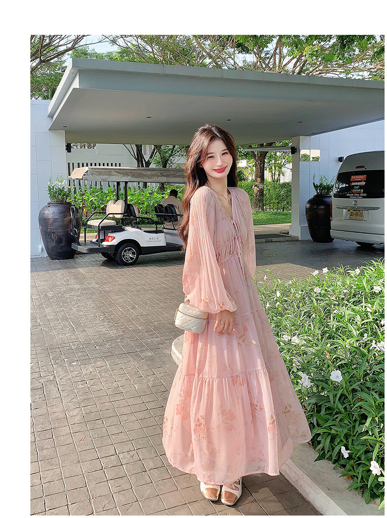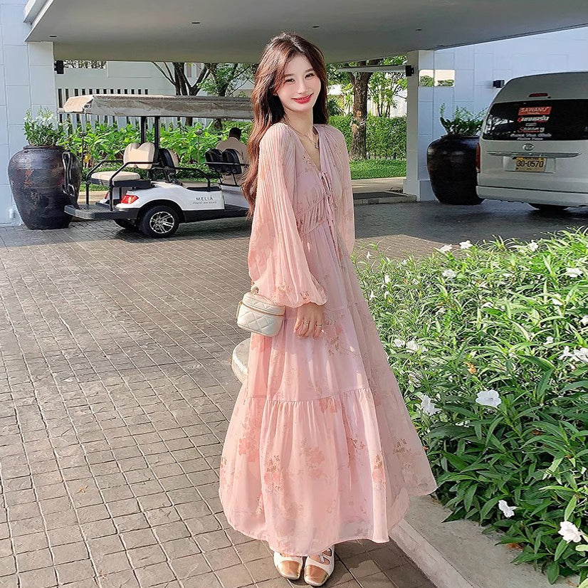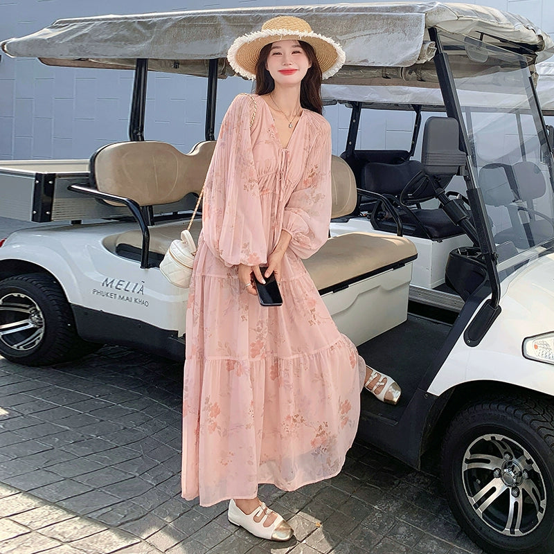 【商品名】【ワンピース】フレンチ風Vネックワンピース レディース 長袖 ロング丈 上品 きれいめ【SHシリーズ】