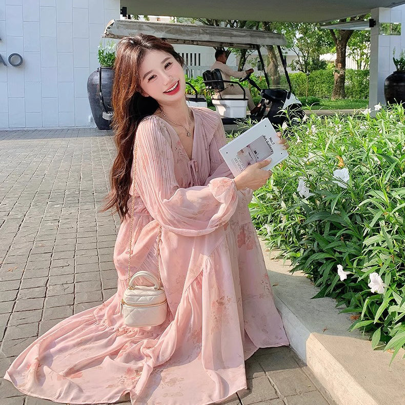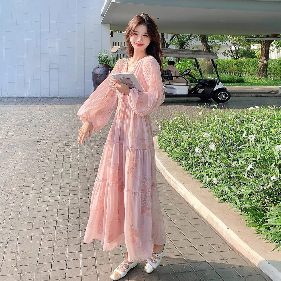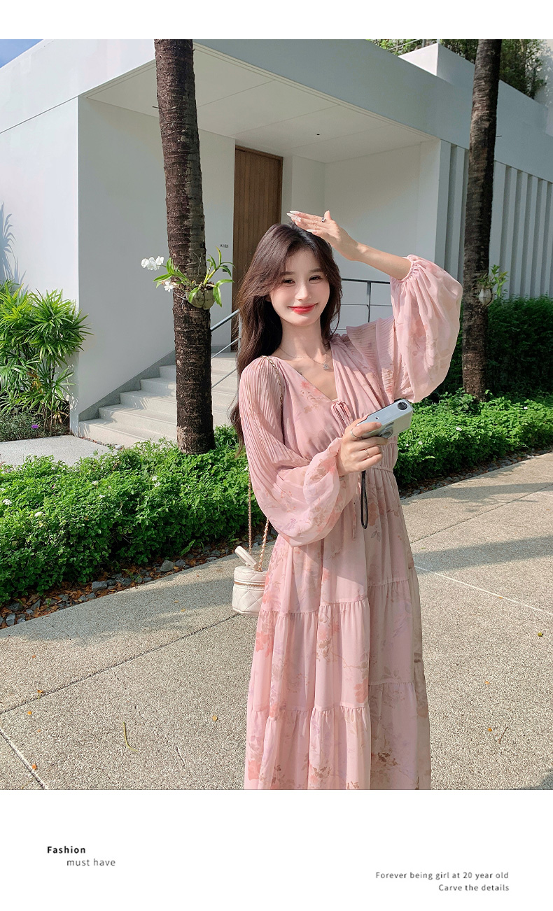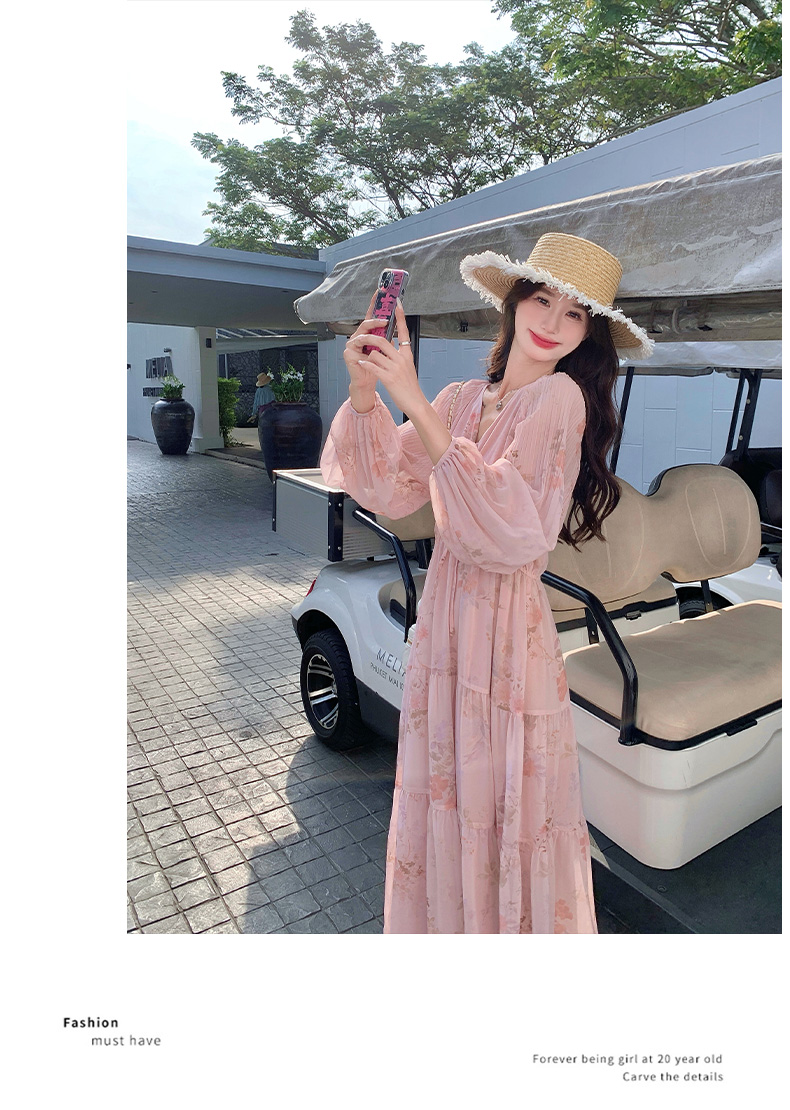 【商品名】【ワンピース】フレンチ風Vネックワンピース レディース 長袖 ロング丈 上品 きれいめ【SHシリーズ】