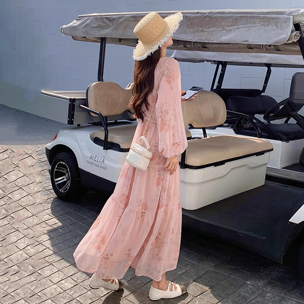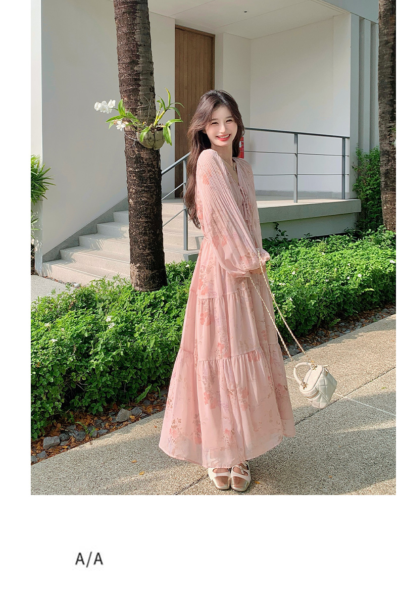 【ワンピース】フレンチ風Vネックワンピース レディース 長袖 ロング丈 上品 きれいめ【SHシリーズ】