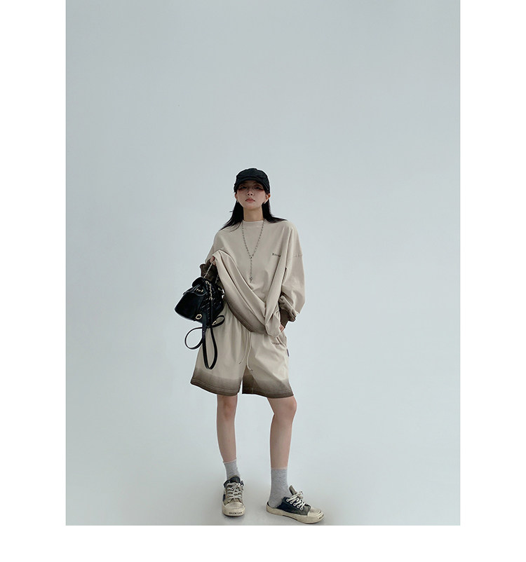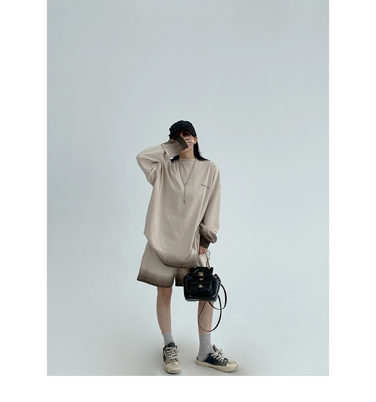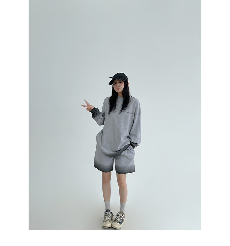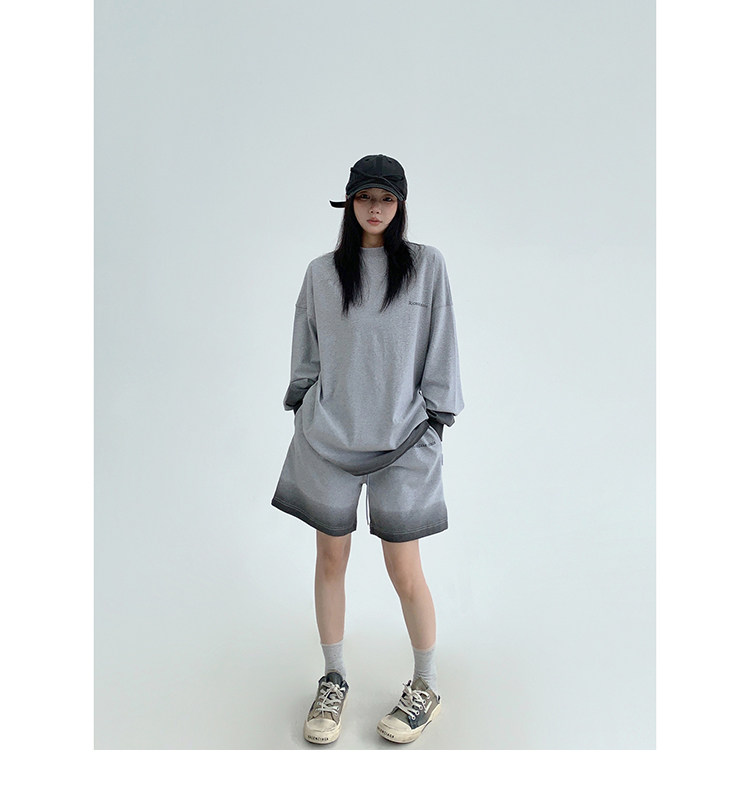 2点セット!【セットアップ】男女兼用 ゆる感たっぷり 長袖トップス+ショートパンツ 上下セット【FCシリーズ】【10~15日内発送】