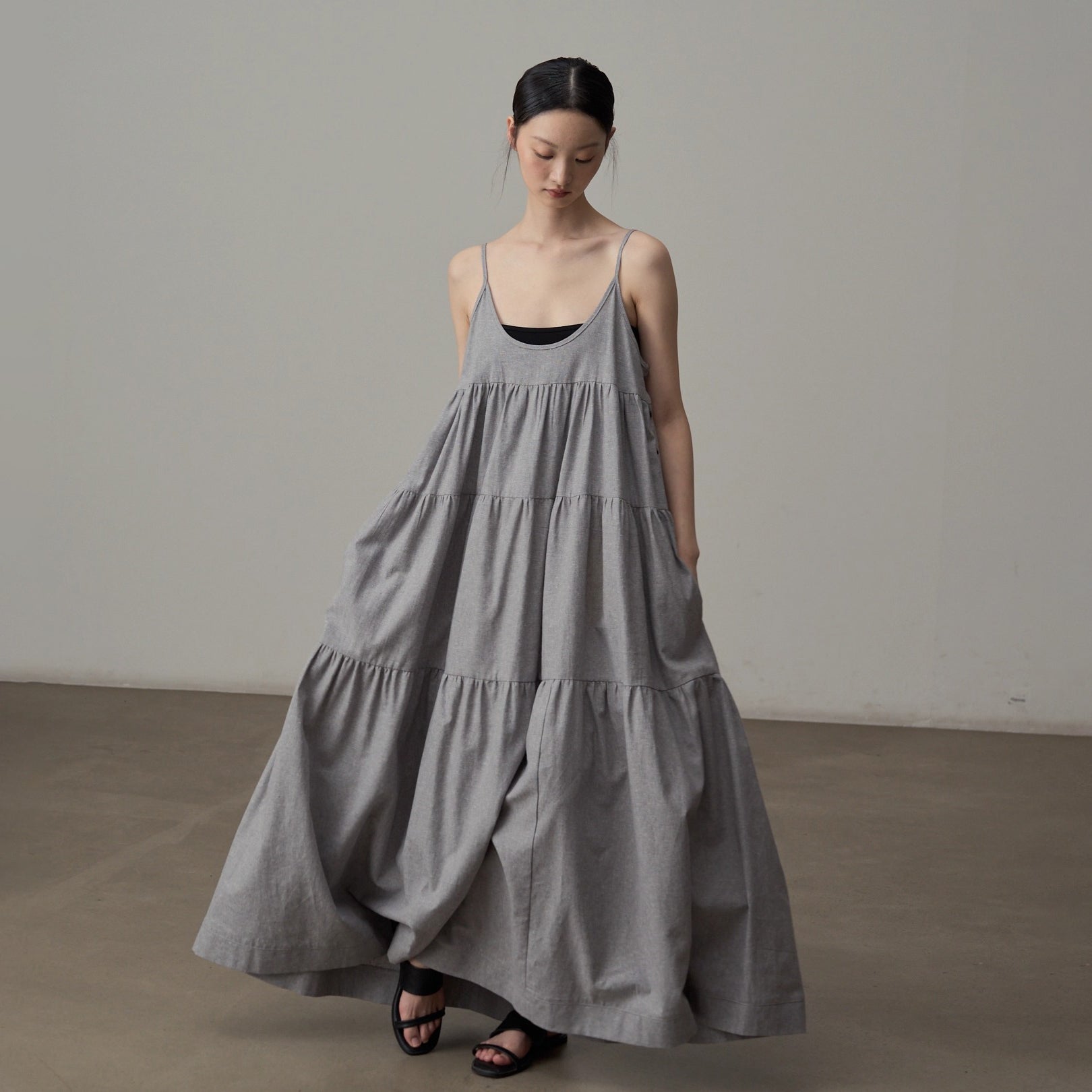 【ワンピース】リラックス感たっぷり キャミロングワンピース 夏のバカンスコーデに ノースリーブドレス【JZシリーズ】