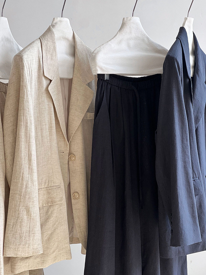 【セットアップ】【単品注文】リネン テーラードジャケット + 高見え パンツ 2点上下セット 【JZシリーズ】