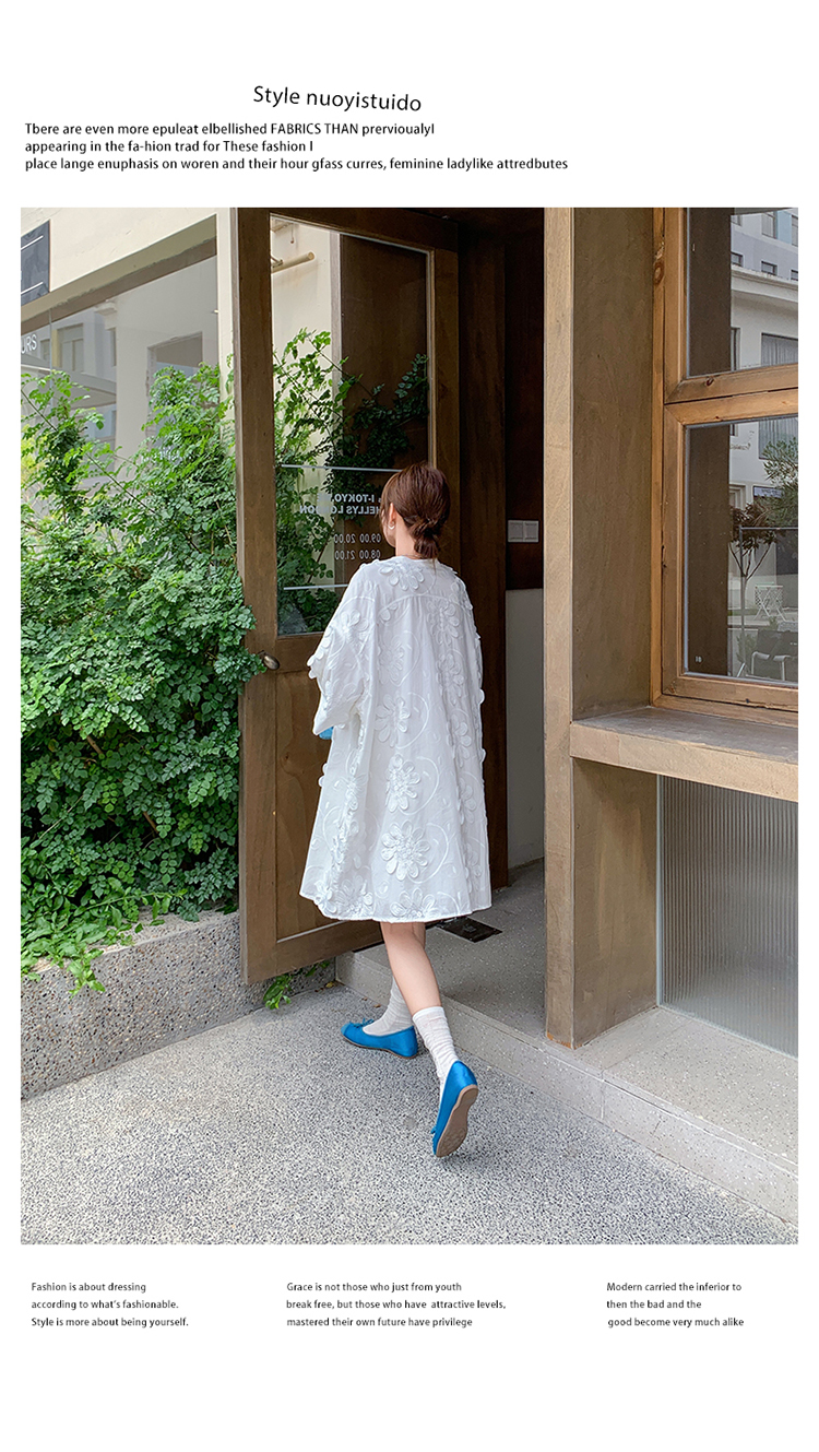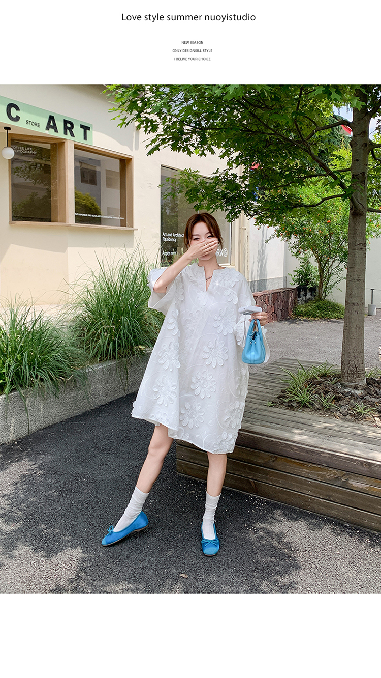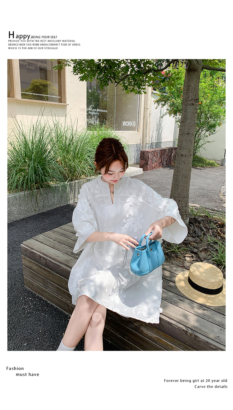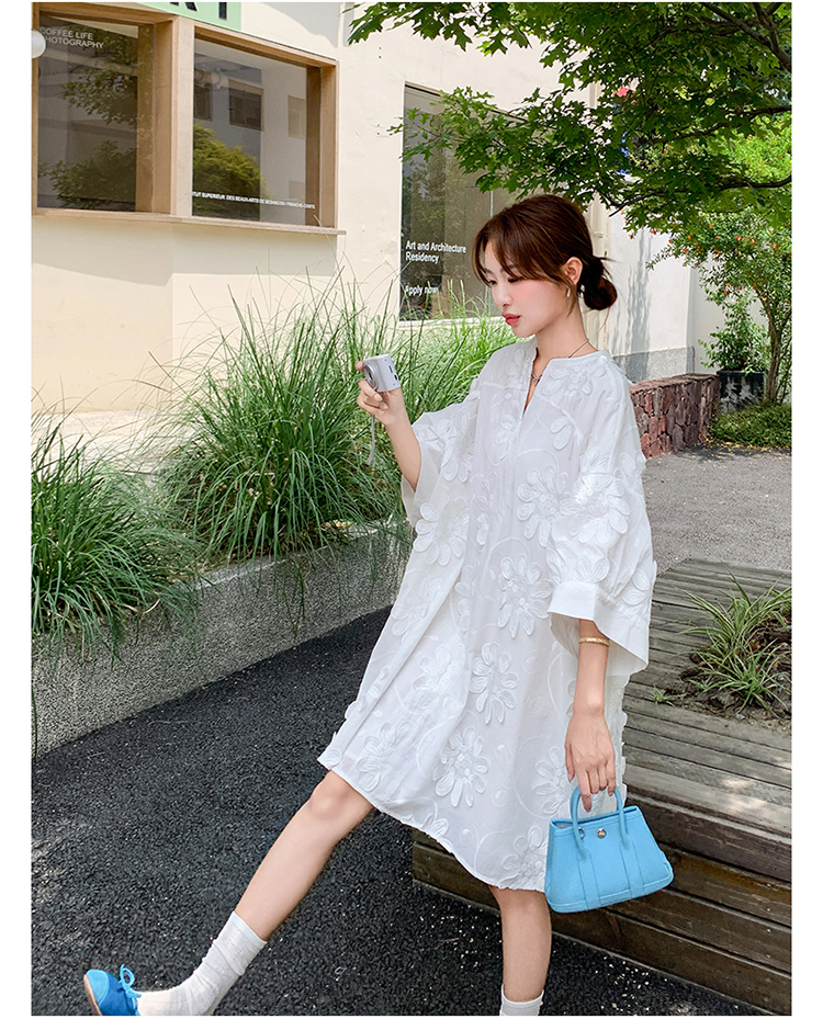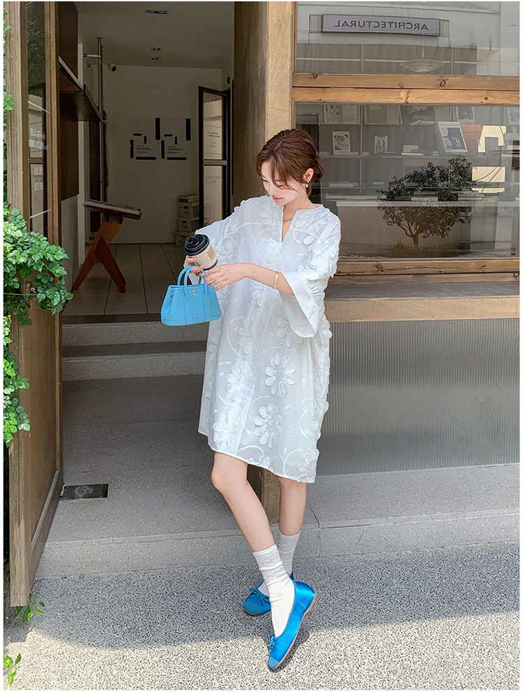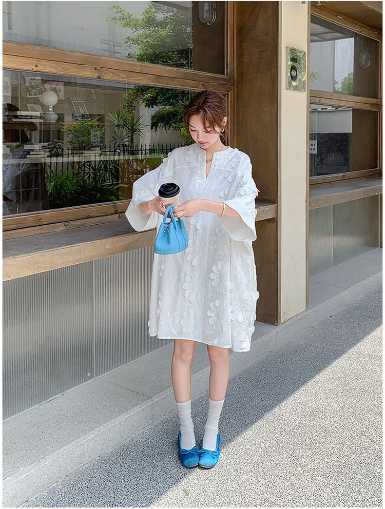 【商品名】【ワンピース】フレンチヴィンテージ風 立体刺繍半袖ワンピース 大人可愛い&着やせ見えデザイン【JZシリーズ】
