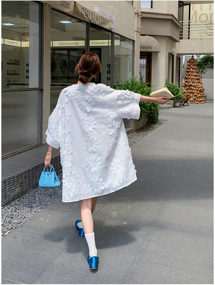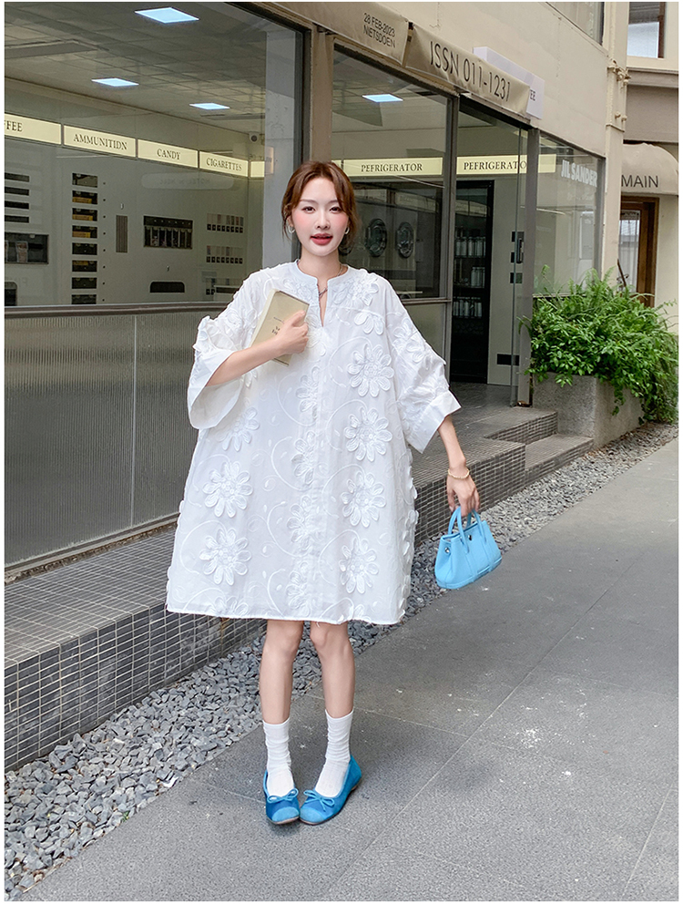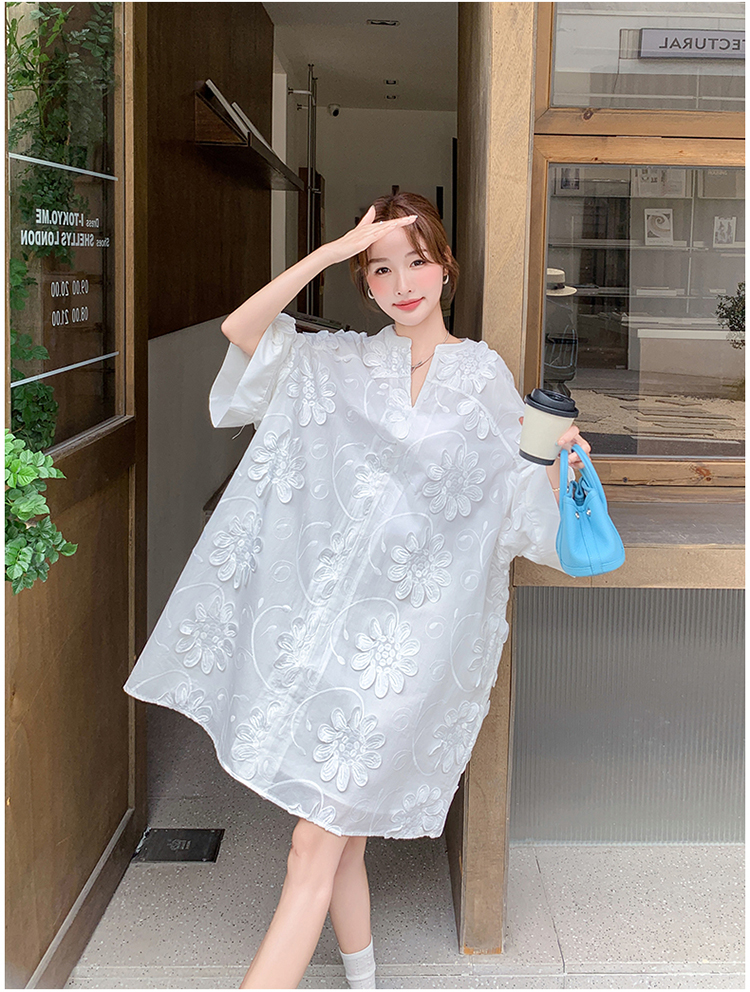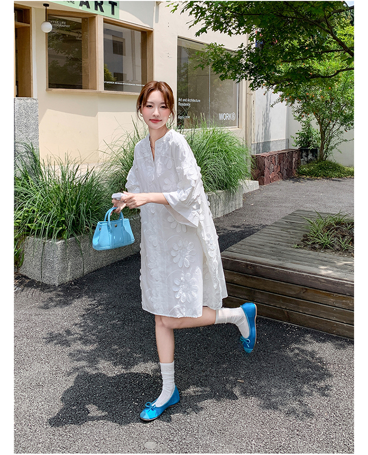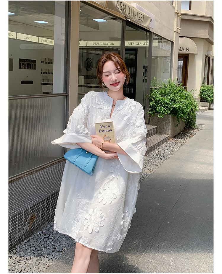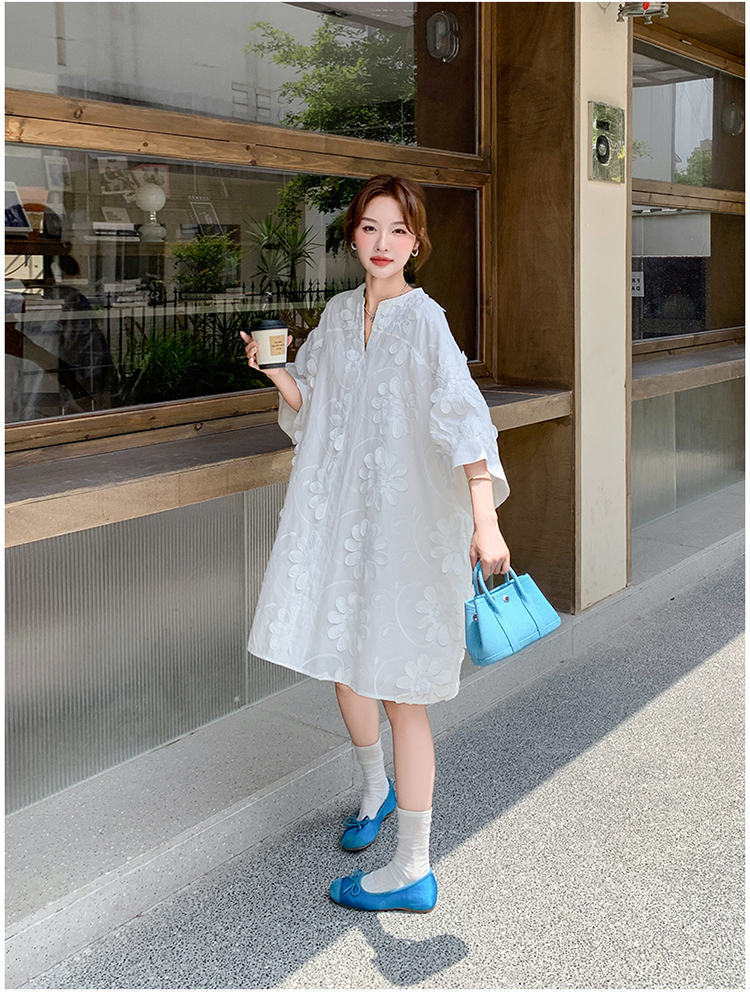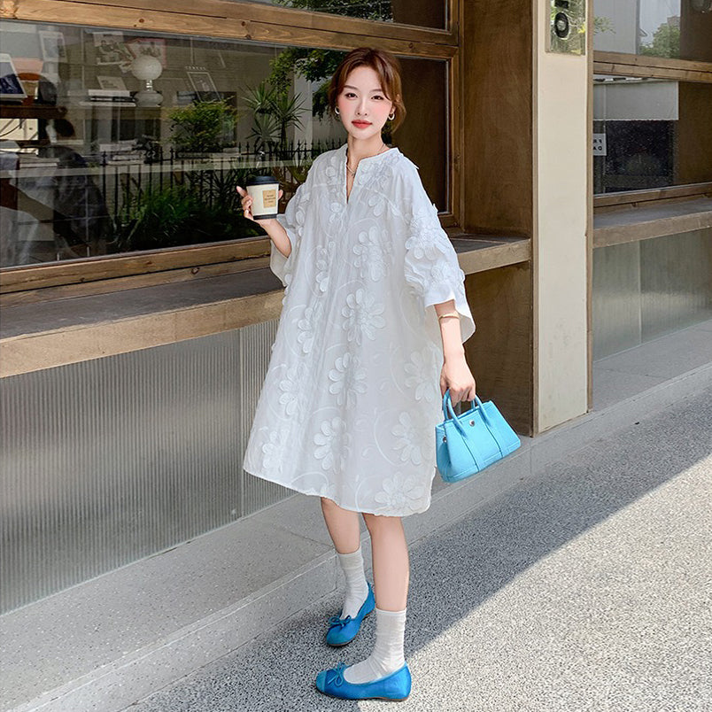 【商品名】【ワンピース】フレンチヴィンテージ風 立体刺繍半袖ワンピース 大人可愛い&着やせ見えデザイン【JZシリーズ】