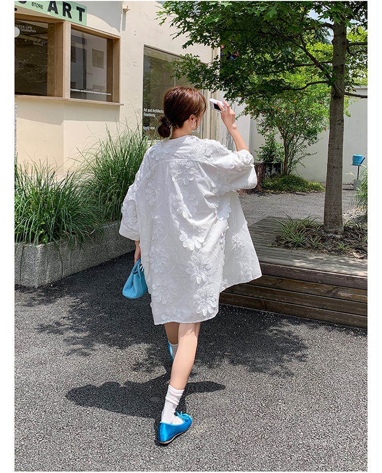 【ワンピース】春 秋 冬 刺繍 スイート 切り替え シャツ 長袖 ワンピース 【SHシリーズ】